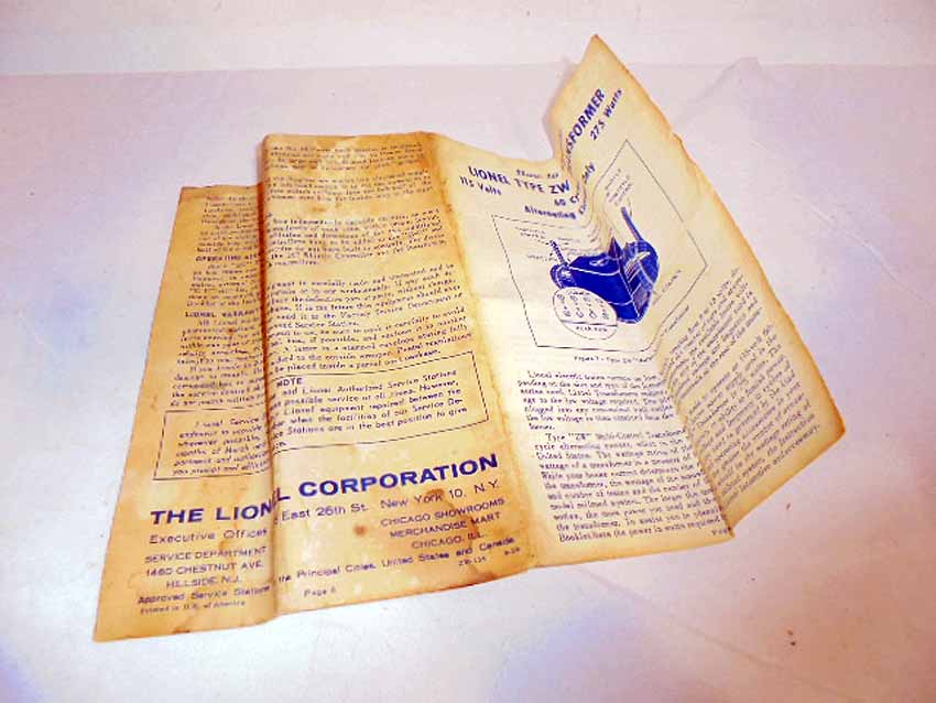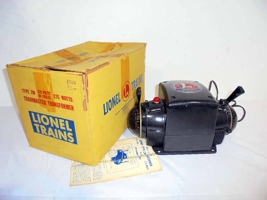 This is the Type ZW Transformer that Lionel made in the late 1950s. 275 Watts. Original Box/instruction. Examine very closely; what is pictured is what you will receive. Please add $35.00 for US-48 Shipping and Insurance (more west of the Mississippi).