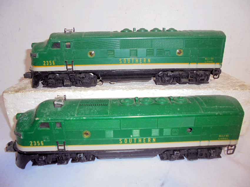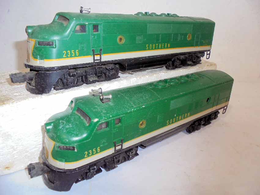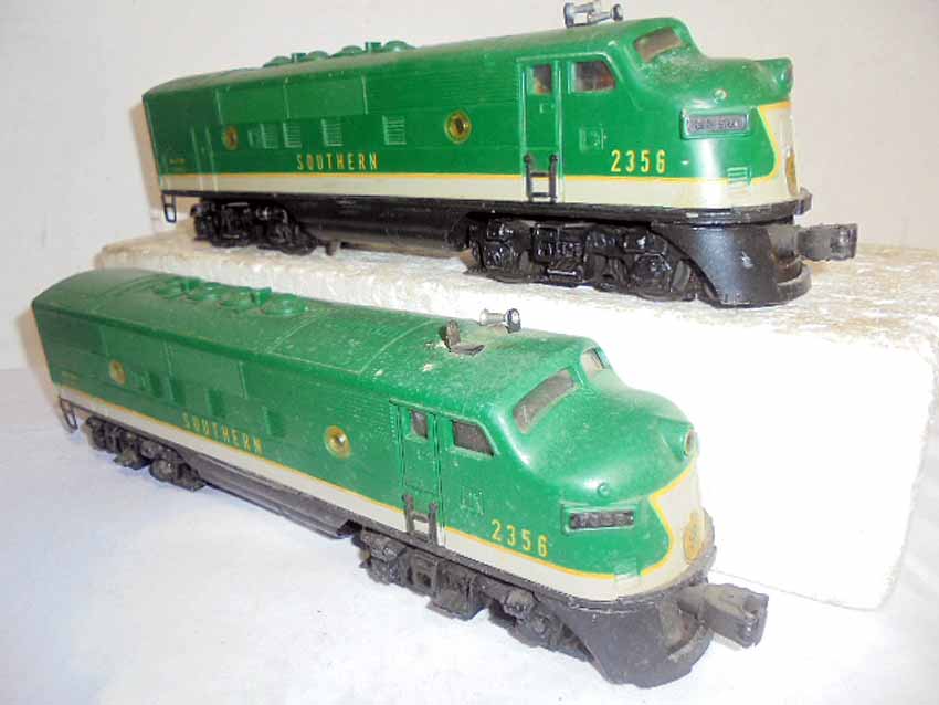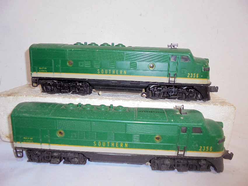 These are the #2356 Southern ABA Diesel Engines that Lionel made circa 1954. Dual Motors with Horn and Magnetraction. No Boxes. What you see is what you get. Please add $50.00 for US-48 Shipping and Insurance (more west of the Mississippi).