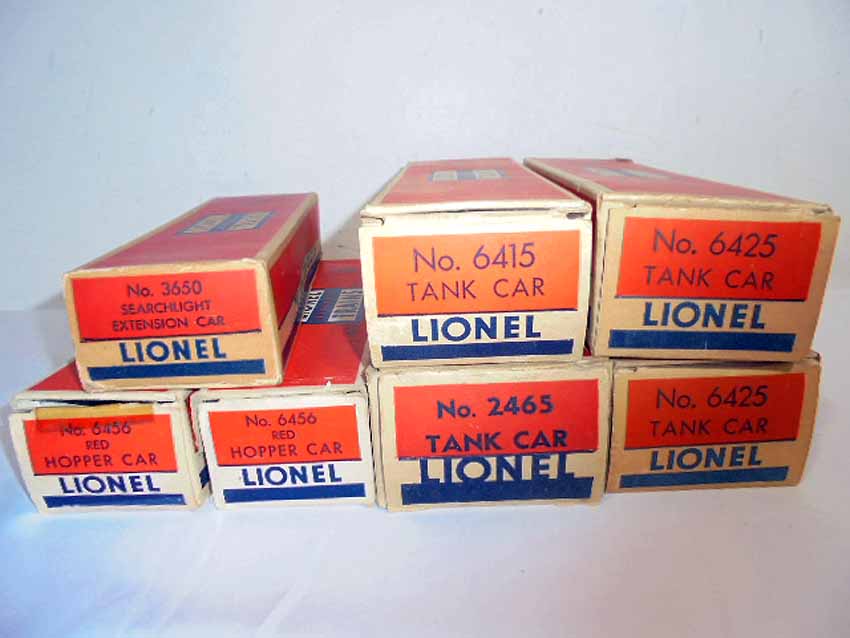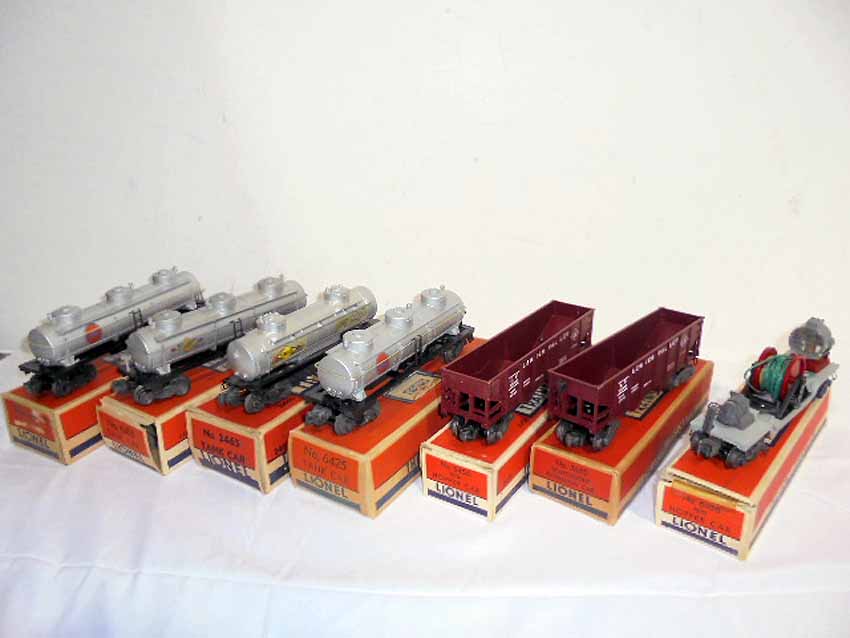 These are seven Assorted Freight Cars that Lionel made in the 1950s. Original Boxes/insert. Examine closely; what is pictured is what you will receive. Please add $45.00 for US-48 Shipping and Insurance (more west of the Mississippi).