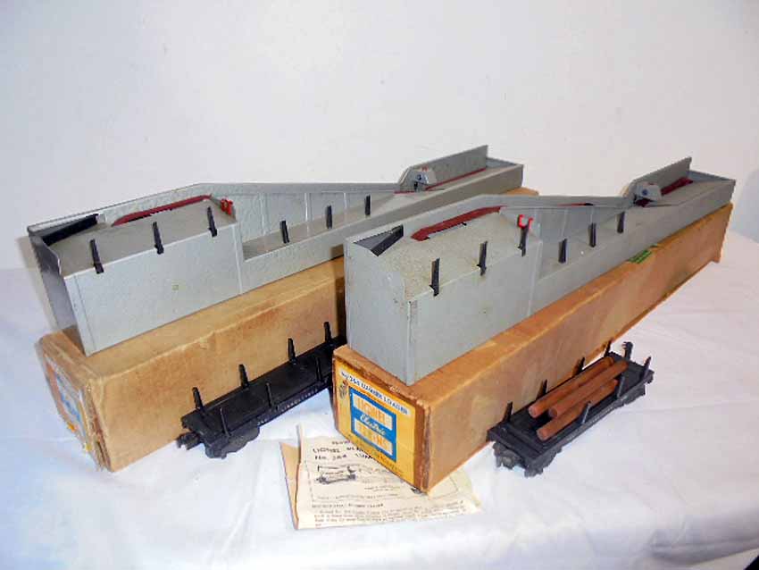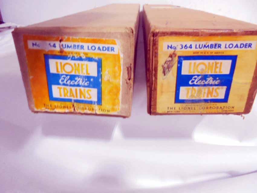These are two #364 Lumber Loaders w/#3461/3451 Lumber Cars that Lionel made in the 1950s. Two Original Boxes/instruction. Examine closely; what is pictured is what you will receive. Please add $45.00 for US-48 Shipping and Insurance (more west of the Mississippi).