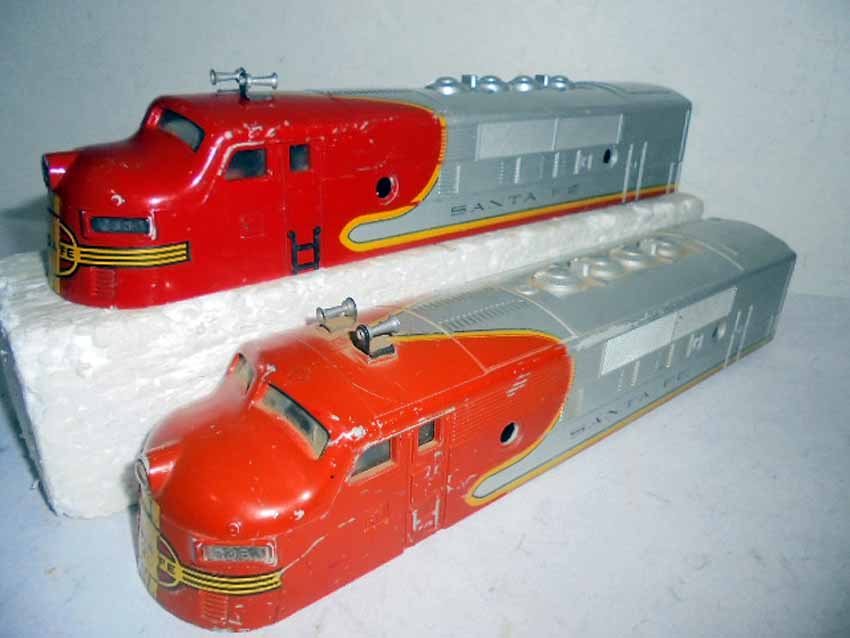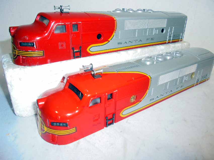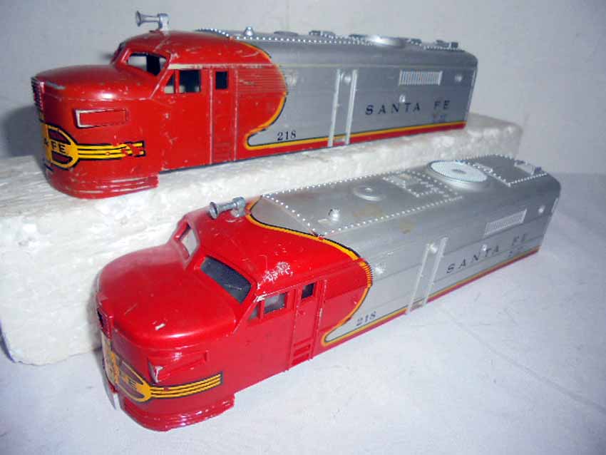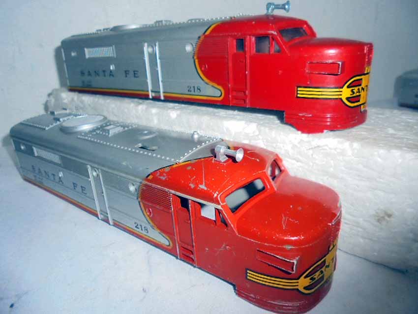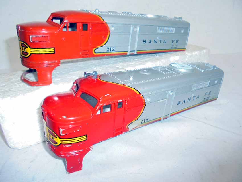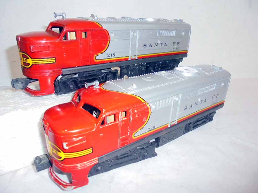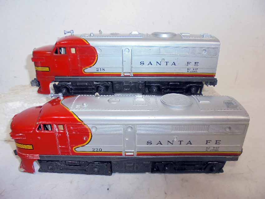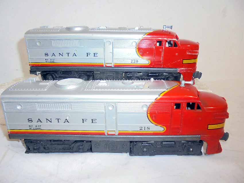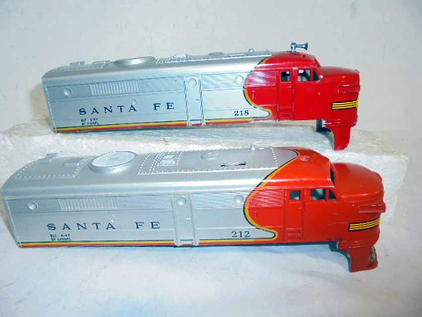 These are fifteen Assorted Santa Fe Engines and Engine Cabs that Lionel made in the past. Includes four #218/220/212, three #2343, four #2453, and two No Number Blocks. No Boxes. Examine closely; what is pictured is what you will receive. Please add $50.00 for US-48 Shipping and Insurance (more west of the Mississippi). |
