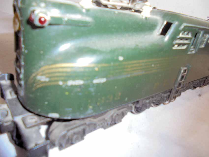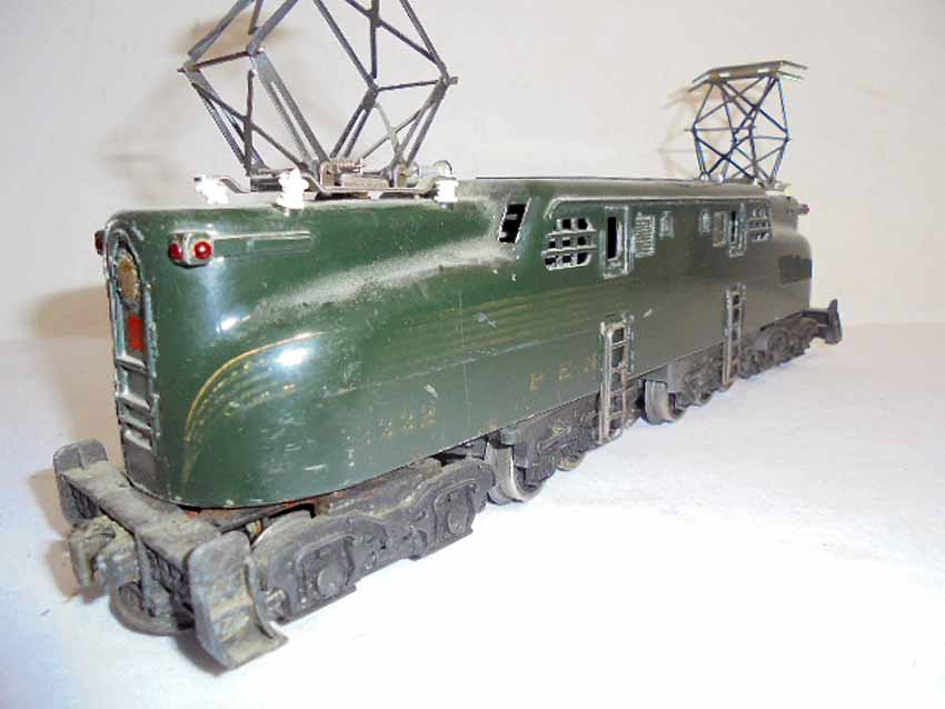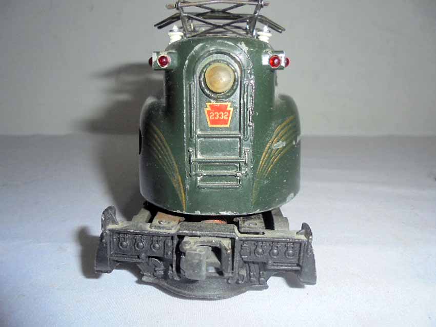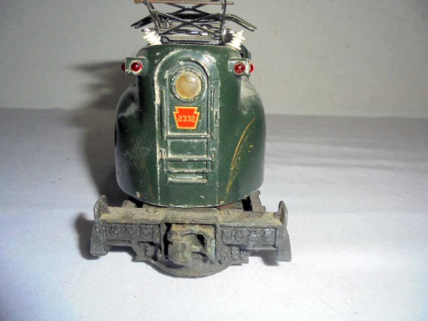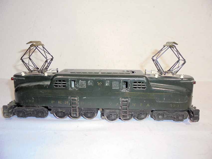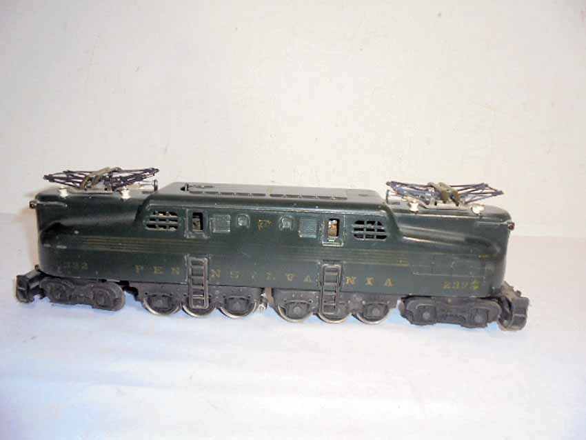 This is the #2332 Pennsylvania Green 5 Stripe GG-1 Electric Locomotive that Lionel made in the later 1940s. Single Motor with Horn. No Box. Examine closely; what is pictured is what you will receive. Please add $35.00 for US-48 Shipping and Insurance (more west of the Mississippi).