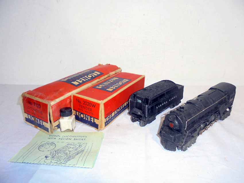 These are the Lionel #2020/2020W 6-8-6 Steam Locomotive w/Smoke Chamber & Tender that was made around 1946/47. Original Boxes (rough/tapped)/instruction. What you see is what you get. Please add $45.00 for US-48 Shipping and Insurance (more west of the Mississippi).