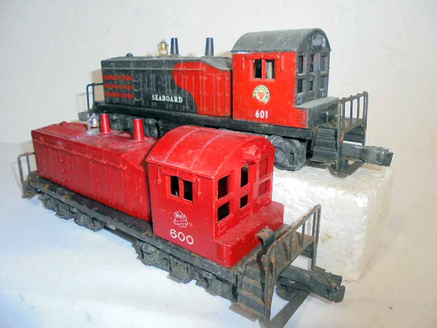 These are the #610 Erie Switcher, #600 MKT Switcher, #601 Seaboard Switcher, #628 NP Switche,r and #635 Union Pacific Switcher that Lionel made in the middle 1950s/60s. No Boxes. Examine very closely; what is pictured is what you will receive. Please add $60.00 for US-48 Shipping and Insurance (more west of the Mississippi). |