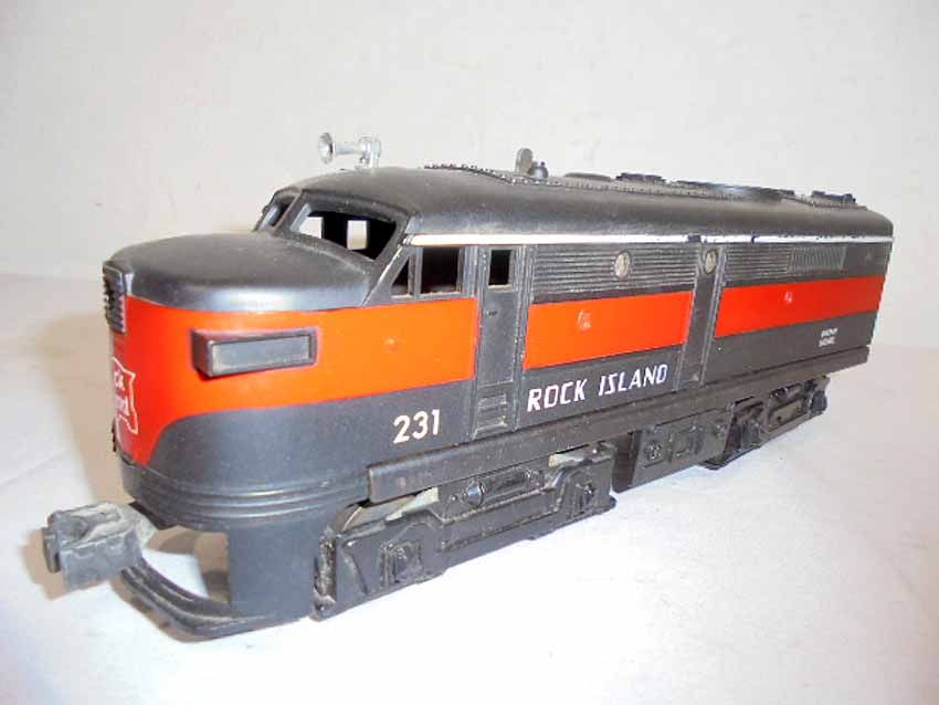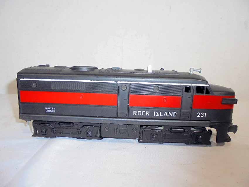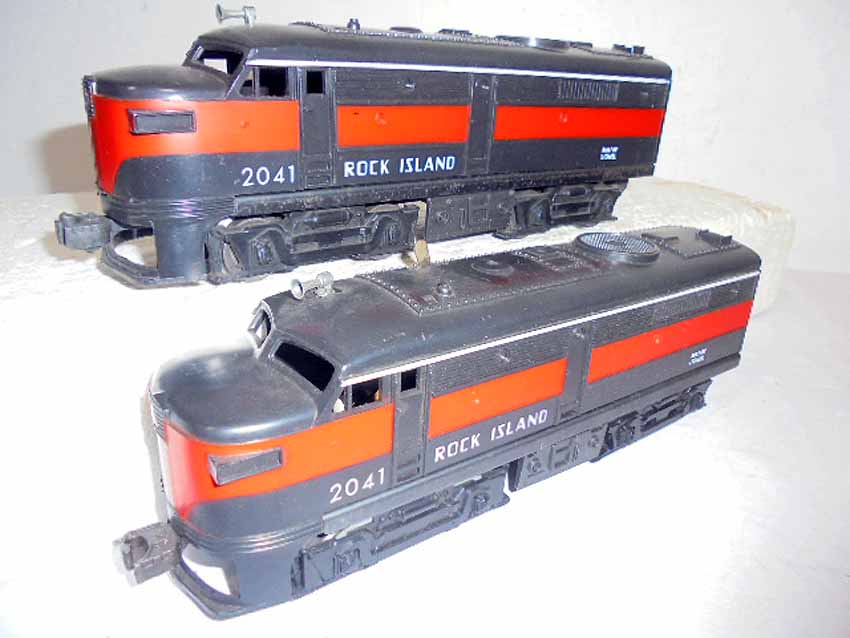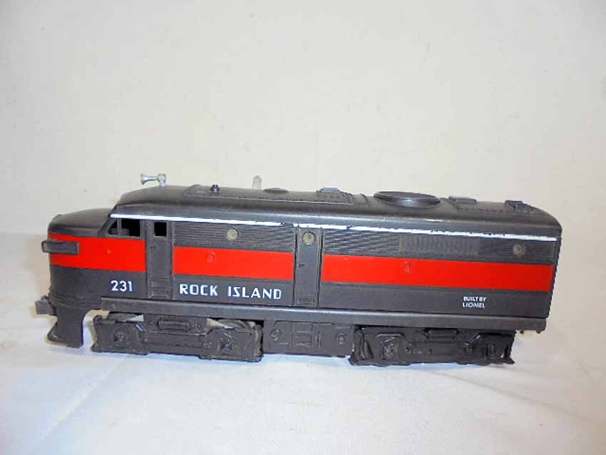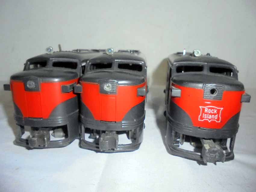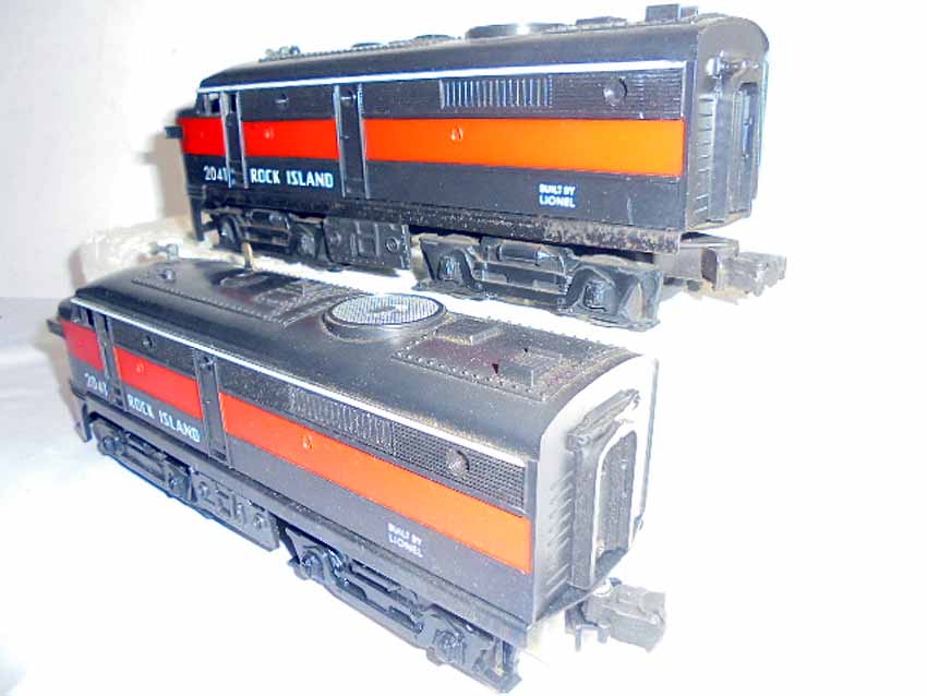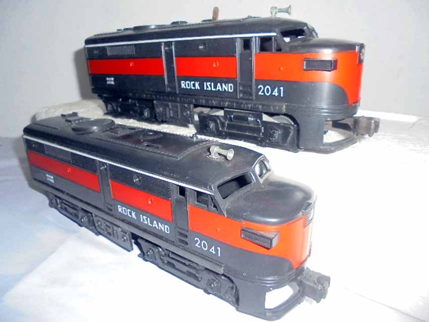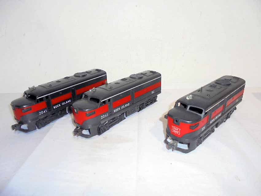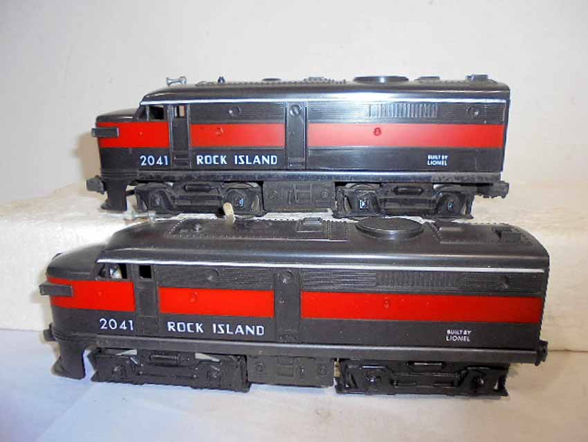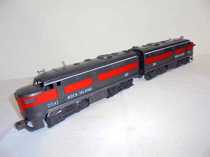 These are the #2041 Rock Island AA Twin Alcos and #231 Rock Island Power Unit that Lionel made in the 1950s/60s. No Boxes. Examine closely; what is pictured is what you will receive. Please add $45.00 for US-48 Shipping and Insurance (more west of the Mississippi).