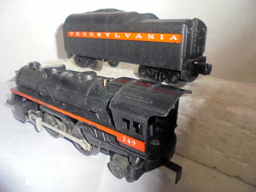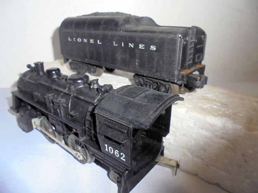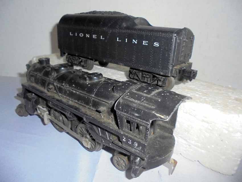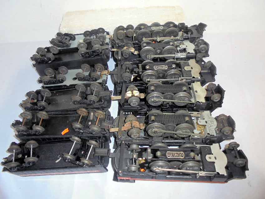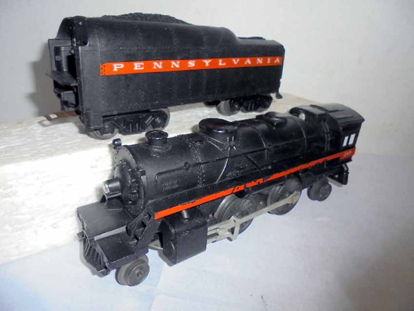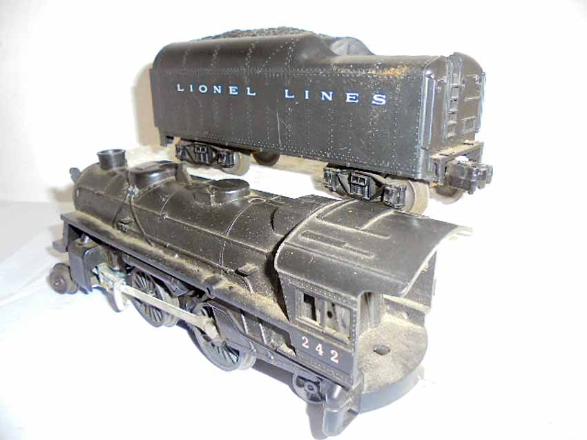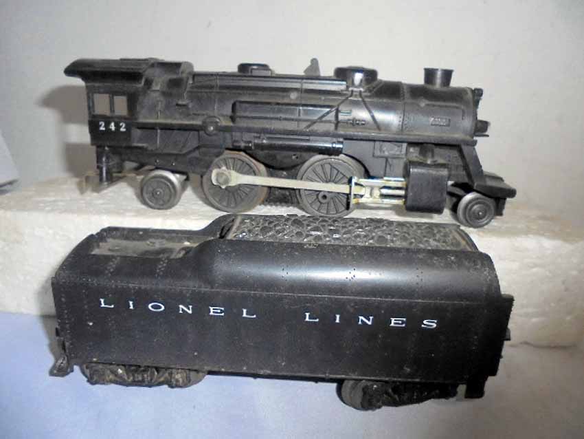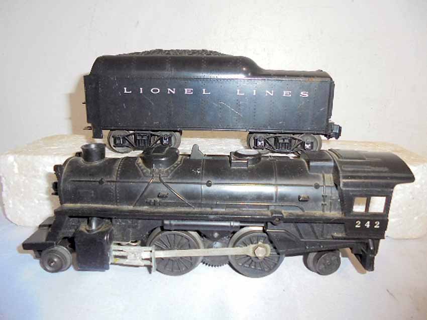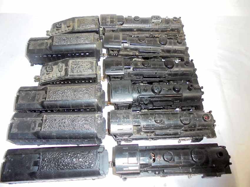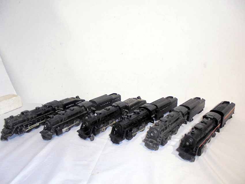 These are the Lionel #2018 2-6-4 Steam Engine & Tender, #242 2-4-2 Steam Engie & Tender, #1130 2-4-2 Steam Engine & Tender, #1062 2-4-2 Steam Engine & Tender, #239 2-4-2 Steam engine & Tender and #249 2-4-2 Steam Engine & Tender, some incorrect pairings. No Boxes. Examine closely; what is pictured is what you will receive. Please add $60.00 for US-48 Shipping and Insurance (more west of the Mississippi).