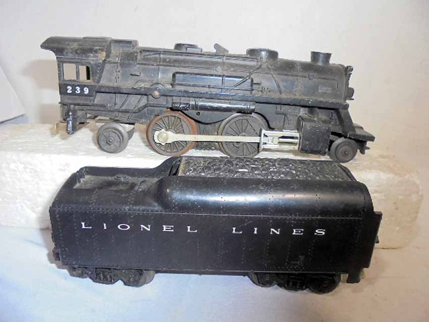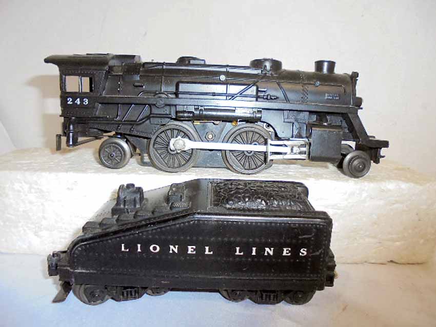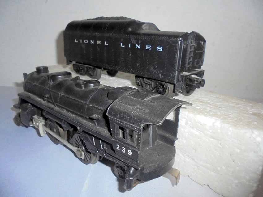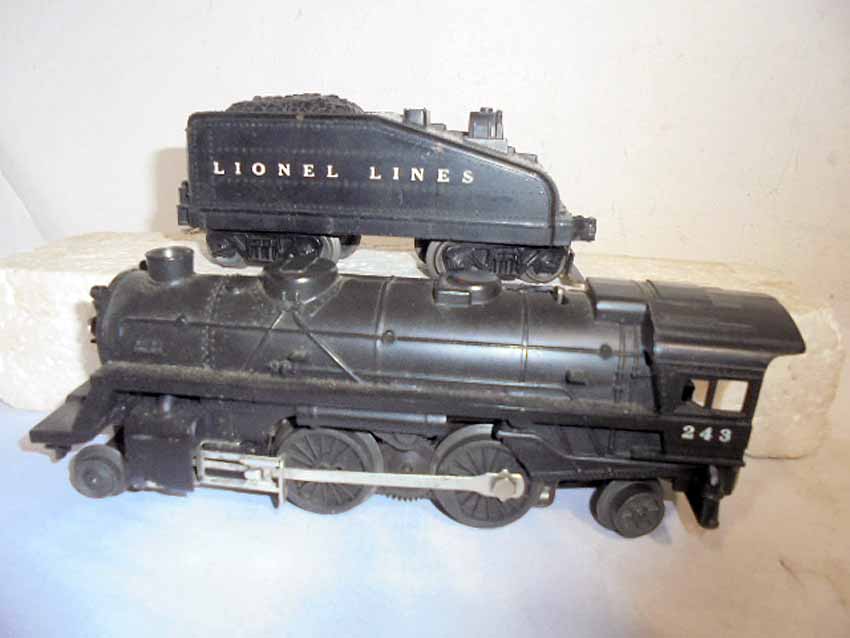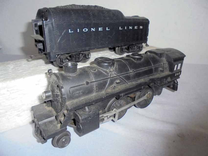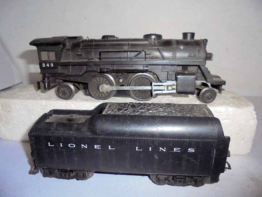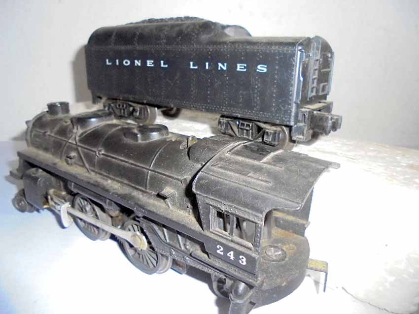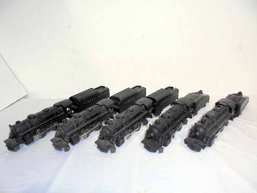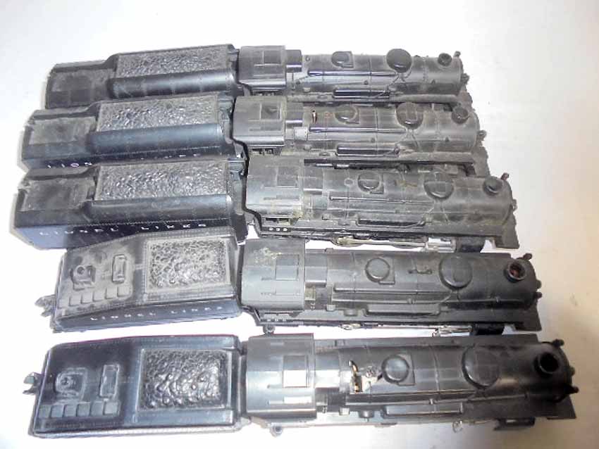 These are the #1130 2-4-2 Steam Engine & Tender, two #243 2-4-2 Steam Engine & Tender, #239 2-4-2 Steam Engine & Tender and #233 2-4-2 Steam Engine & Tender that Lionel made in the 1950s/60s. No Boxes. Examine very closely; what is pictured is what you will receive. Please add $50.00 for US-48 Shipping and Insurance (more west of the Mississippi).