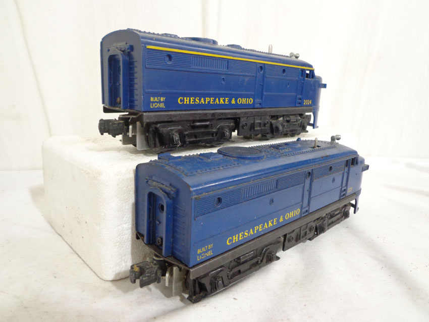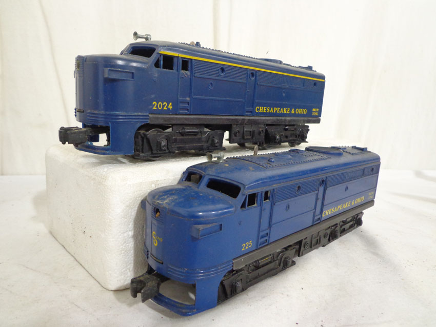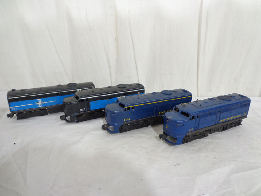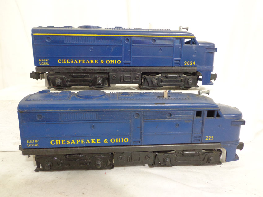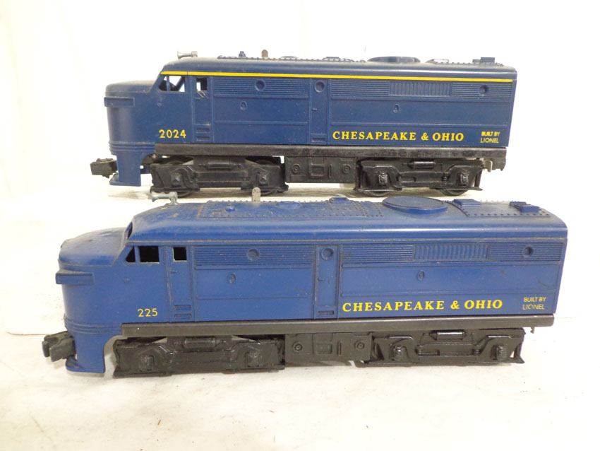 These are the Lionel #225/2024 Chesapeake and Ohio Engines and #217/217 Boston and Maine AB Units (cracked apron) from the 1950s. No Boxes. Examine very closely; what is pictured is what you will receive. Please add $50.00 for US-48 Shipping and Insurance (more west of the Mississippi).