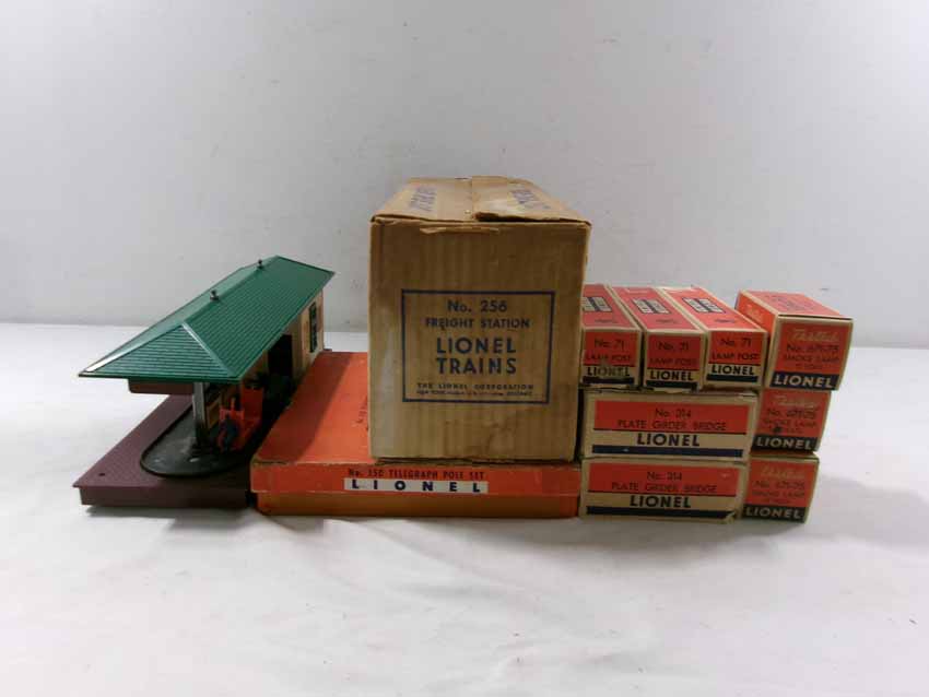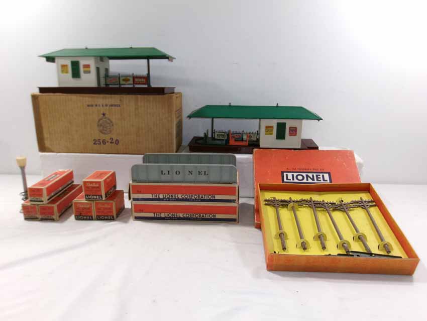 10 Assorted Lionel Stations, Bridges, Lamp Posts and Smoke Bulbs/OBs