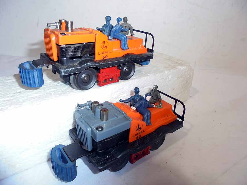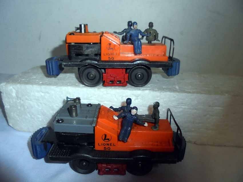 Lionel 2 #50 Gang Cars (1 Partial Repaint), #3927 Track Cleaning Car (Tubes Repros) and #60 Trolley/OB