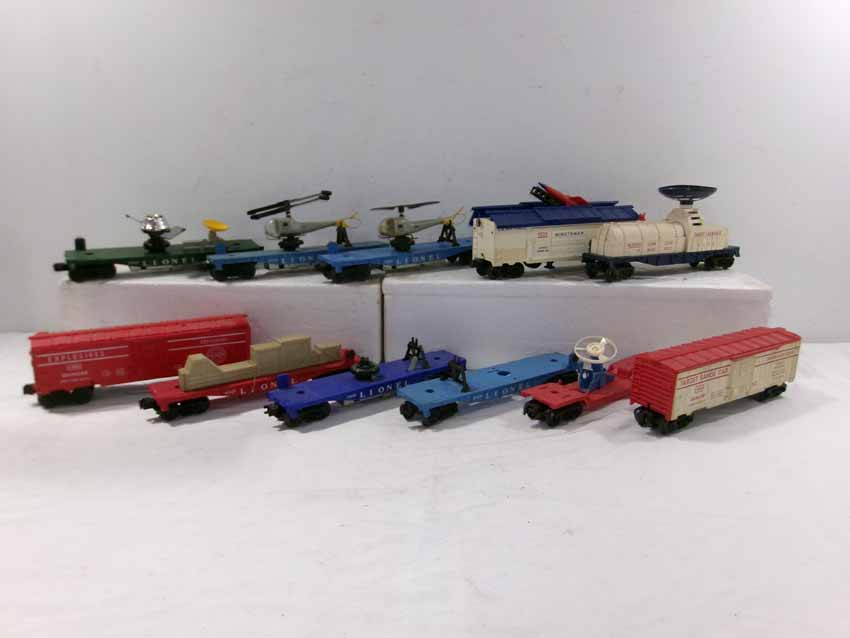 These are eleven Assorted Military Cars that Lionel primarily made in the past. No Boxes. Examine closely; what is pictured is what you will receive. Please add $50.00 for US-48 Shipping and Insurance (more west of the Mississippi).