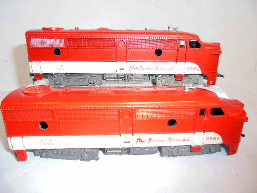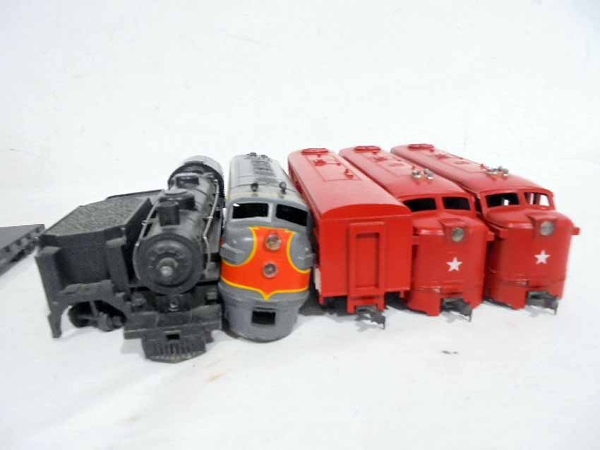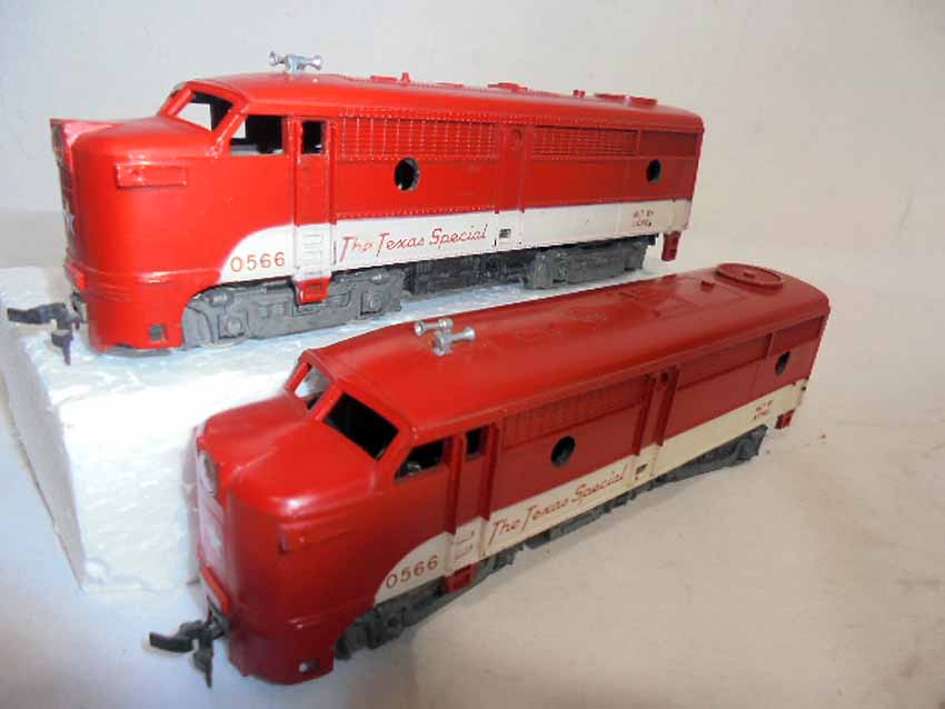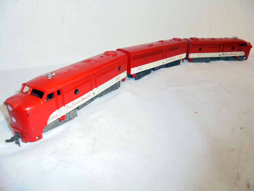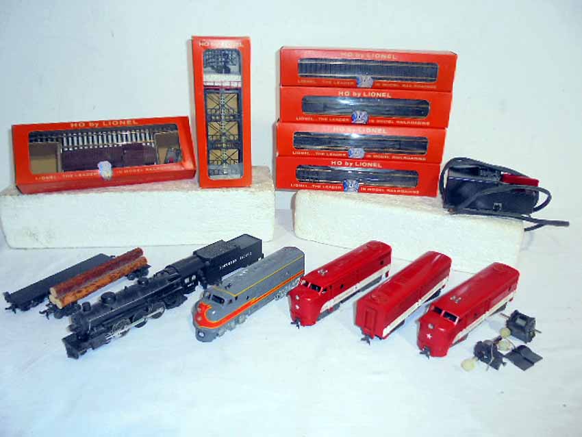 These are the #0566/0575/0566 Texas Special , the #0237 Milwaukee Diesel, the #0625 Southern Steam Engine & Tender, two Cars, two Accessories, four Boxes of Track and Transformer that Lionel made in HO Gauge in the late 1950s. Six Original Boxes. Examine closely; what is pictured is what you will receive. Please add $45.00 for US-48 Shipping and Insurance (more west of the Mississippi).