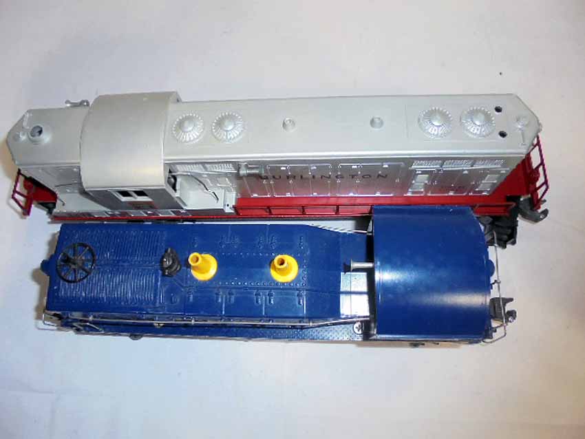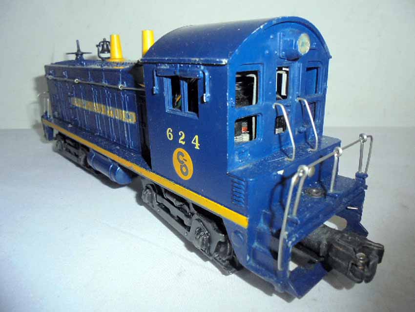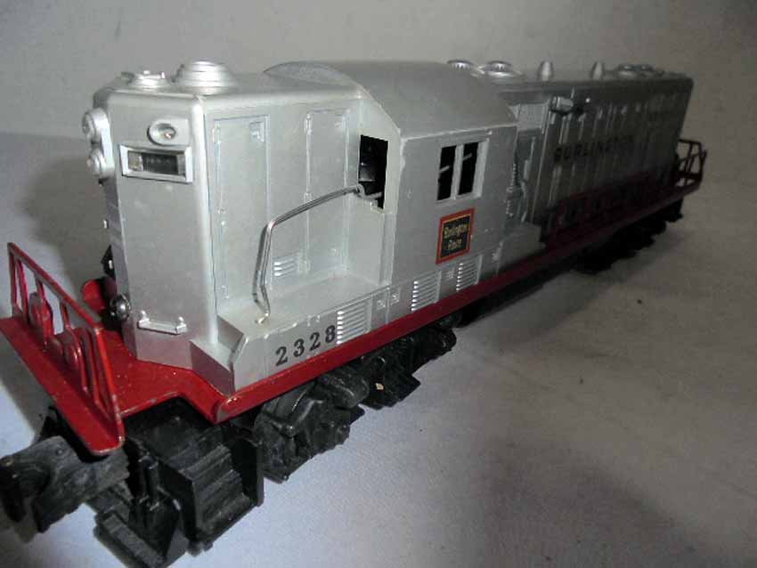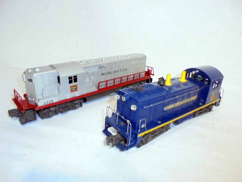 These are the #624 Chesapeake and Ohio Switcher and #2328 Burlington GP-7 that Lionel made in the early 1950s. No Boxes. Examine very closely; what is pictured is what you will receive. Please add $50.00 for US-48 Shipping and Insurance (more west of the Mississippi). |