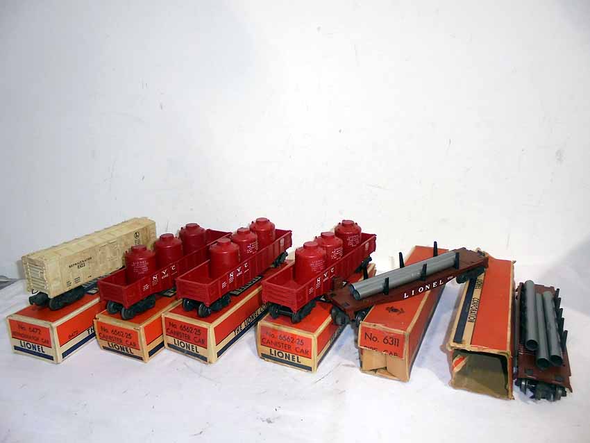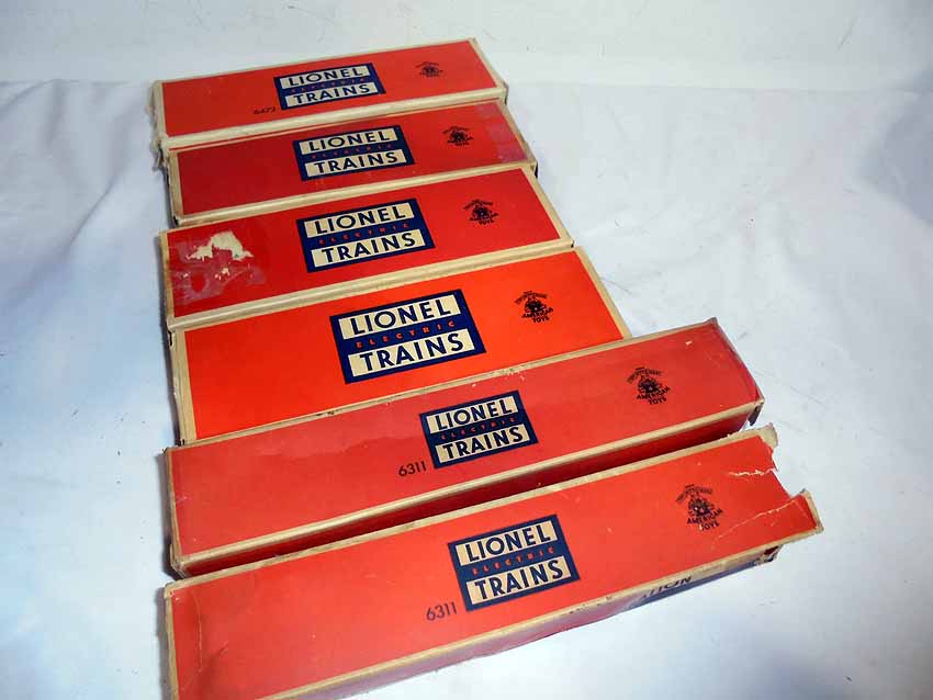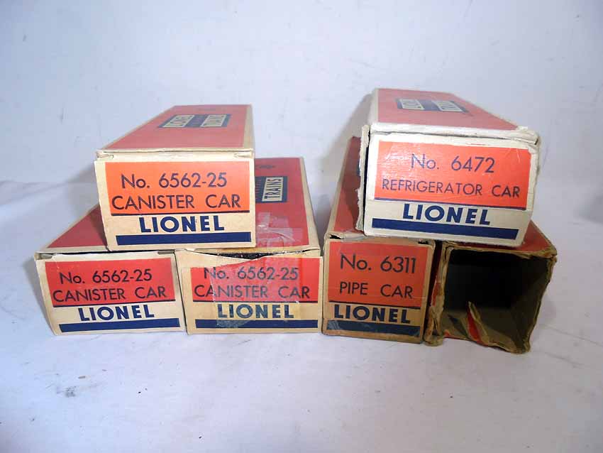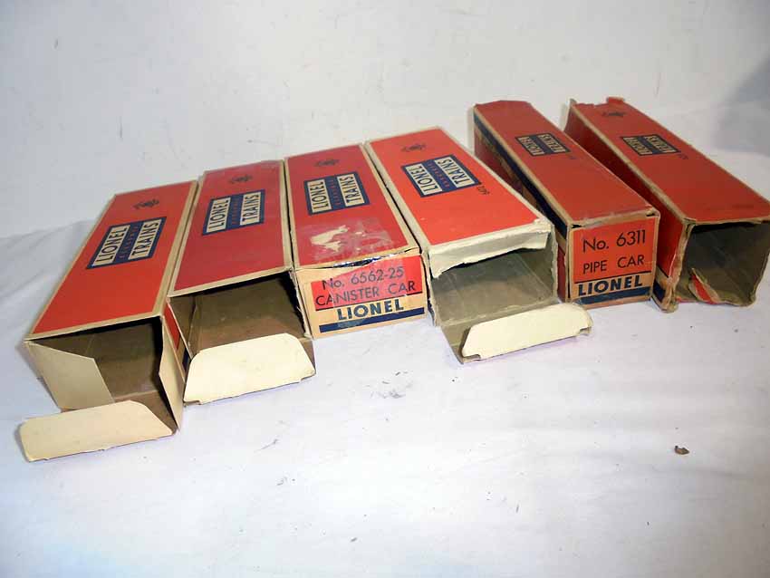 These are five Assorted Cars that Lionel made in the 1950s. Original Boxes. Examine closely; what is pictured is what you will receive. Please add $40.00 for US-48 Shipping and Insurance (more west of the Mississippi).
