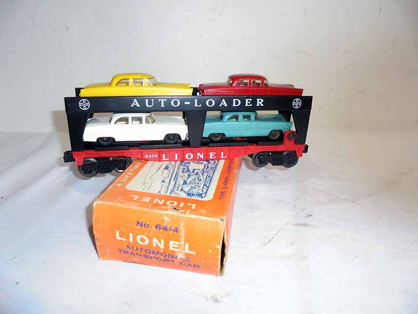 This is the Lionel #6414 Auto Loader (Original Autos w/Chrome Bumpers) from the 1960s. Original Box. Examine closely; what is pictured is what you will receive. Please add $30.00 for US-48 Shipping and Insurance (more west of the Mississippi).