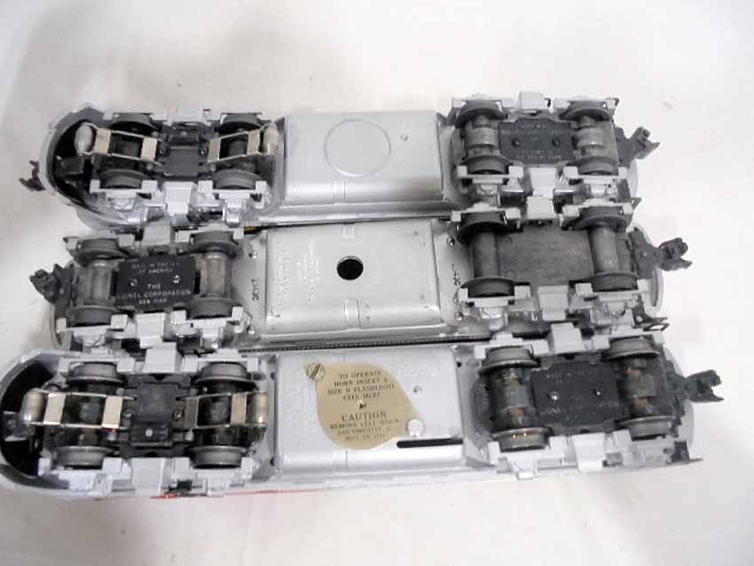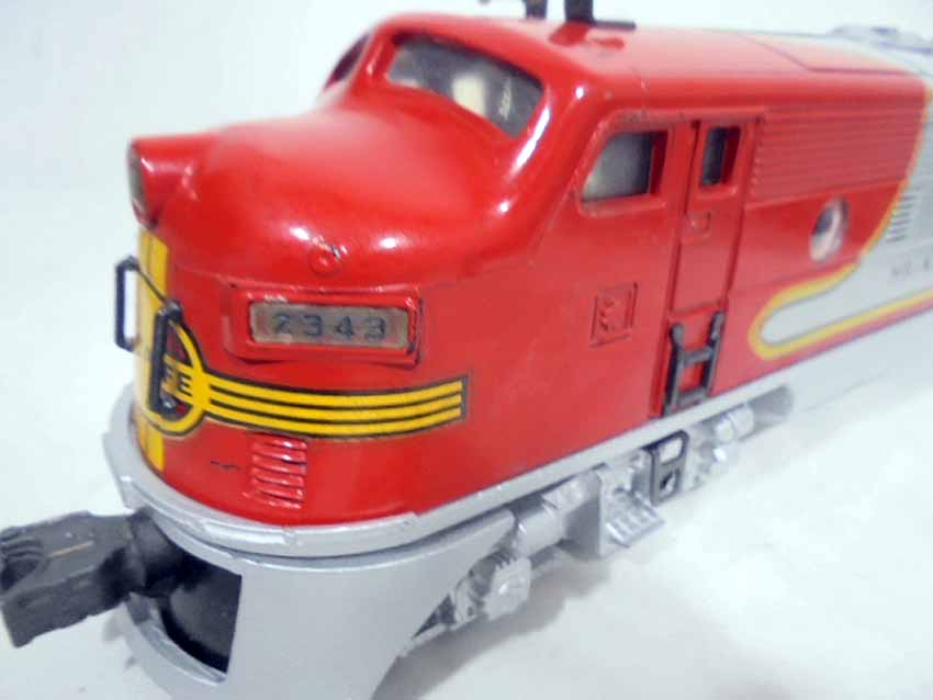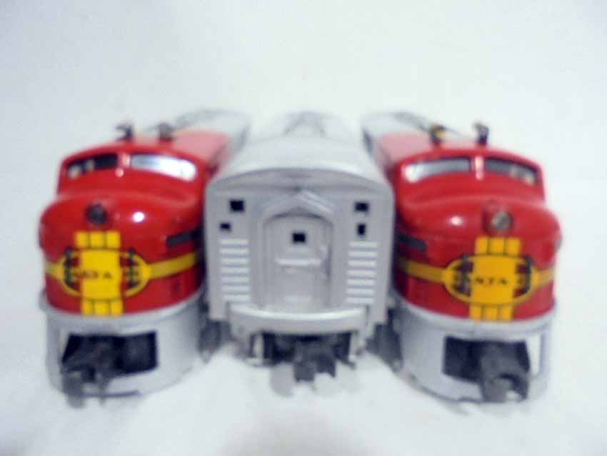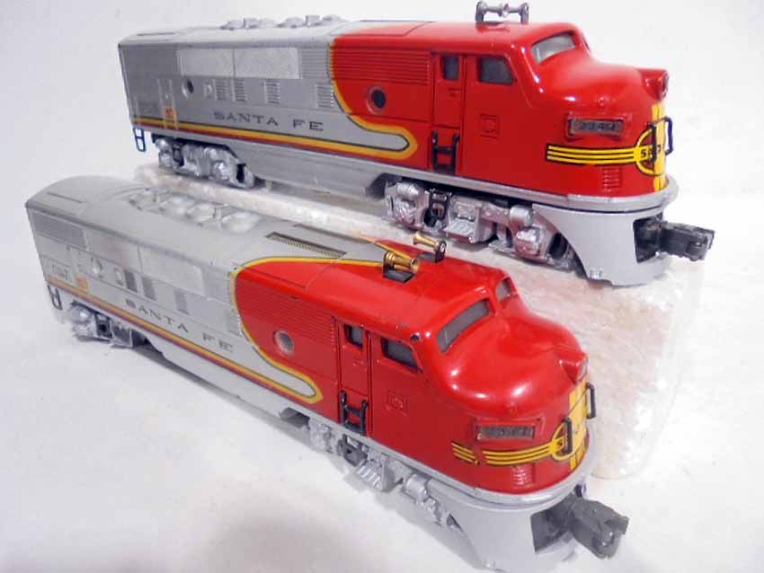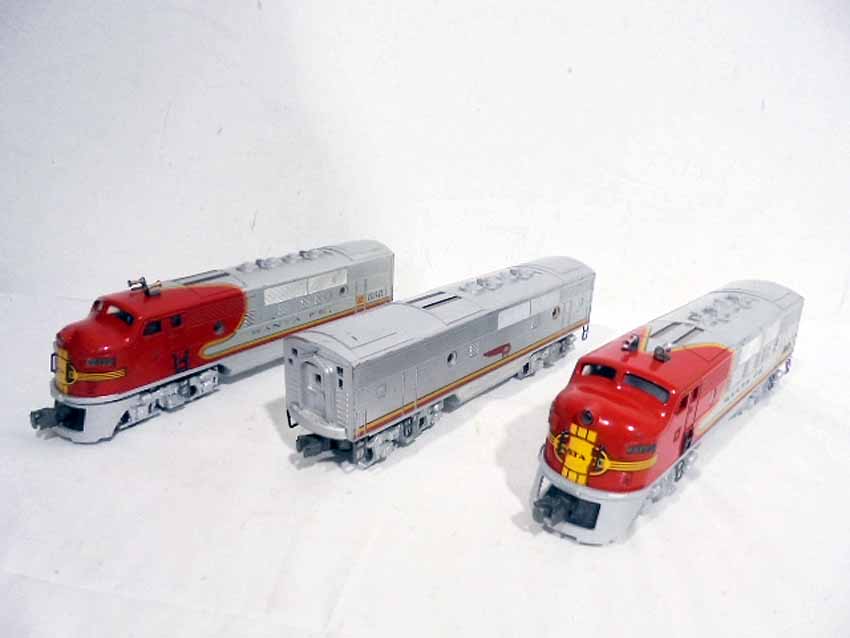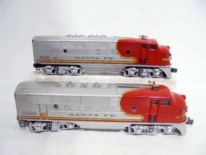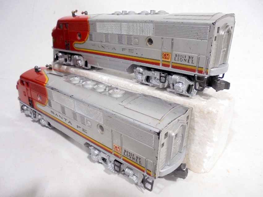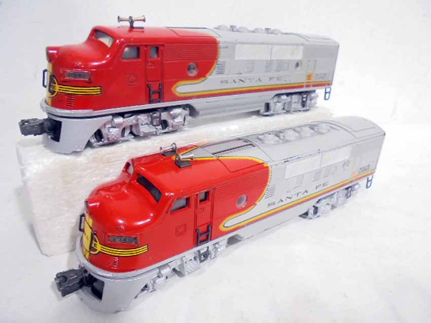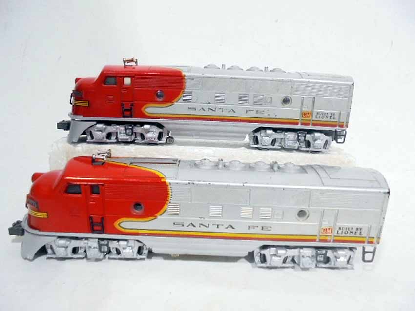 These are the #2343 Santa Fe ABA Diesel Locomotives that Lionel made in the early 1950s. Dual Motors, Magnetraction, and Horn. No Boxes. Examine very closely; what is pictured is what you will receive. Please add $50.00 for US-48 Shipping and Insurance (more west of the Mississippi).