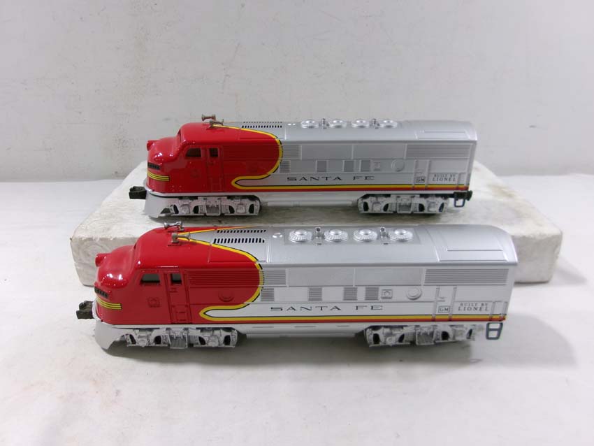 These are the #2383 SF F3 ABA Diesel Engines (restored) that Lionel made Post War, the B unit is acts a 2243C. Dual Motors, Horn, and Magnetraction. No Boxes. Examine very closely; what is pictured is what you will receive. Please add $50.00 for US-48 Shipping and Insurance (more west of the Mississippi).