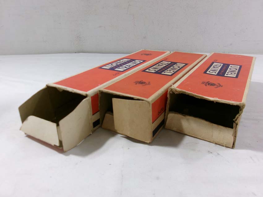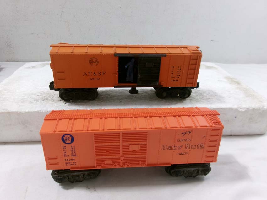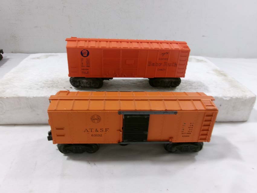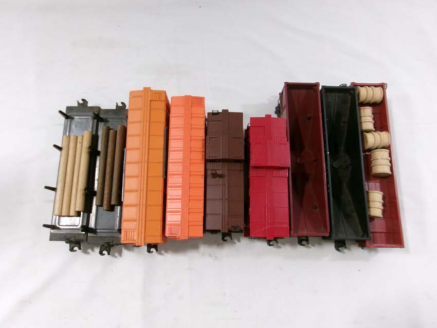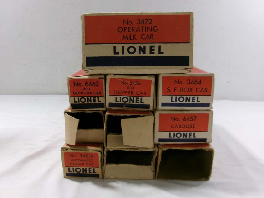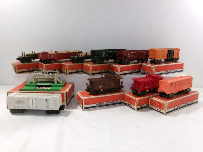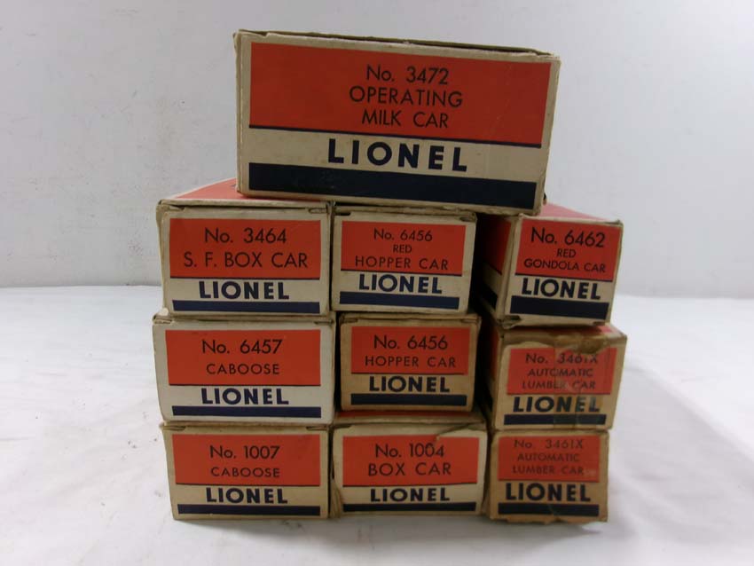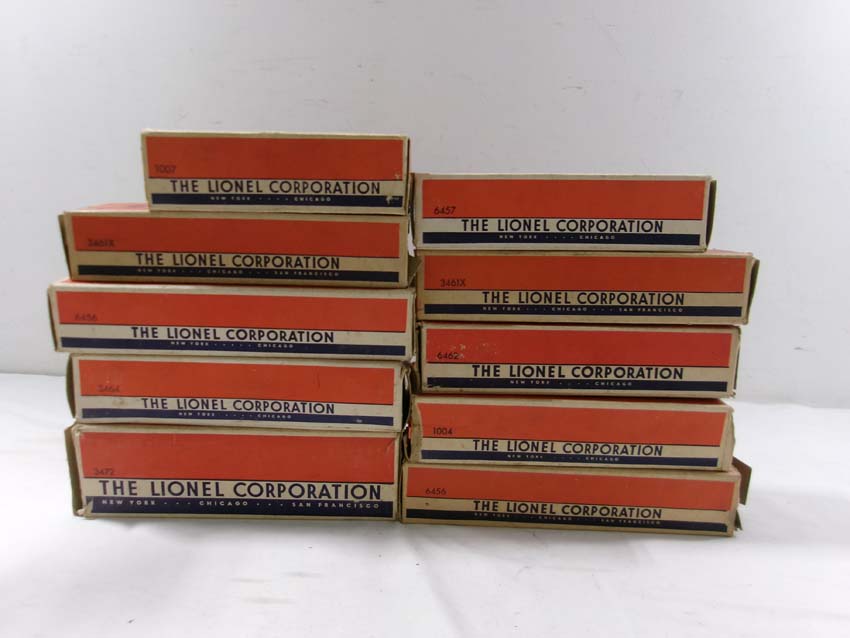 These are ten Assorted Freight Cars (four operating) that Lionel made in the 1950s. Original Boxes. Examine closely; what is pictured is what you will receive. Please add $50.00 for US-48 Shipping and Insurance (more west of the Mississippi). |