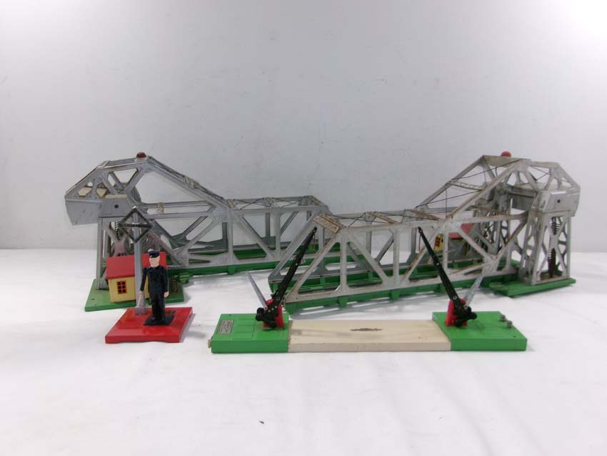 These are the #47 Automatic Dual Crossing Gates, two #313 Bascule Bridges and #1045 Automatic Flagman that Lionel made in the past. No Boxes. Examine closely; what is pictured is what you will receive. Please add $50.00 for US-48 Shipping and Insurance (more west of the Mississippi).