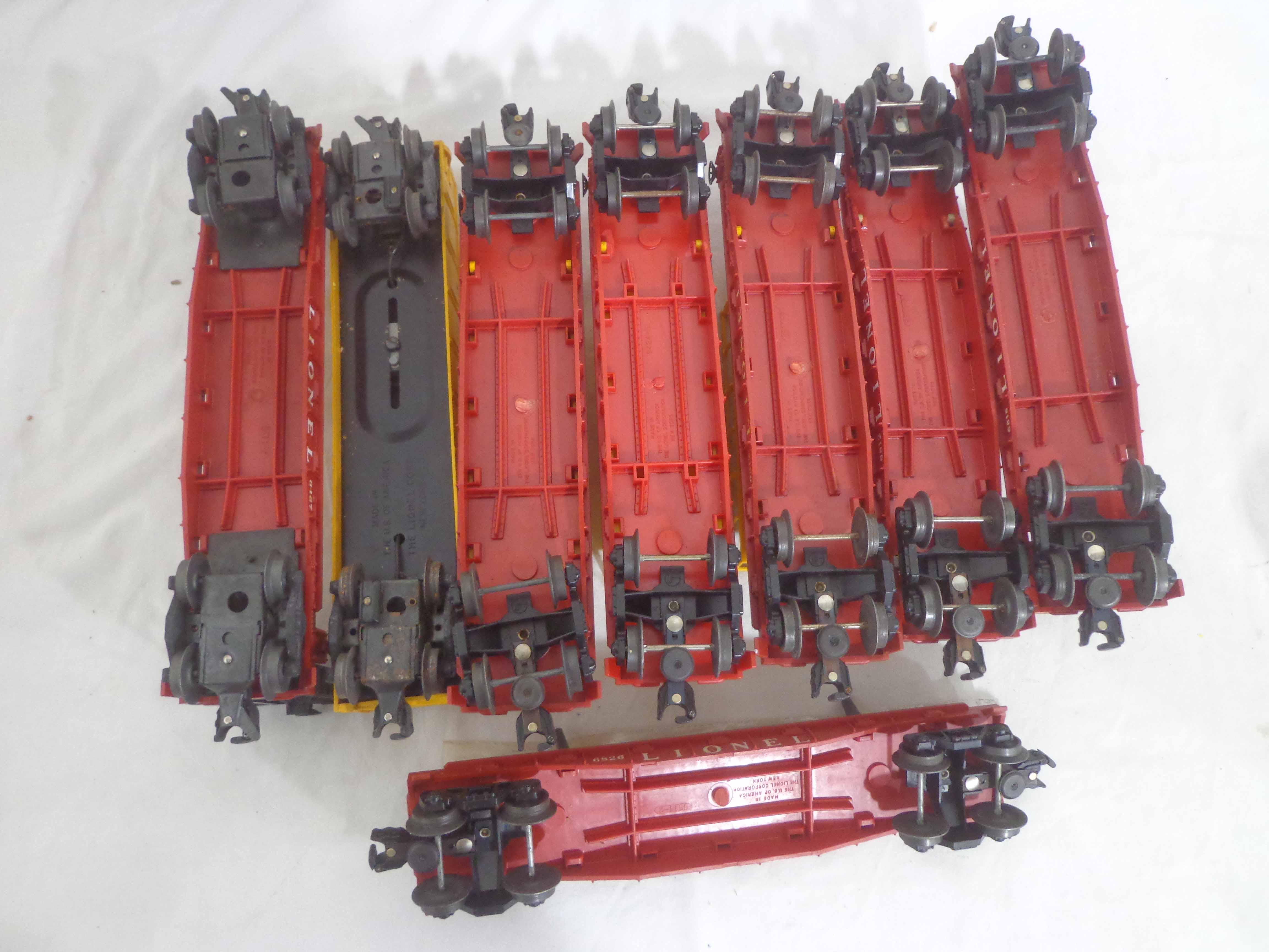 These are eight Freight Cars that Lionel made in the past No Boxes. Examine closely; what is pictured is what you will receive. Please add $45.00 for US-48 Shipping and Insurance (more west of the Mississippi).