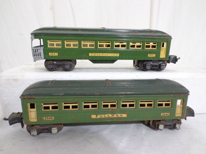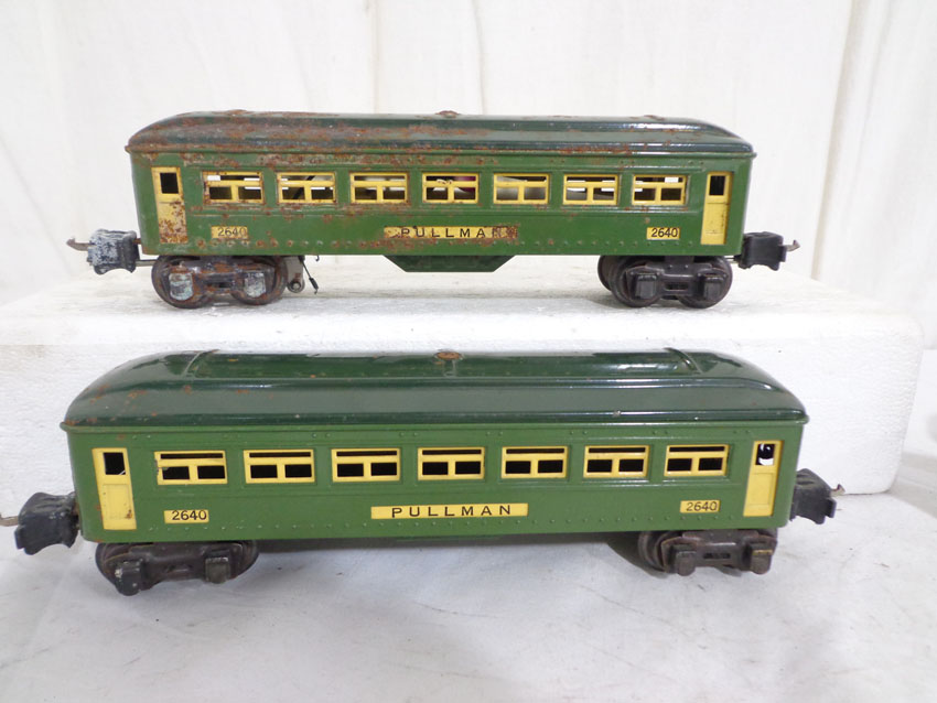 These are the #2640/2640/2640/2641 Passenger Cars that Lionel made Pre War. No Boxes. Examine closely; what you see is what you will receive. Please add $35.00 for US-48 Shipping and Insurance (more west of the Mississippi).