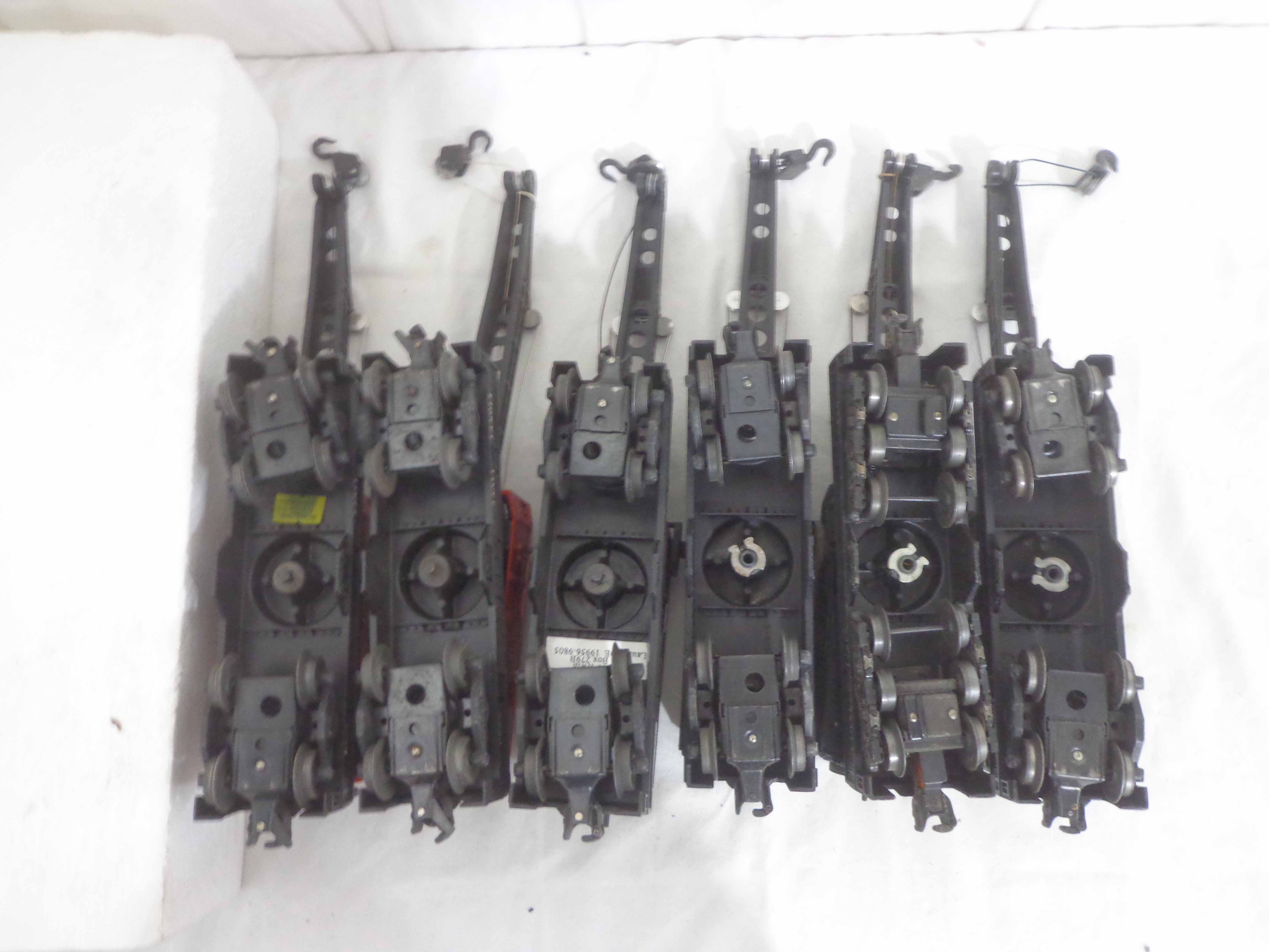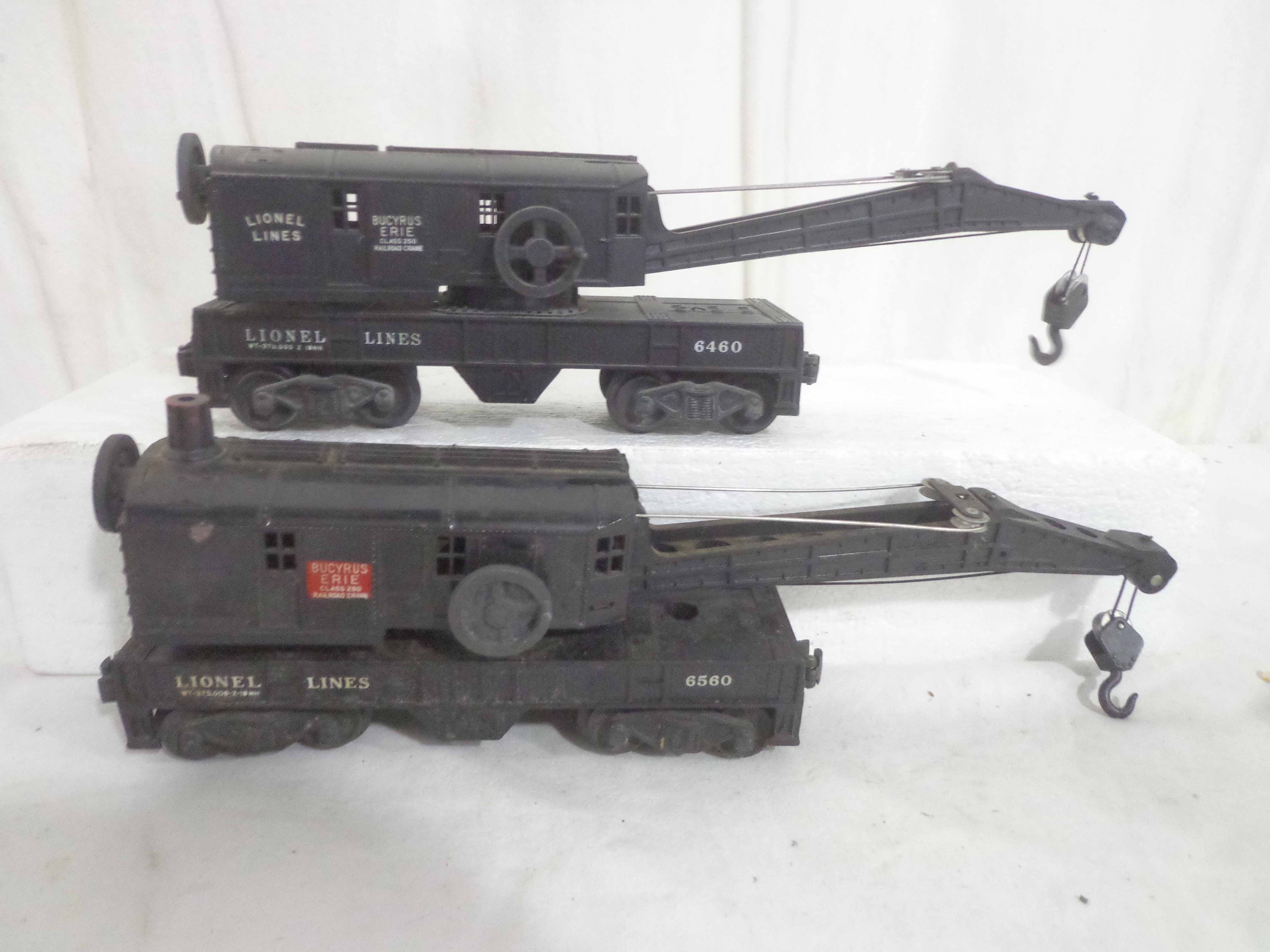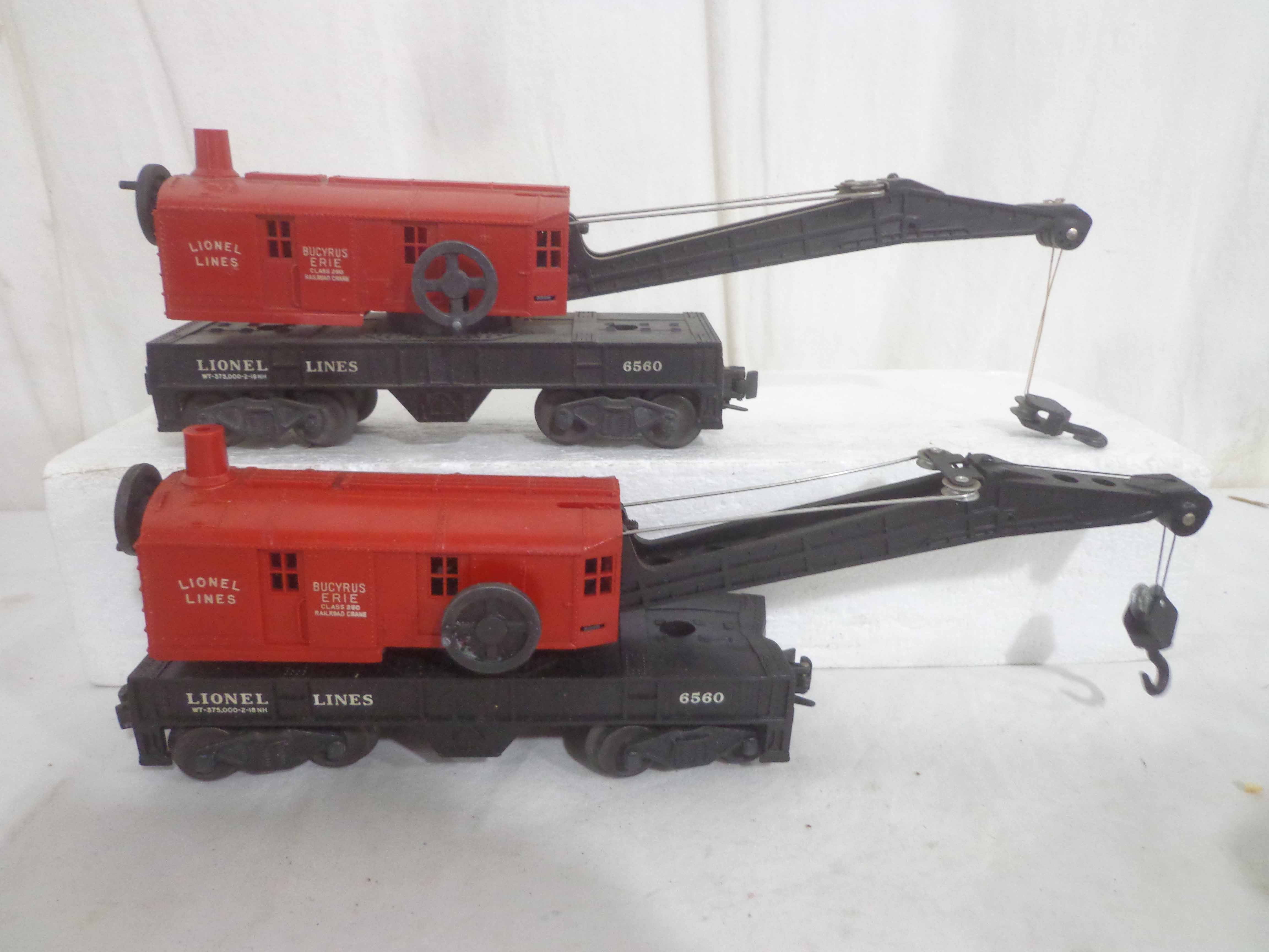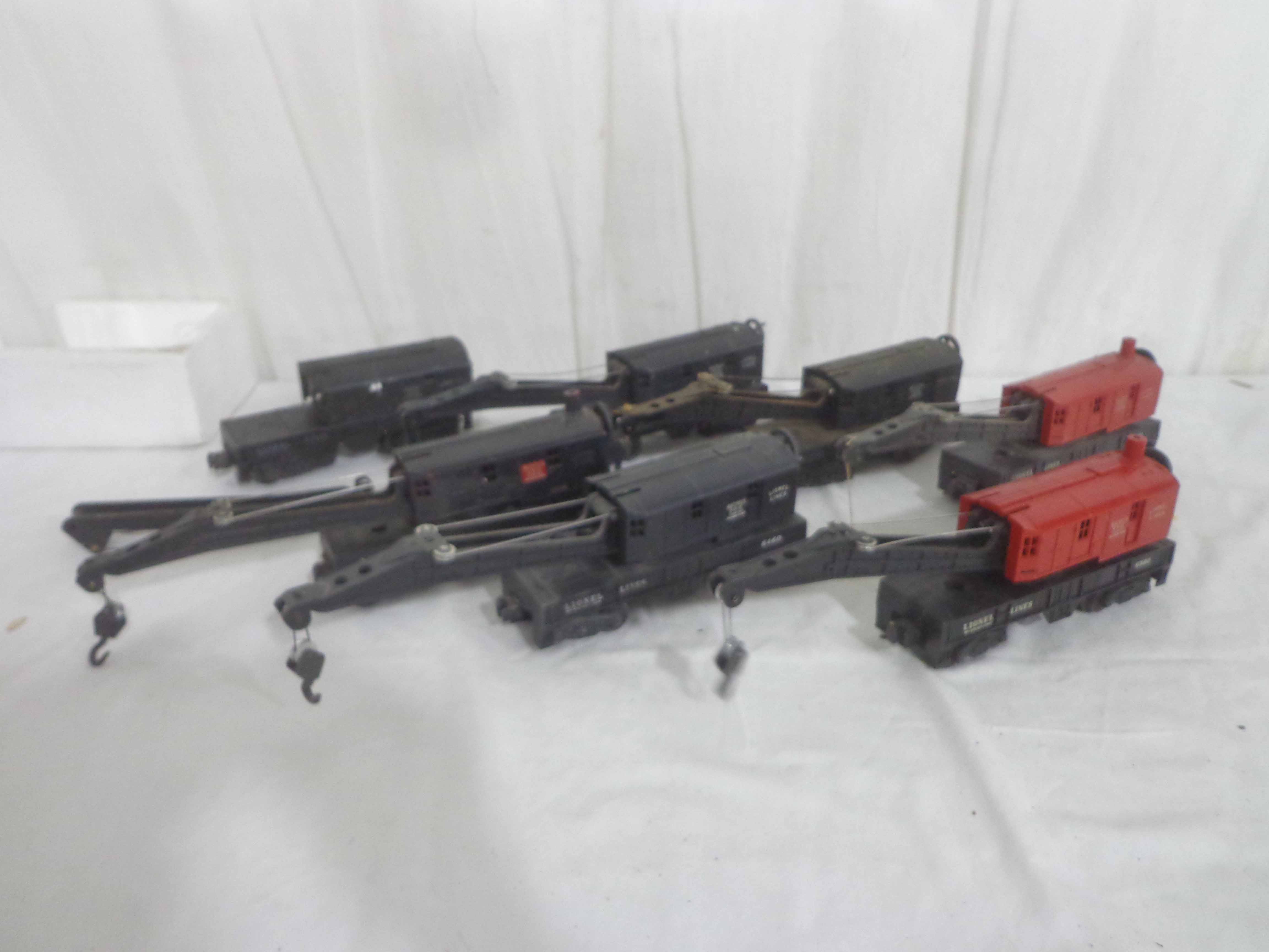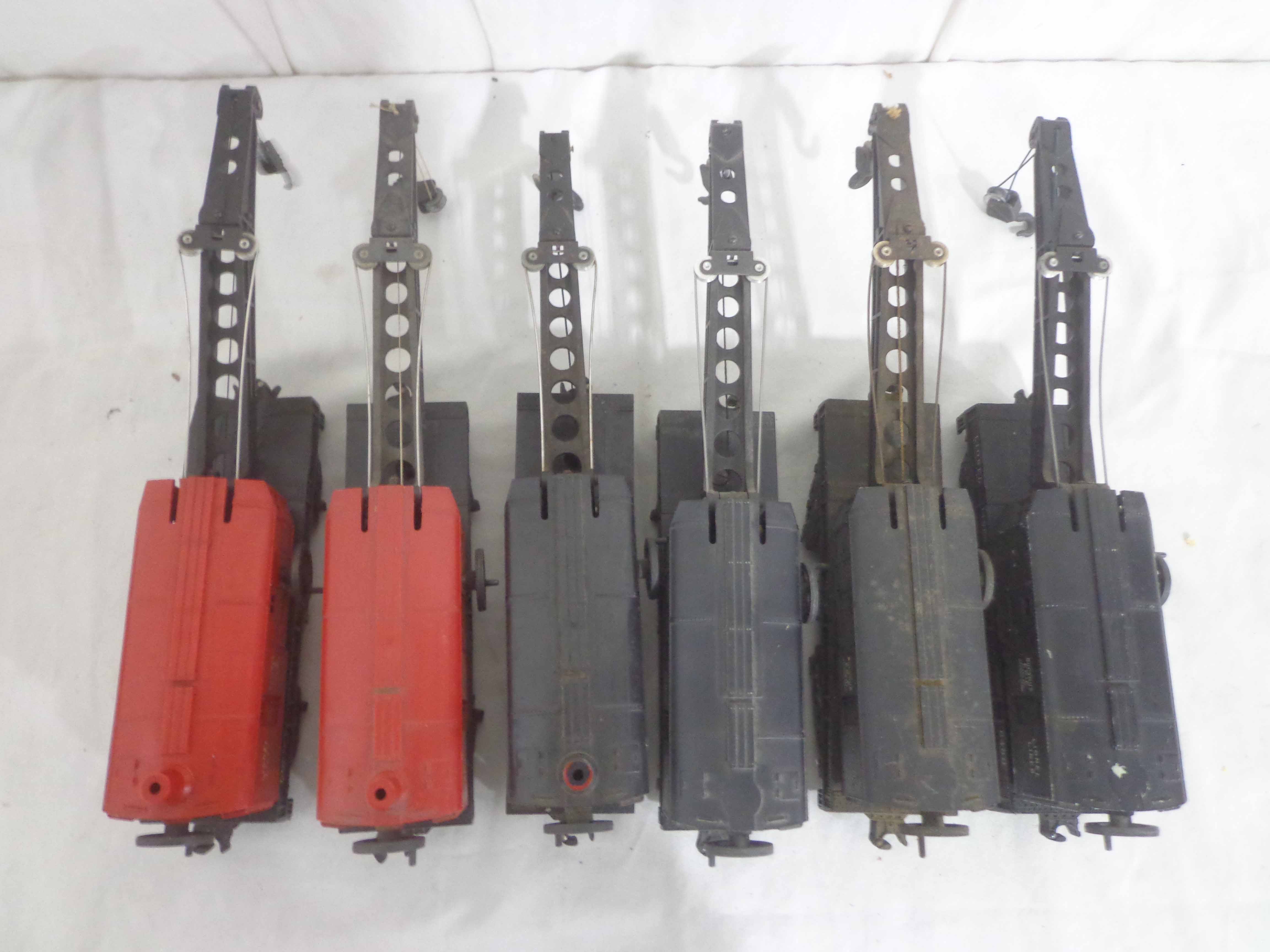 These are seven Assorted Crane Cars that Lionel made in the past. No Boxes. Examine very closely; what is pictured is what you will receive. Please add $45.00 for US-48 Shipping and Insurance (more west of the Mississippi) |