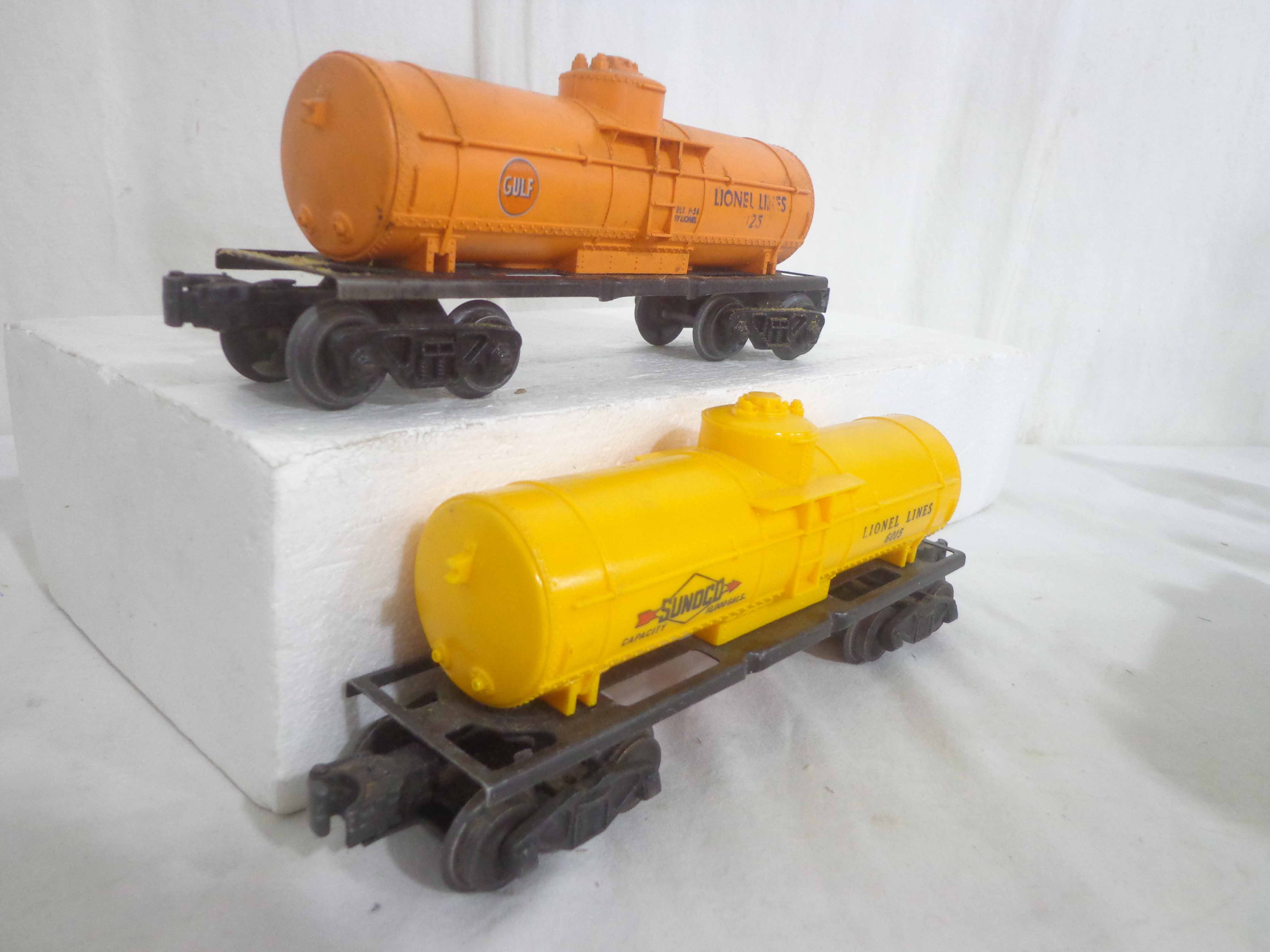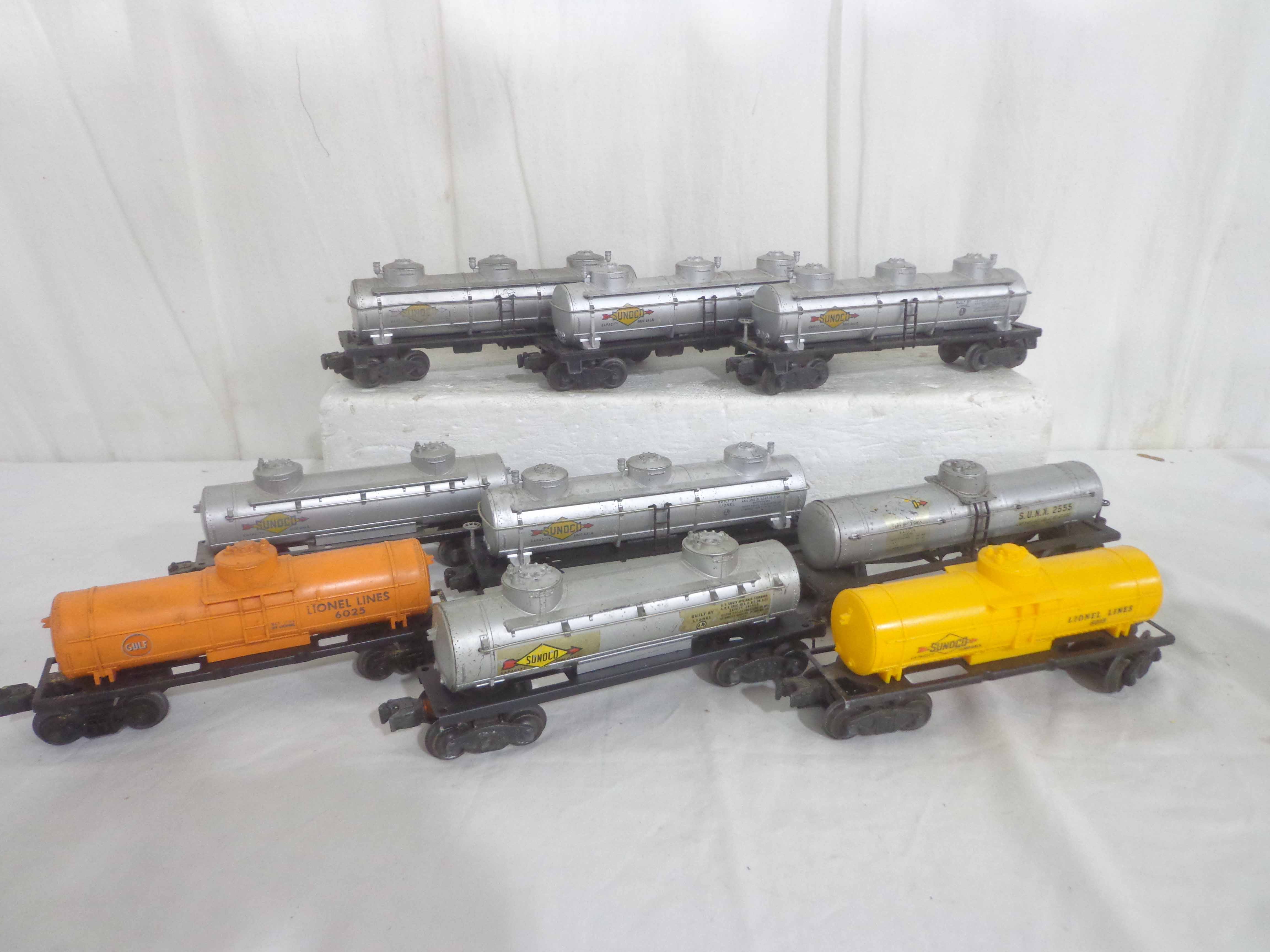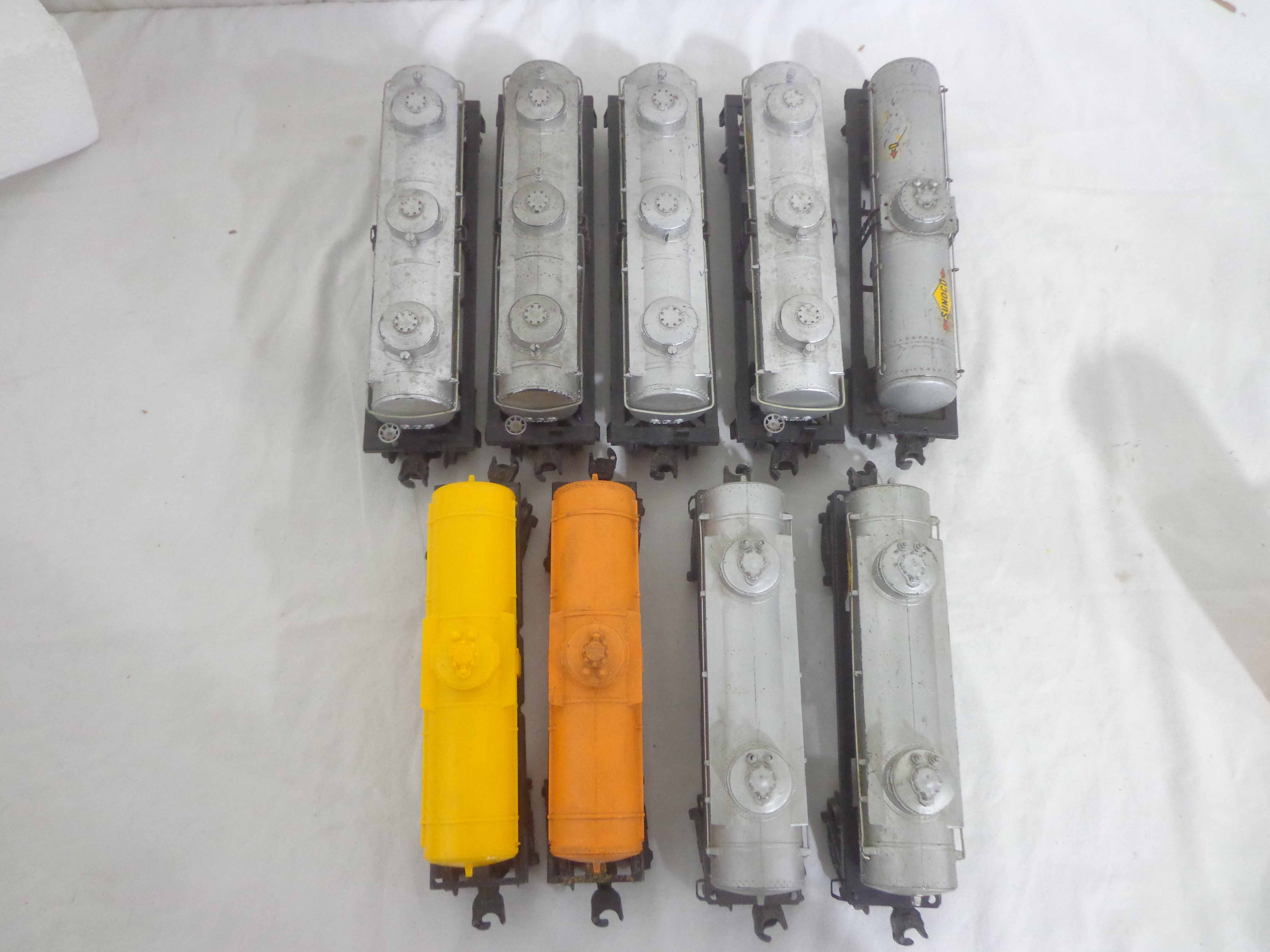 These are nine Assorted Tank Cars that Lionel made in the past. No Boxes. Examine closely; what is pictured is what you will receive. Please add $50.00 for US-48 Shipping and Insurance (more west of the Mississippi). |