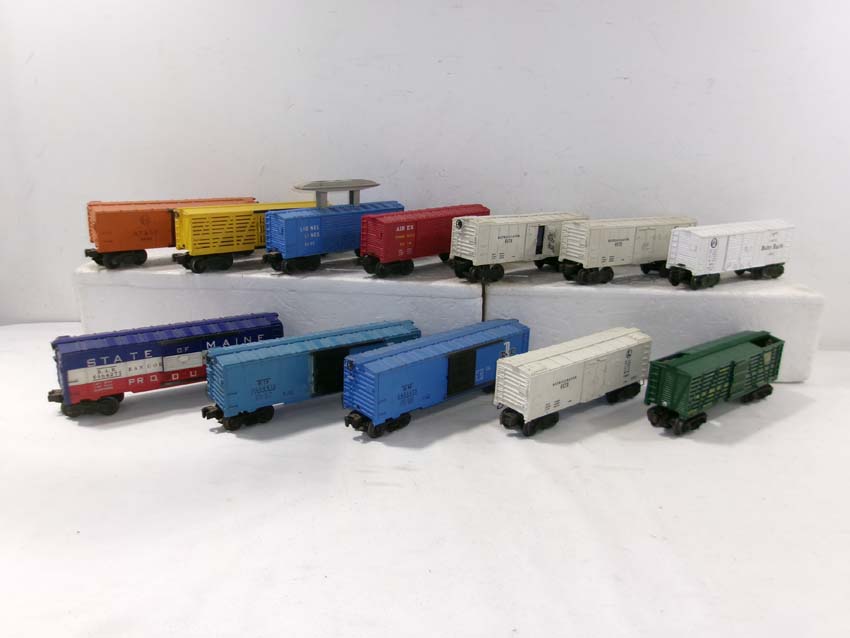 These are twelve Assorted Freight Cars (two operating) that Lionel made in the past. No Boxes. Examine closely; what is pictured is what you will receive. Please add $50.00 for US-48 Shipping and Insurance (more west of the Mississippi). |