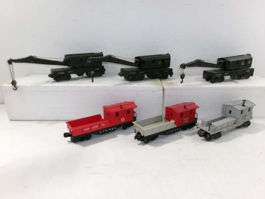 6 Assorted Lionel Crane cars & Cabooses