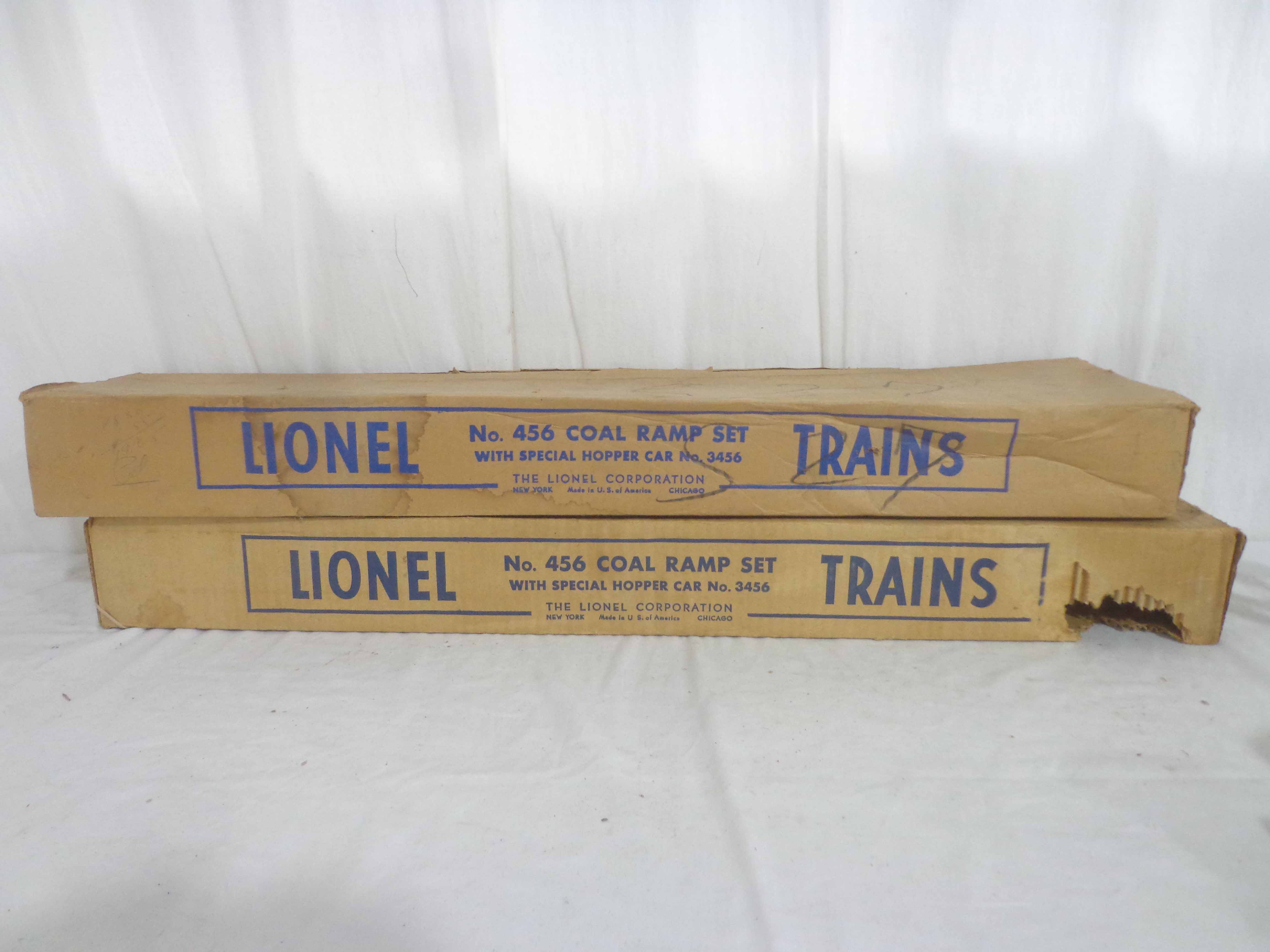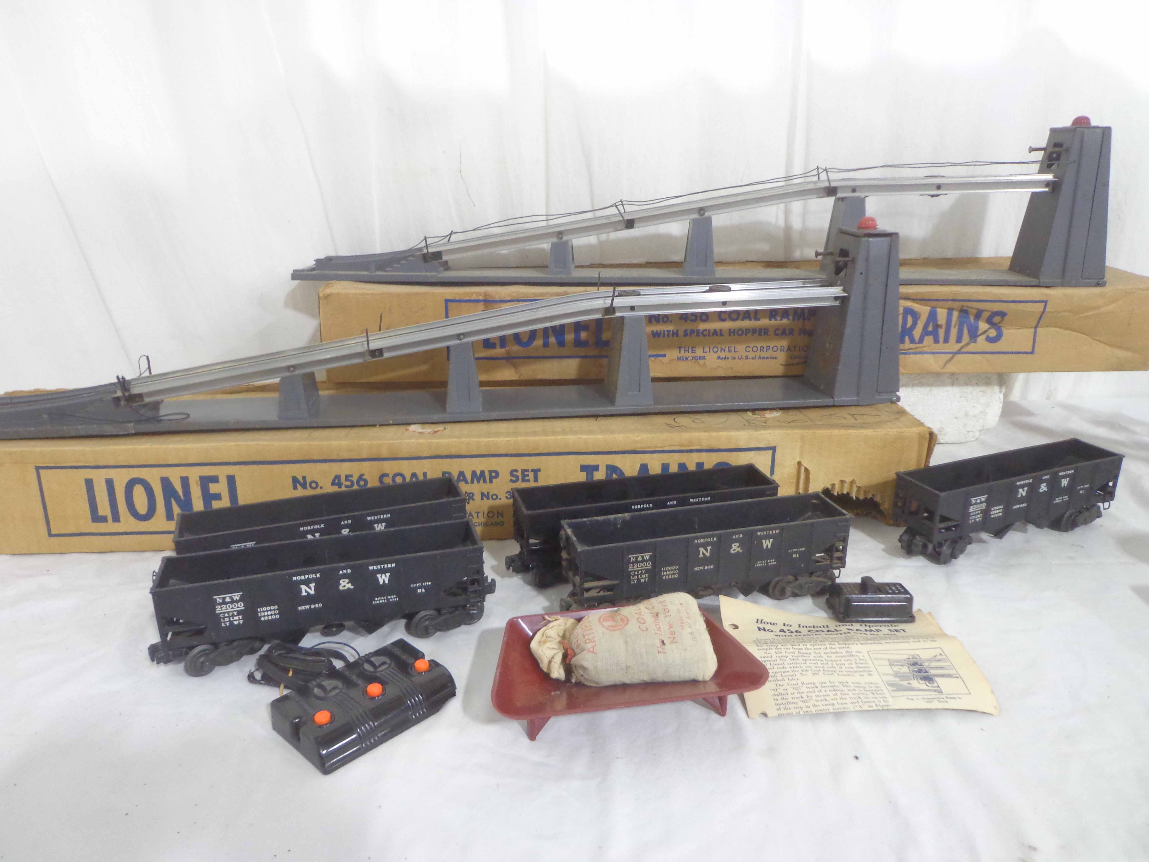 These are two Coal Ramp Sets and three Extra #3456 Cars that Lionel made in the past. Two Boxes/instrutions. Examine closely; what is pictured is what you will receive. Please add $50.00 for US-48 Shipping and Insurance (more west of the Mississippi).