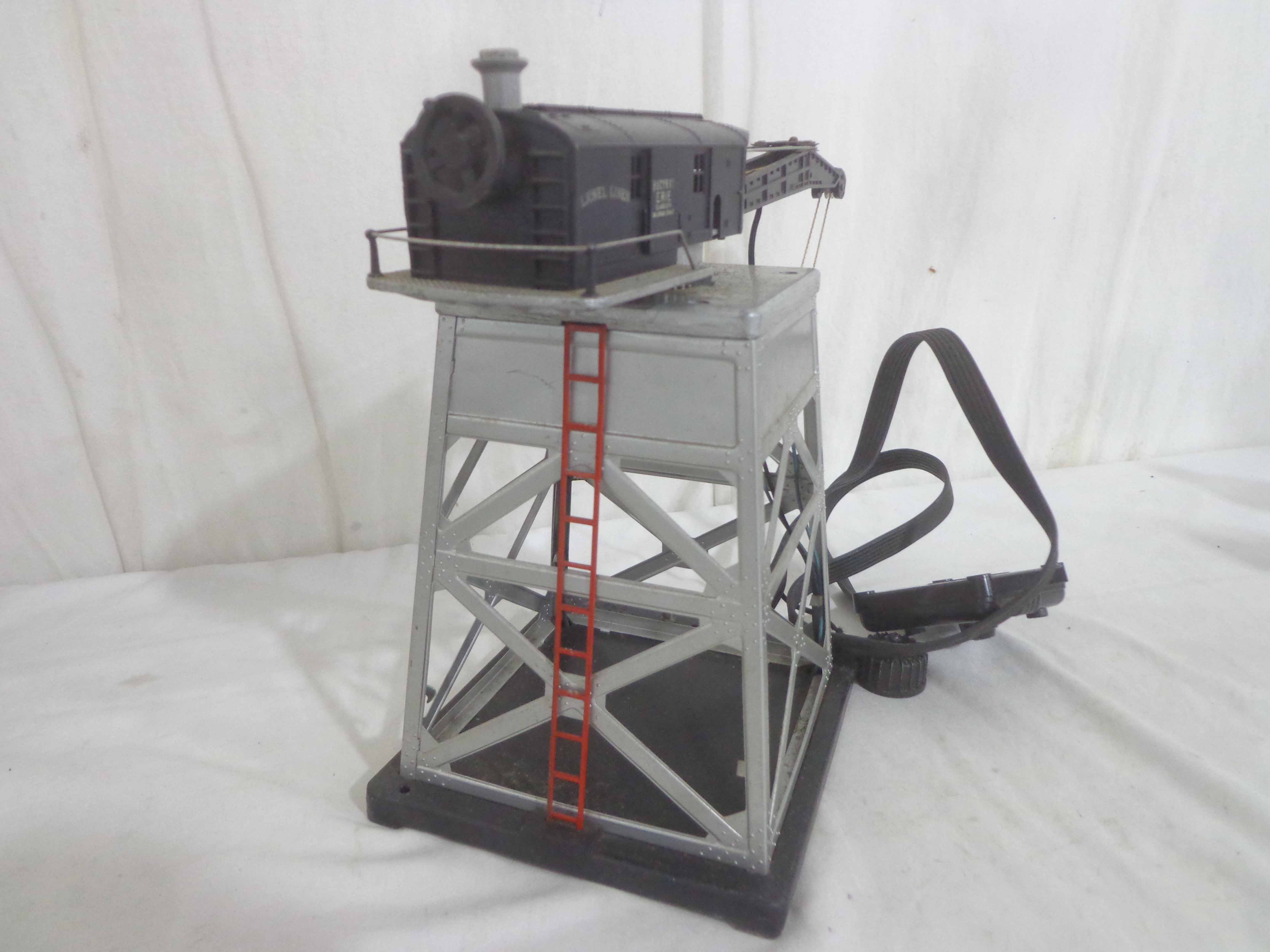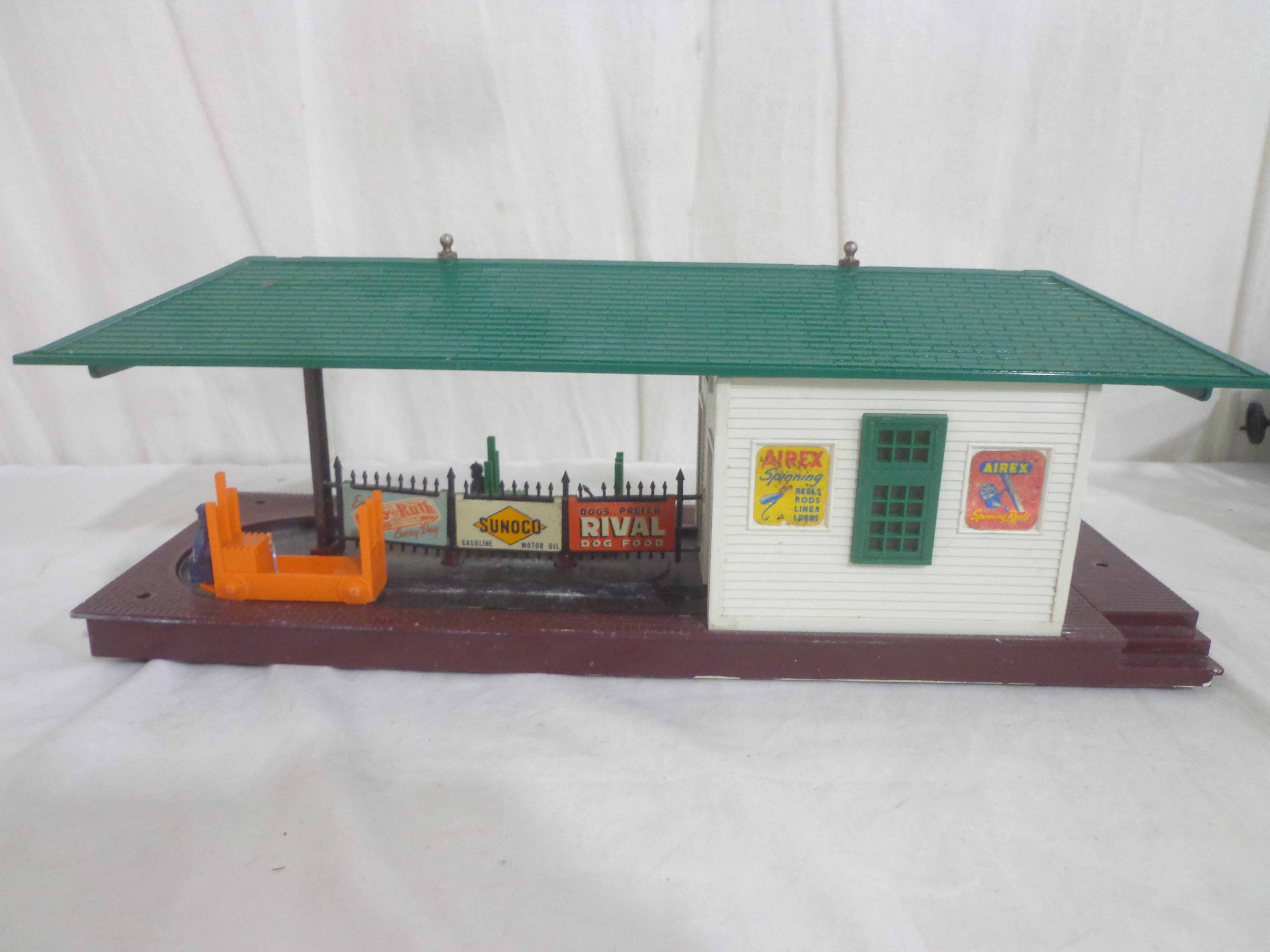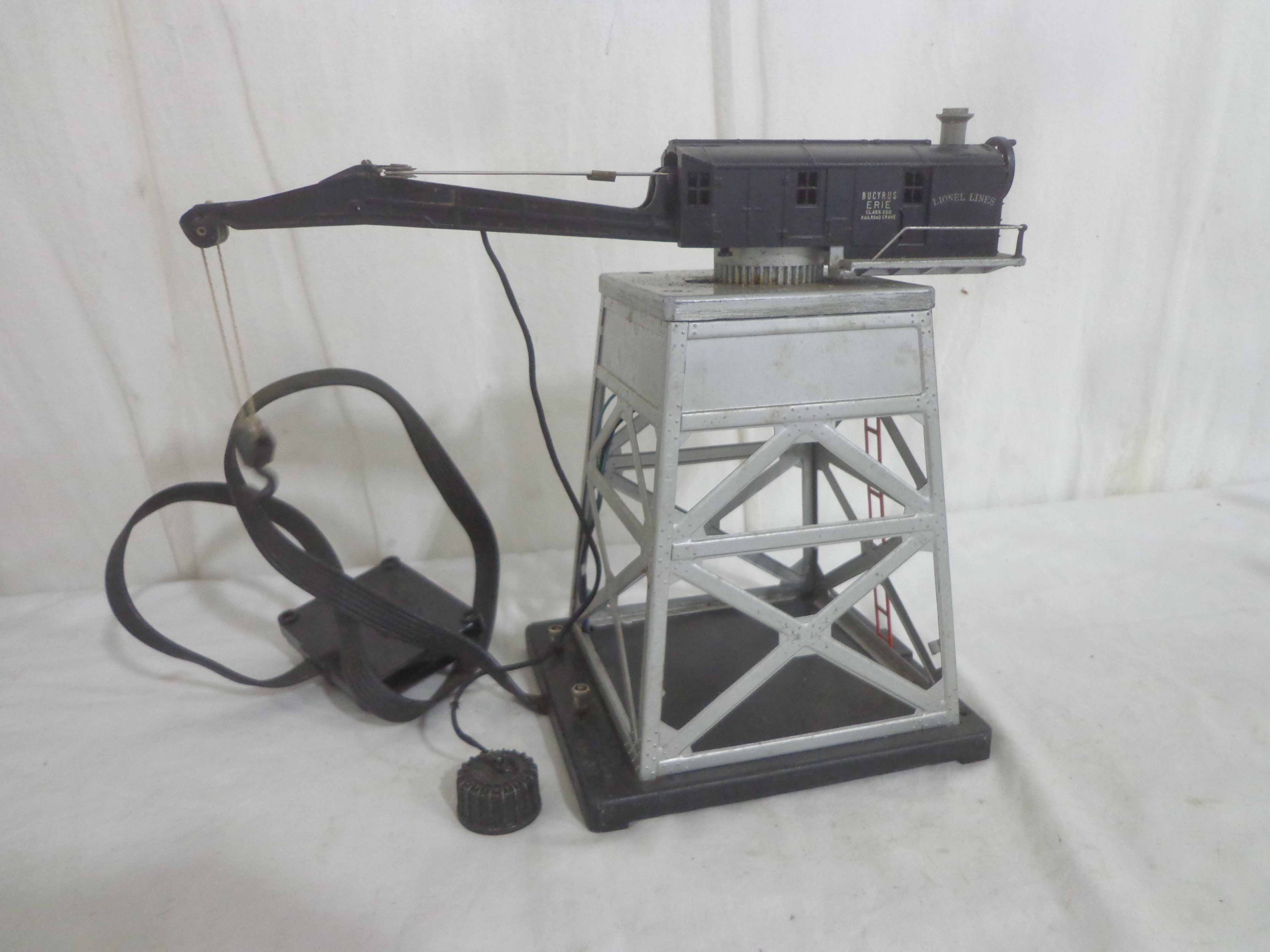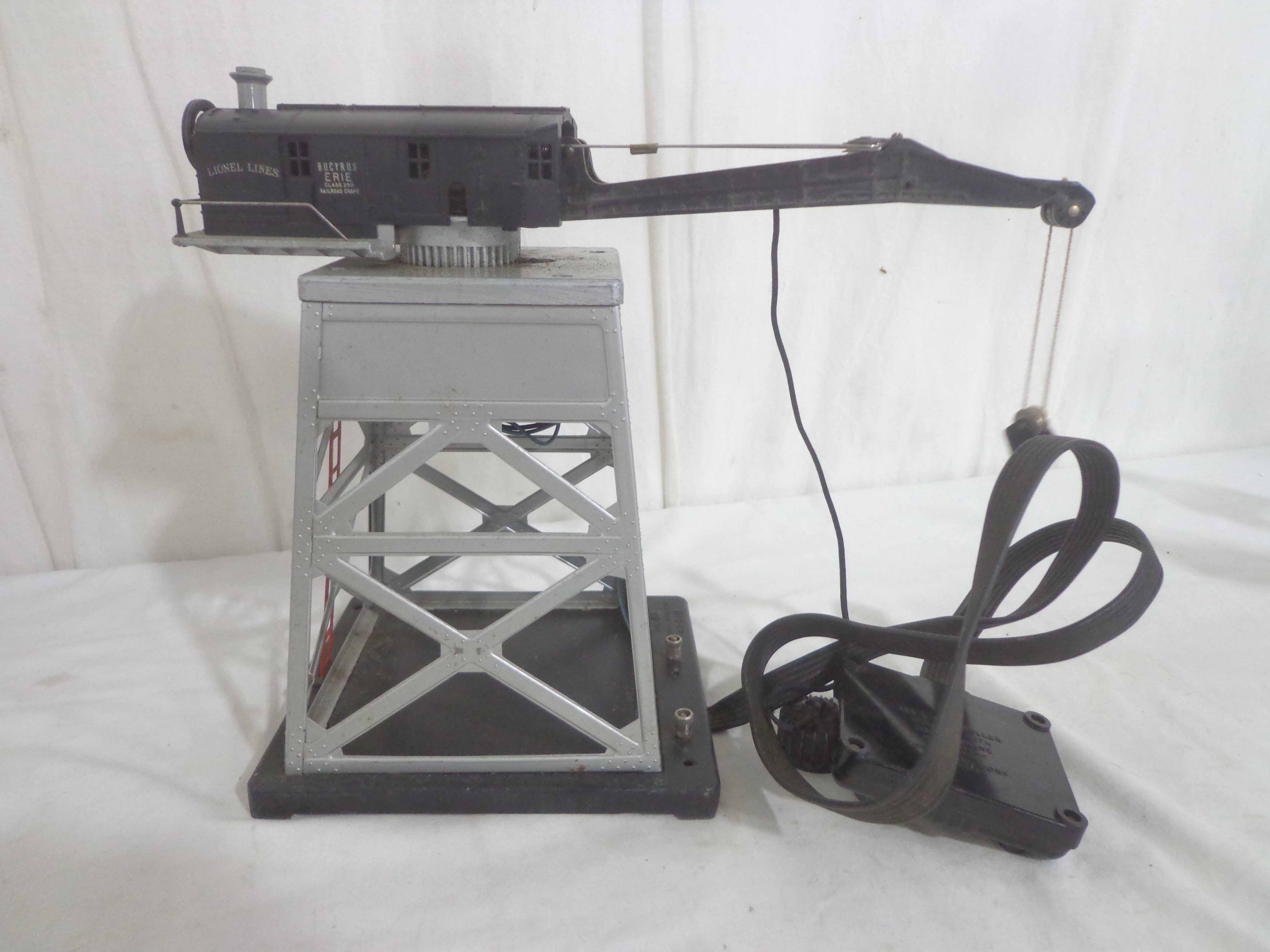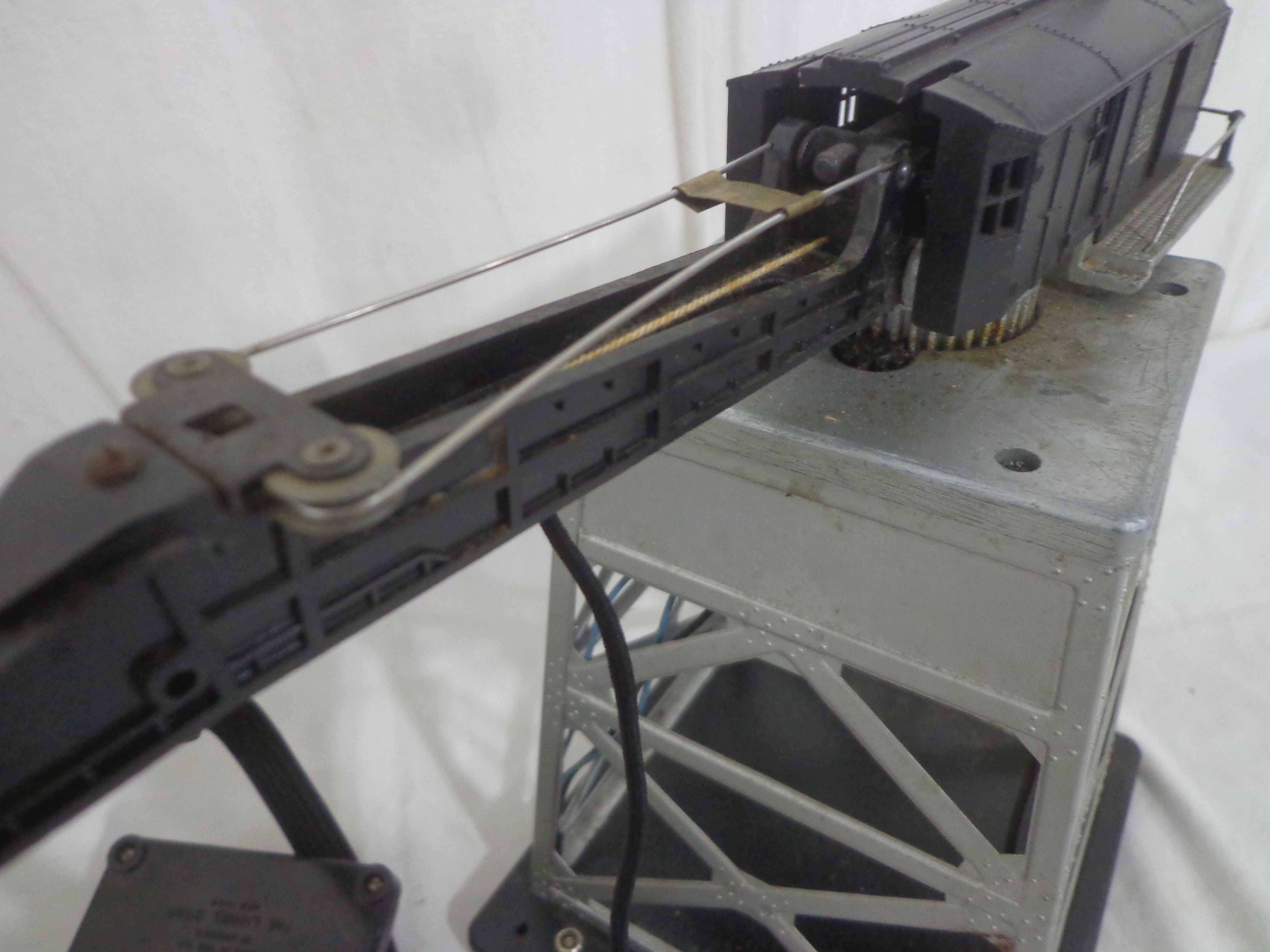 Lionel #145 Automatic Gateman, #182 Remote Control Magnetic Crane, #356 Automatic Freight Station, and #150 Telegraph Pole Set/OBs