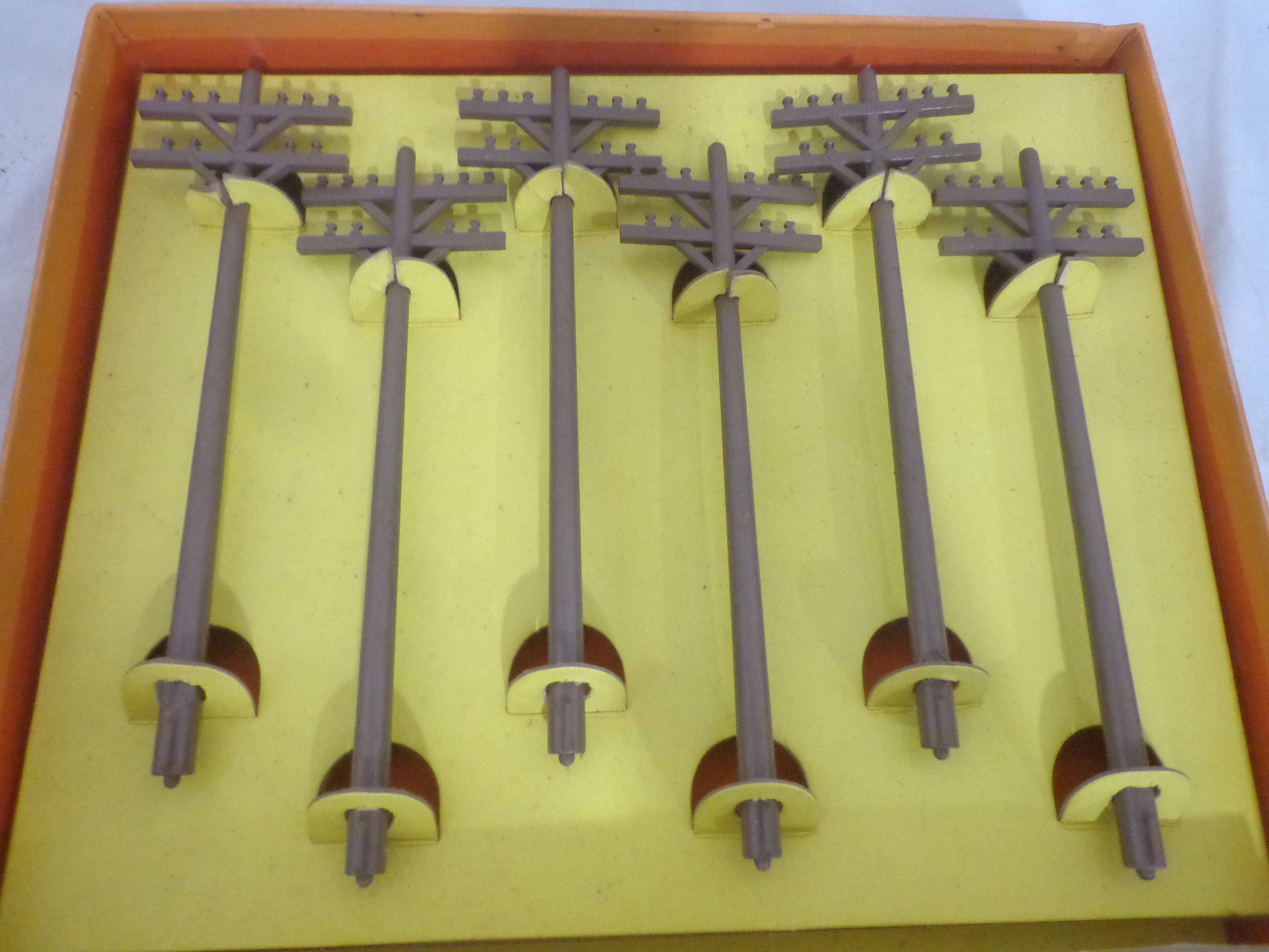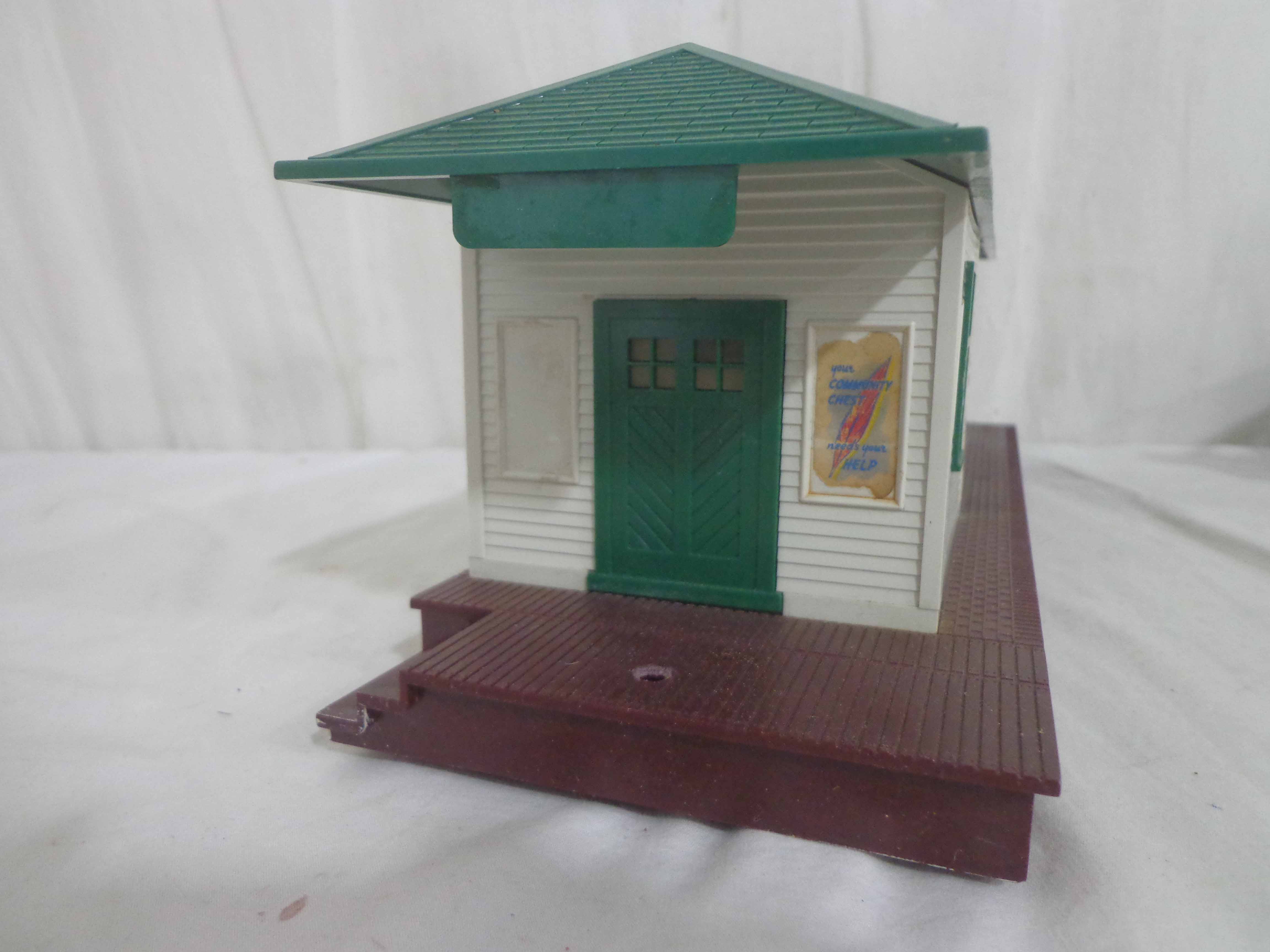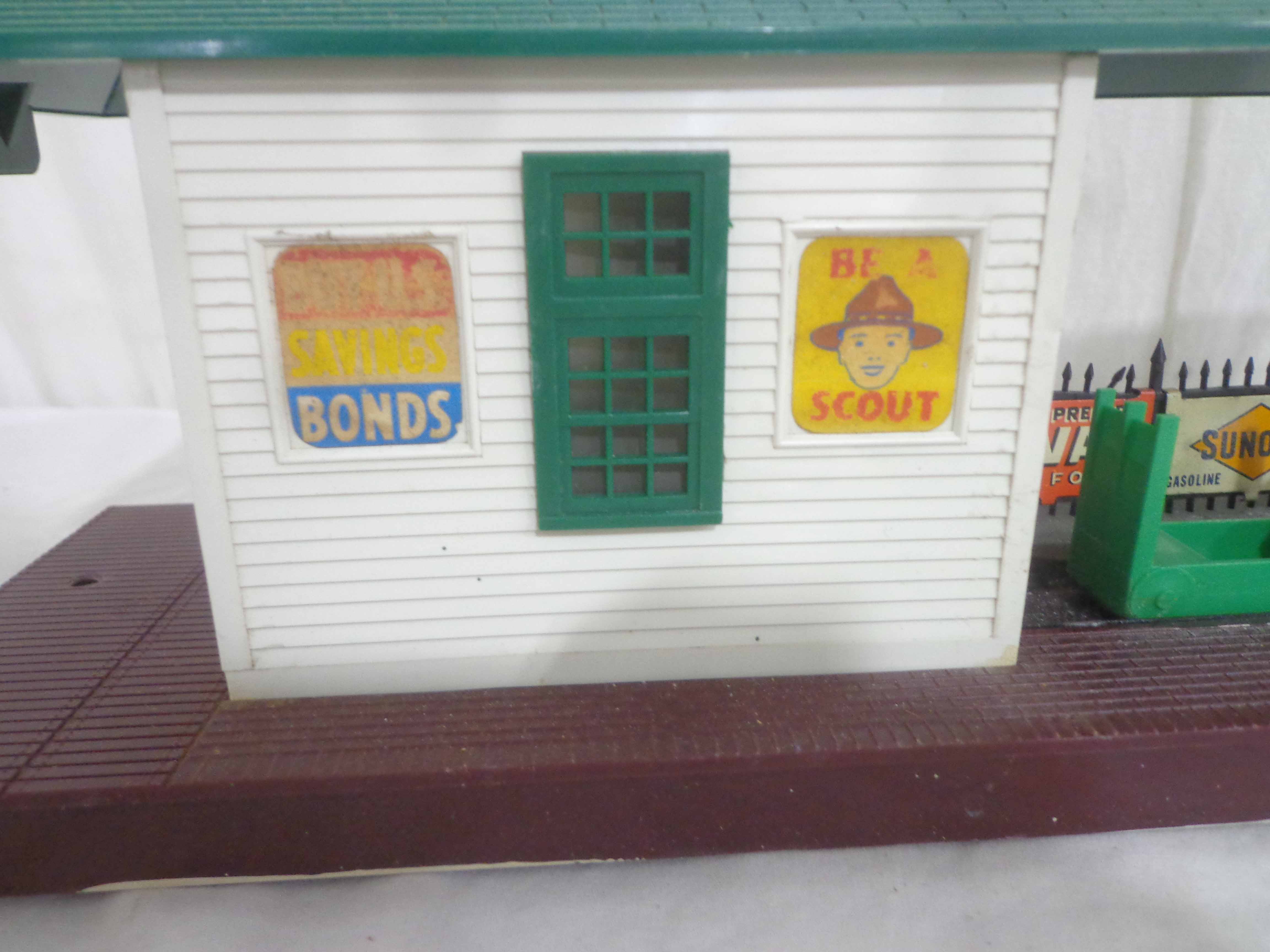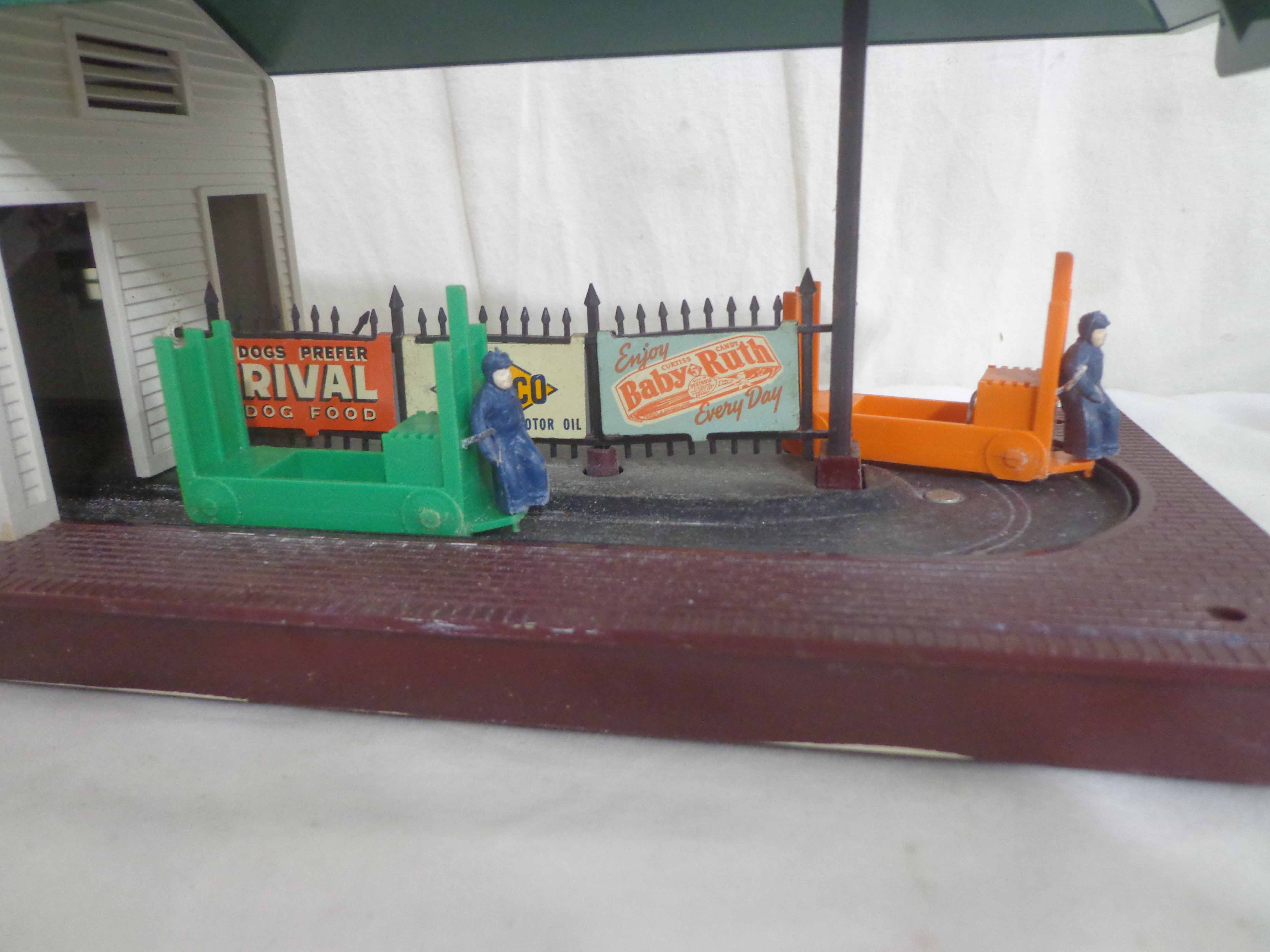 Lionel #145 Automatic Gateman, #182 Remote Control Magnetic Crane, #356 Automatic Freight Station, and #150 Telegraph Pole Set/OBs