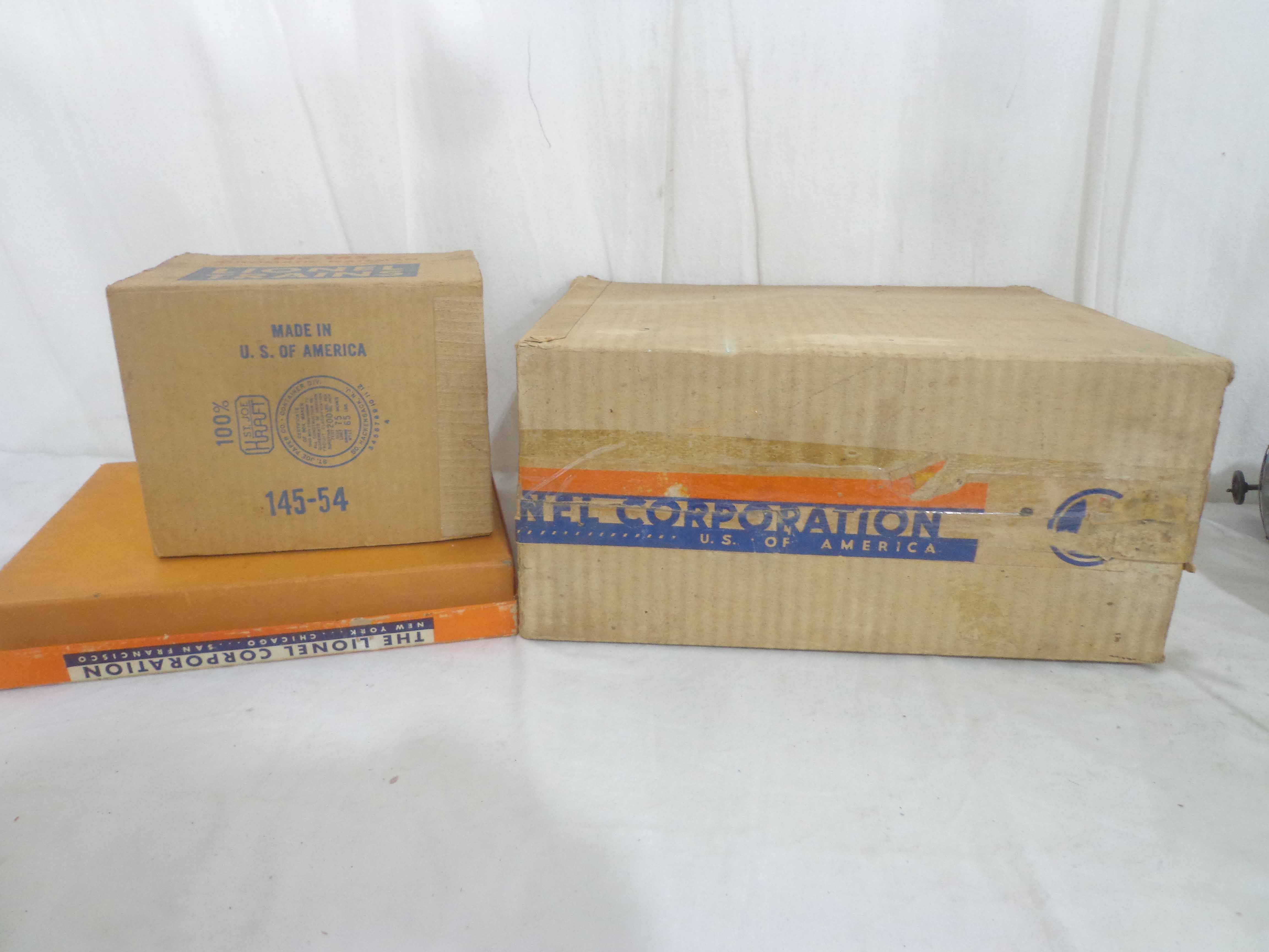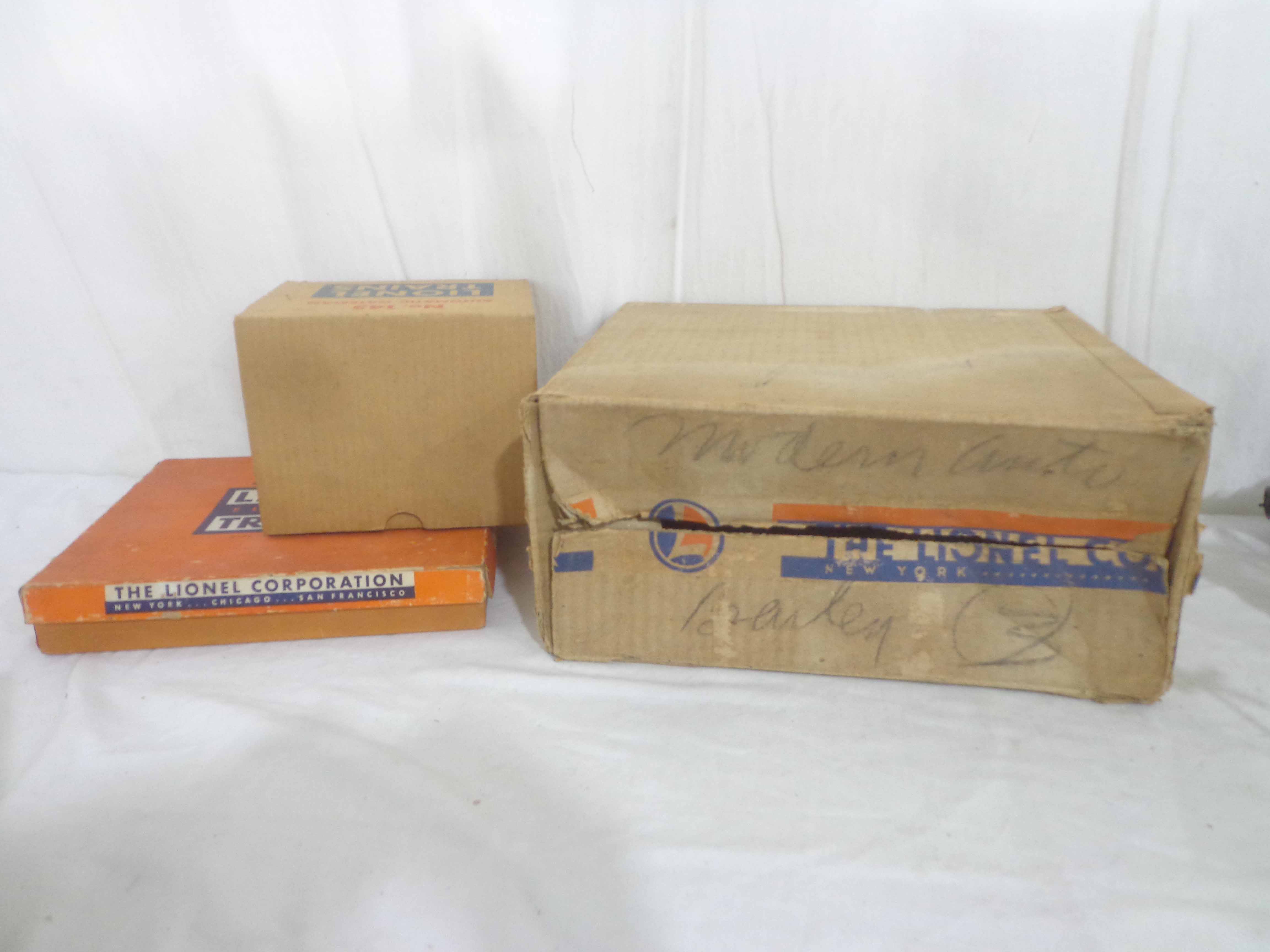 These are the #145 Automatic Gateman, #182 Remote Control Magnetic Crane, #356 Automatic Freight Station, and #150 Telegraph Pole Set that Lionel made in the past. Three Original Boxes. Examine closely; what is pictured is what you will receive. Please add $50.00 for US-48 Shipping and Insurance (more west of the Mississippi).
