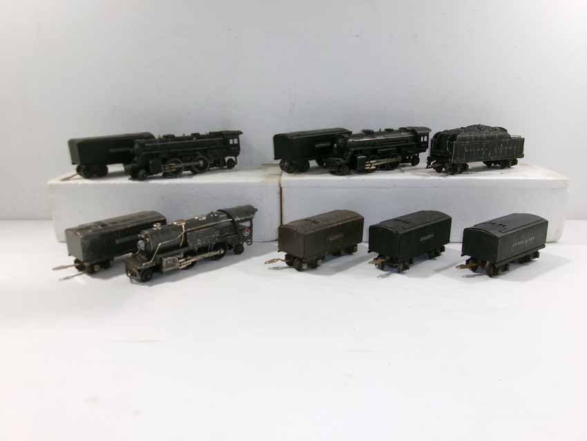 These are the #259E/1689T 2-4-2 Steam Engine & Tender, two #204/2689W 2-4-2 Steam Engines & Tenders, two #2689W Tenders, #2224T Tender and #1689W Tender that Lionel made Pre War. No Boxes. Examine closely; what is pictured is what you will receive. Please add $60.00 for US-48 Shipping and Insurance (more west of the Mississippi).