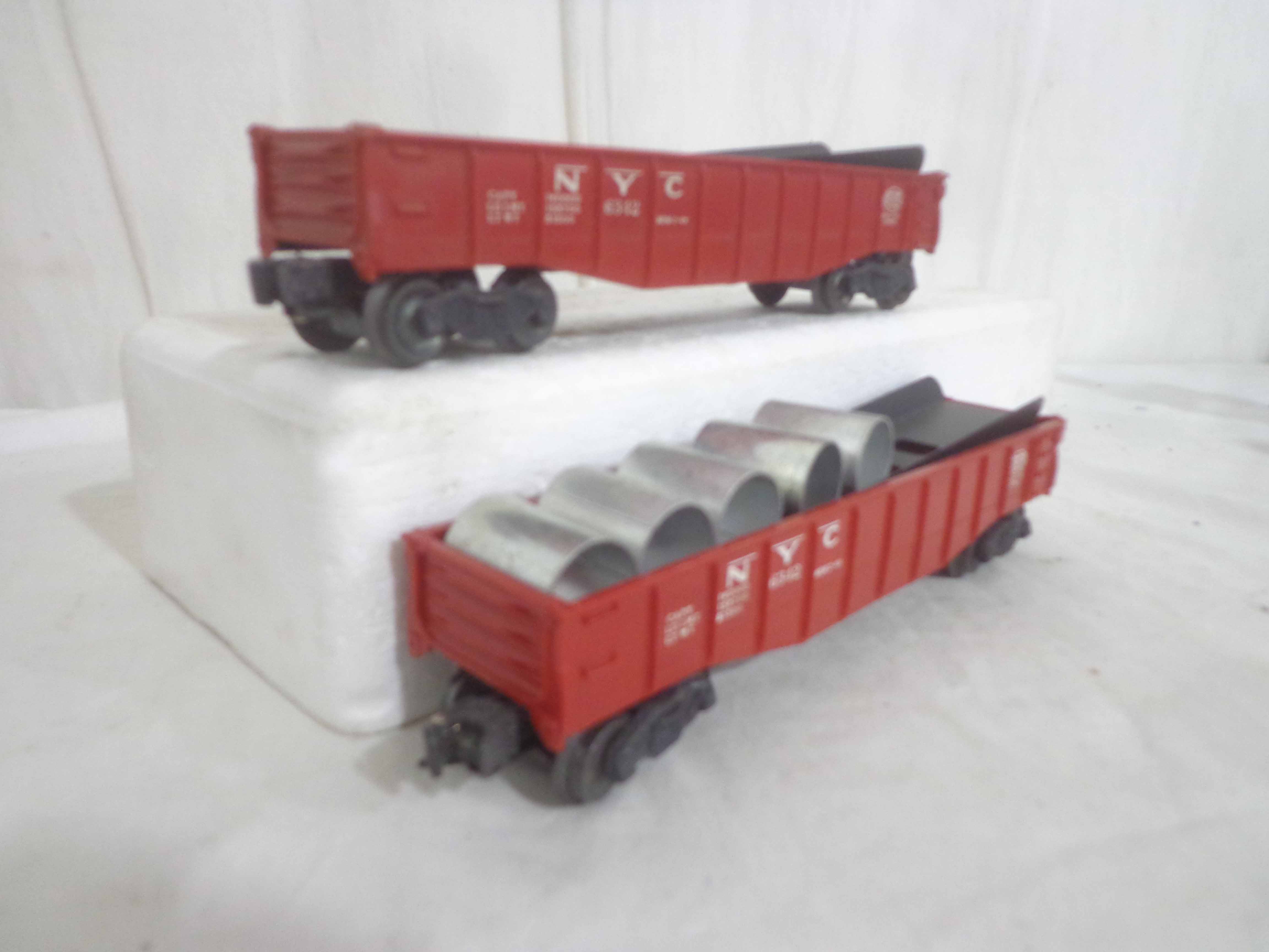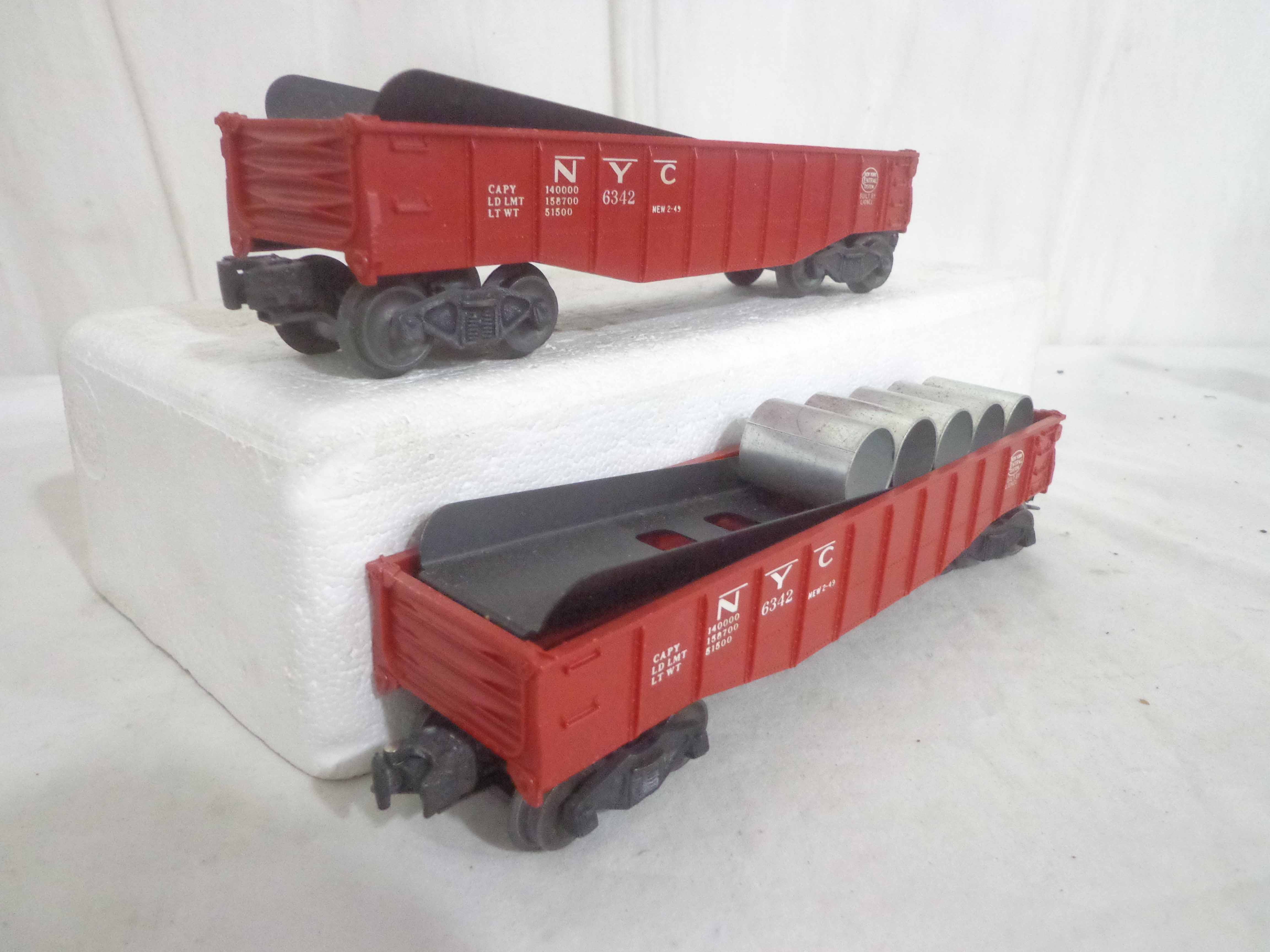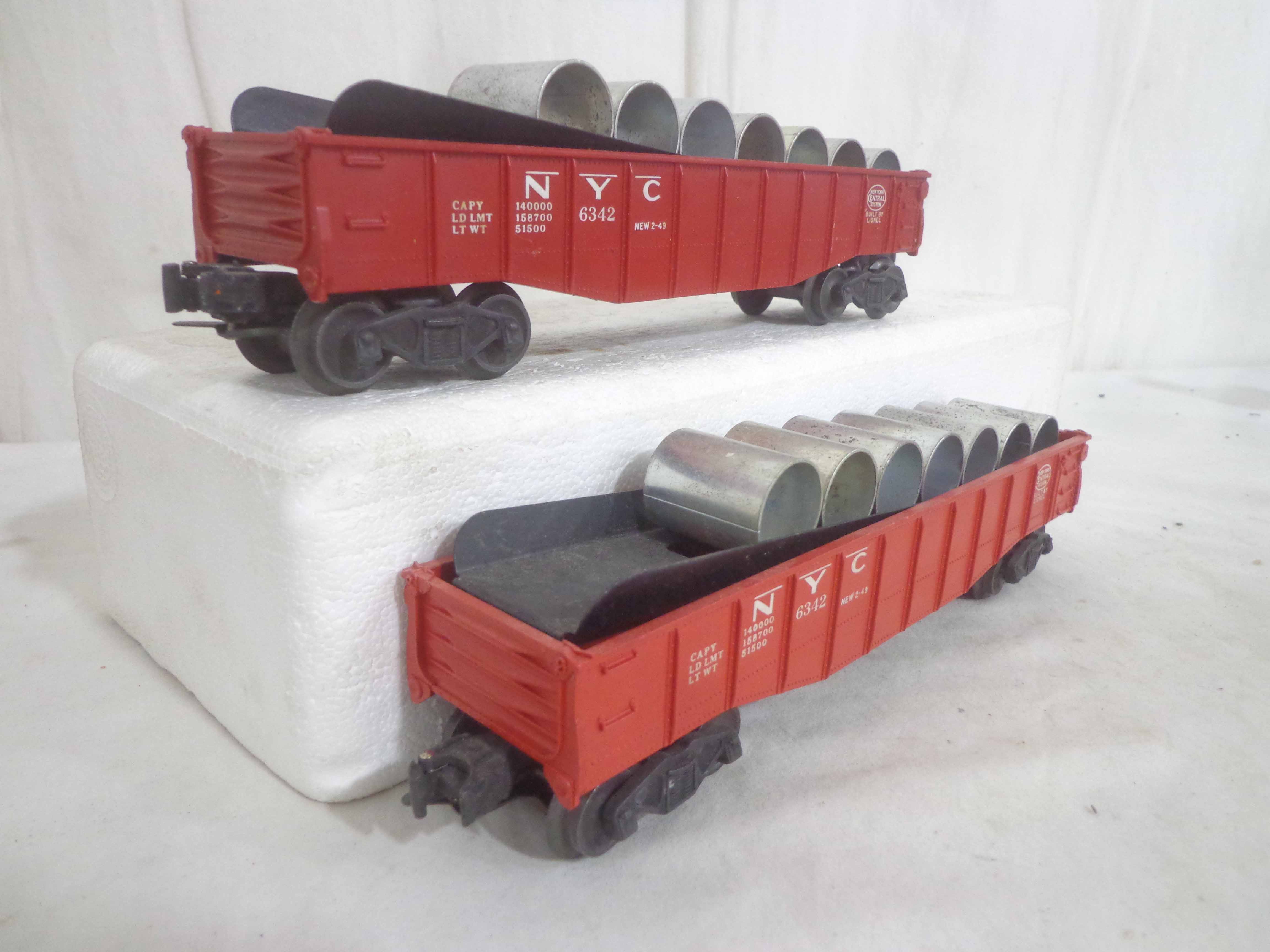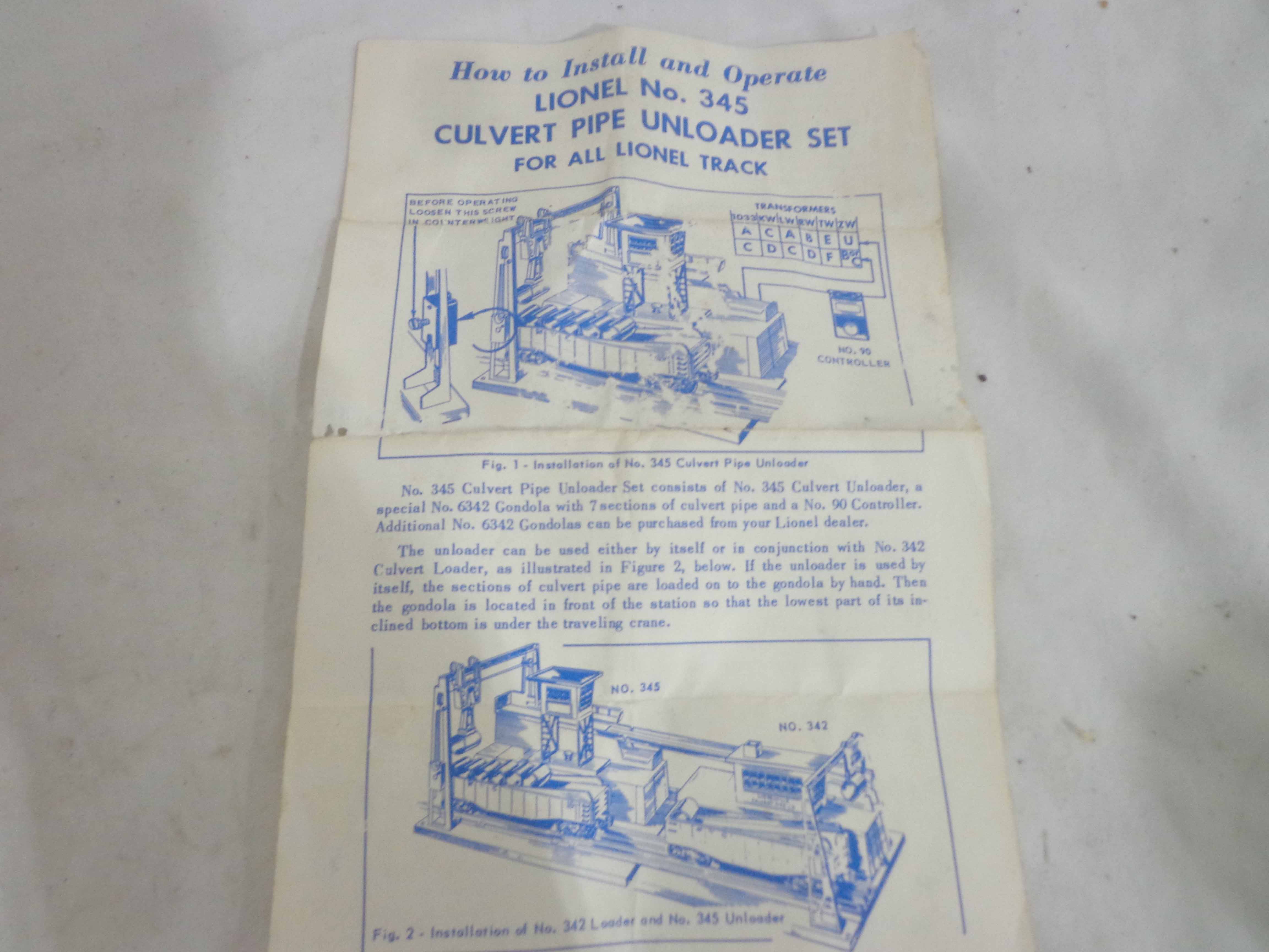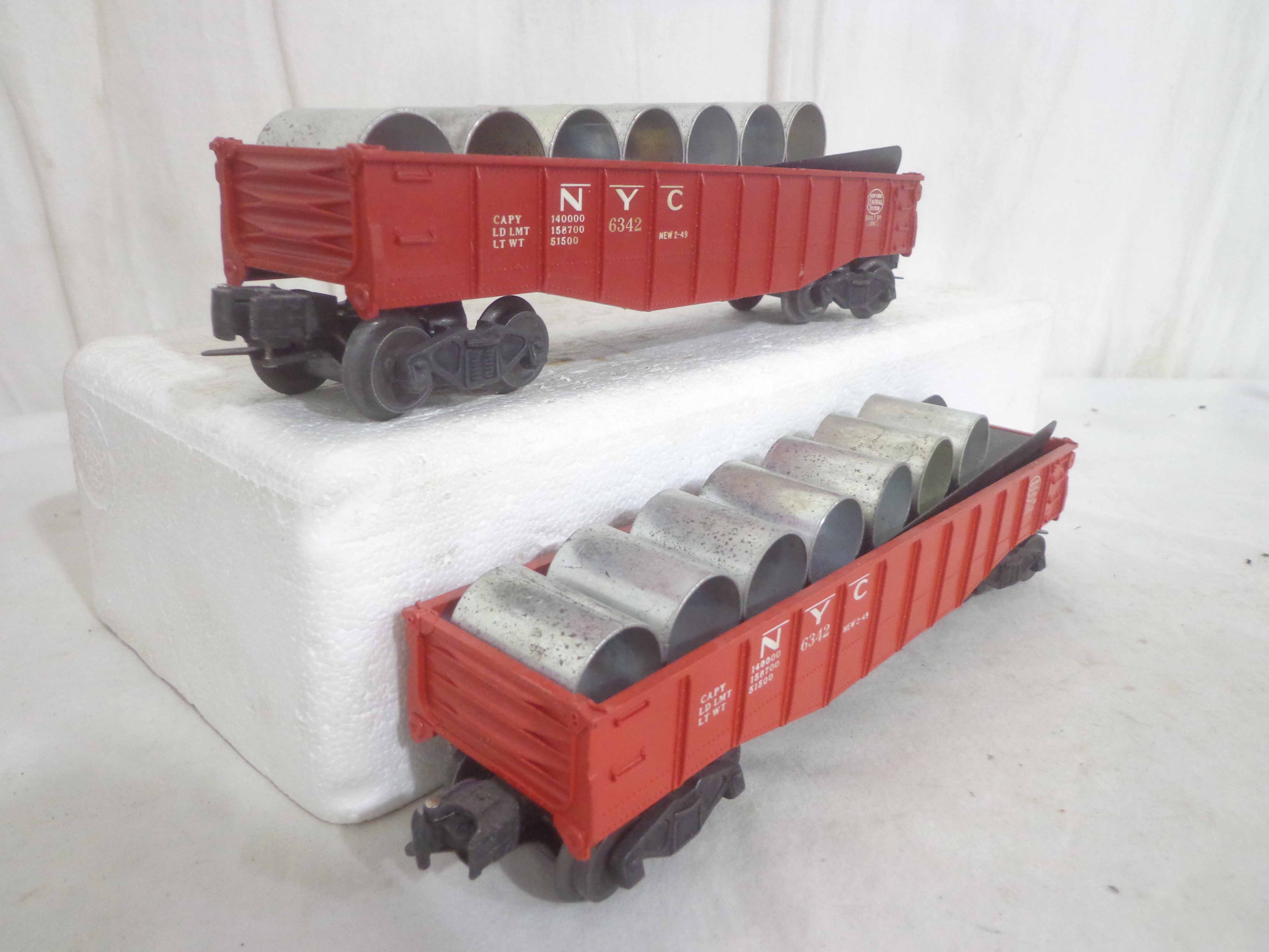 These are the #342 Culvert Pipe Unloader, #345 Culvert Pipe Loader and two extra #6342 Gondolas that Lionel made in the past. No Boxes/instructions. Examine closely; what is pictured is what you will receive. Please add $50.00 for US-48 Shipping and Insurance (more west of the Mississippi).