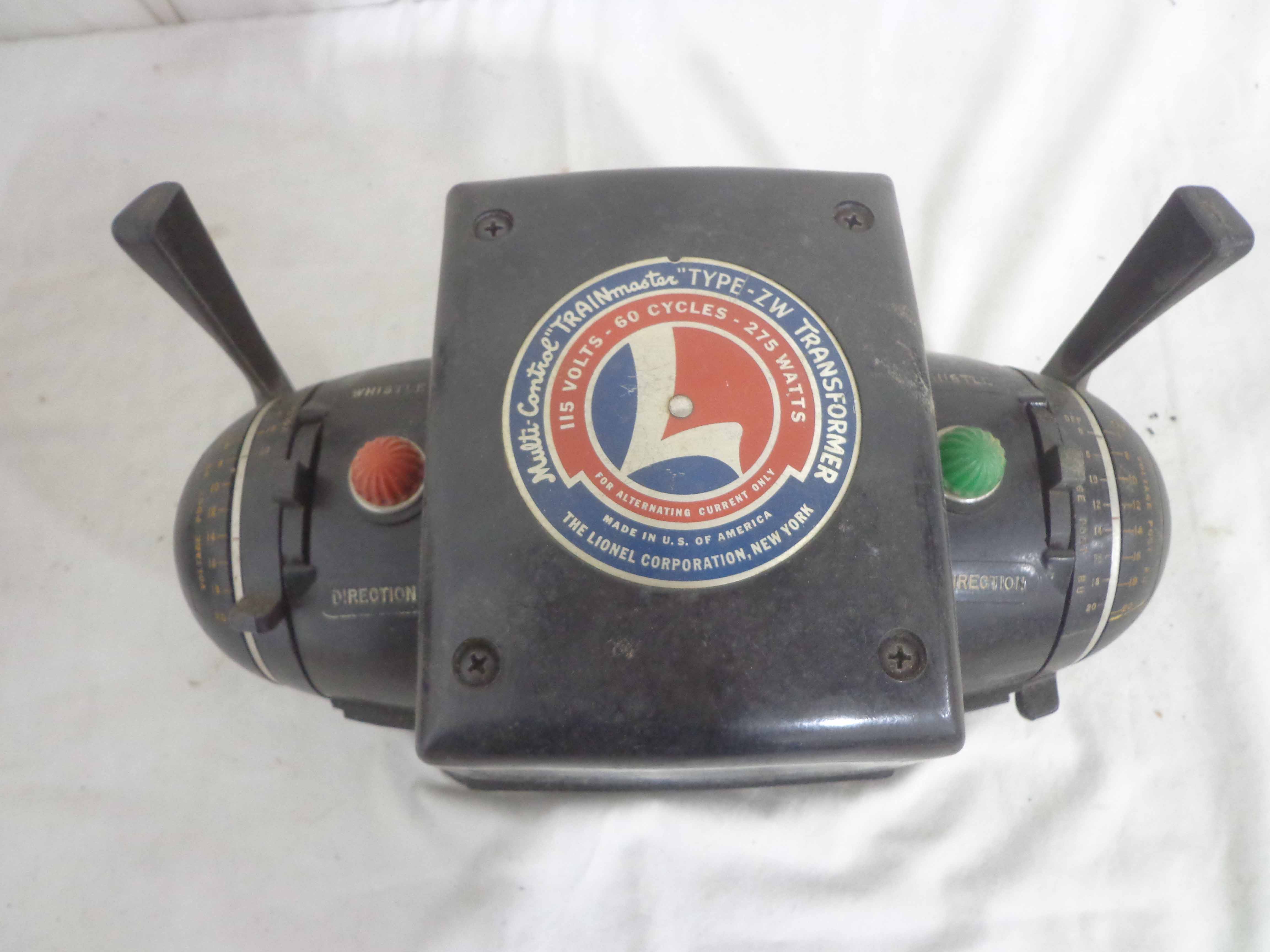 These are two Lionel Type ZW Transformers (both plugs cut off) from the 1950s. No Boxes. Examine closely; what is pictured is what you will receive. Please add $50.00 for US-48 Shipping and Insurance (more west of the Mississippi).