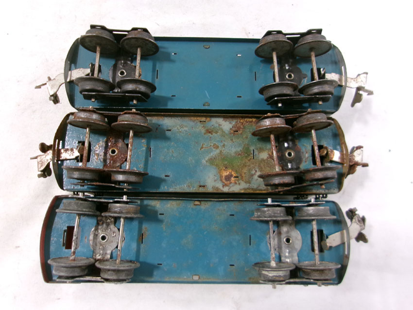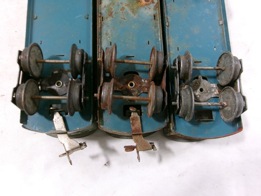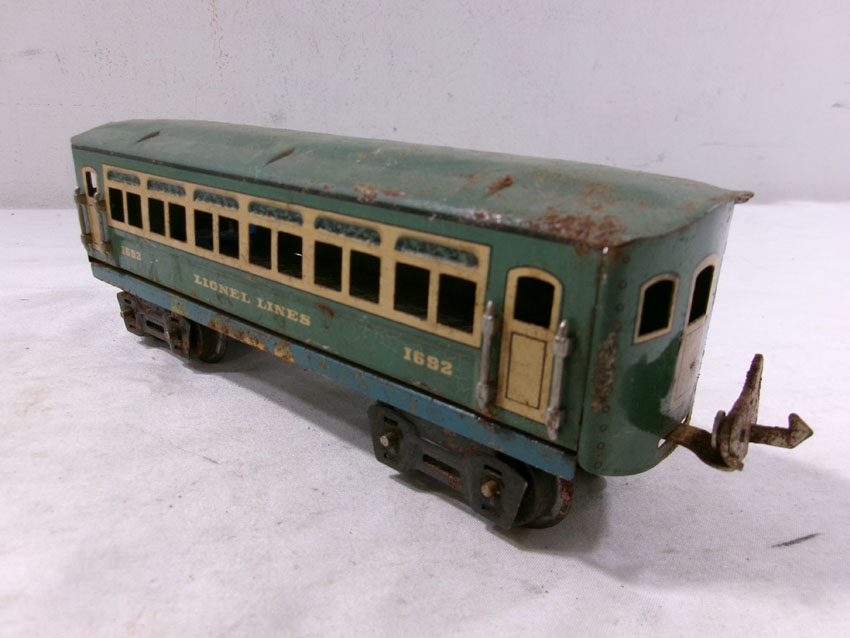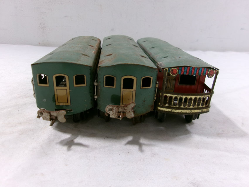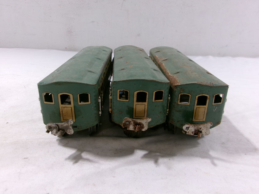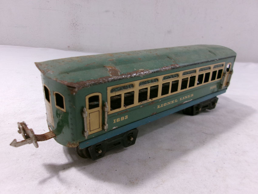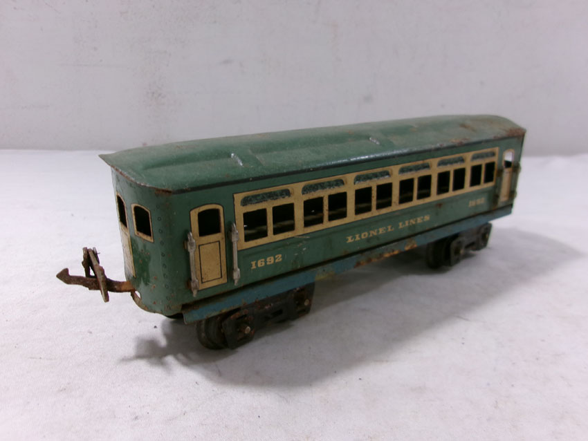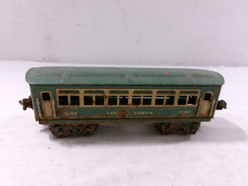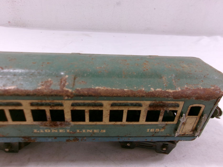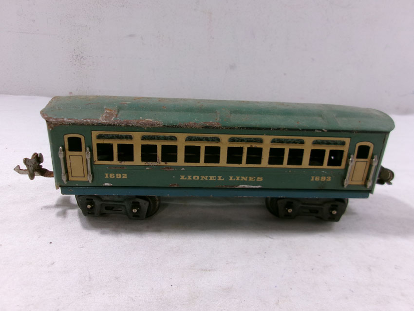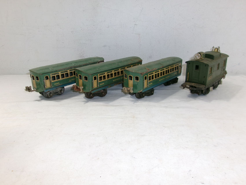 These are the #807 Kitbashed Electric Engine and #1692/1692/1693 Passenger Cars that Lionel made Pre War. No Boxes. Examine very closely; what is pictured is what you will receive. Please add $35.00 for US-48 Shipping and Insurance (more west of the Mississippi). |