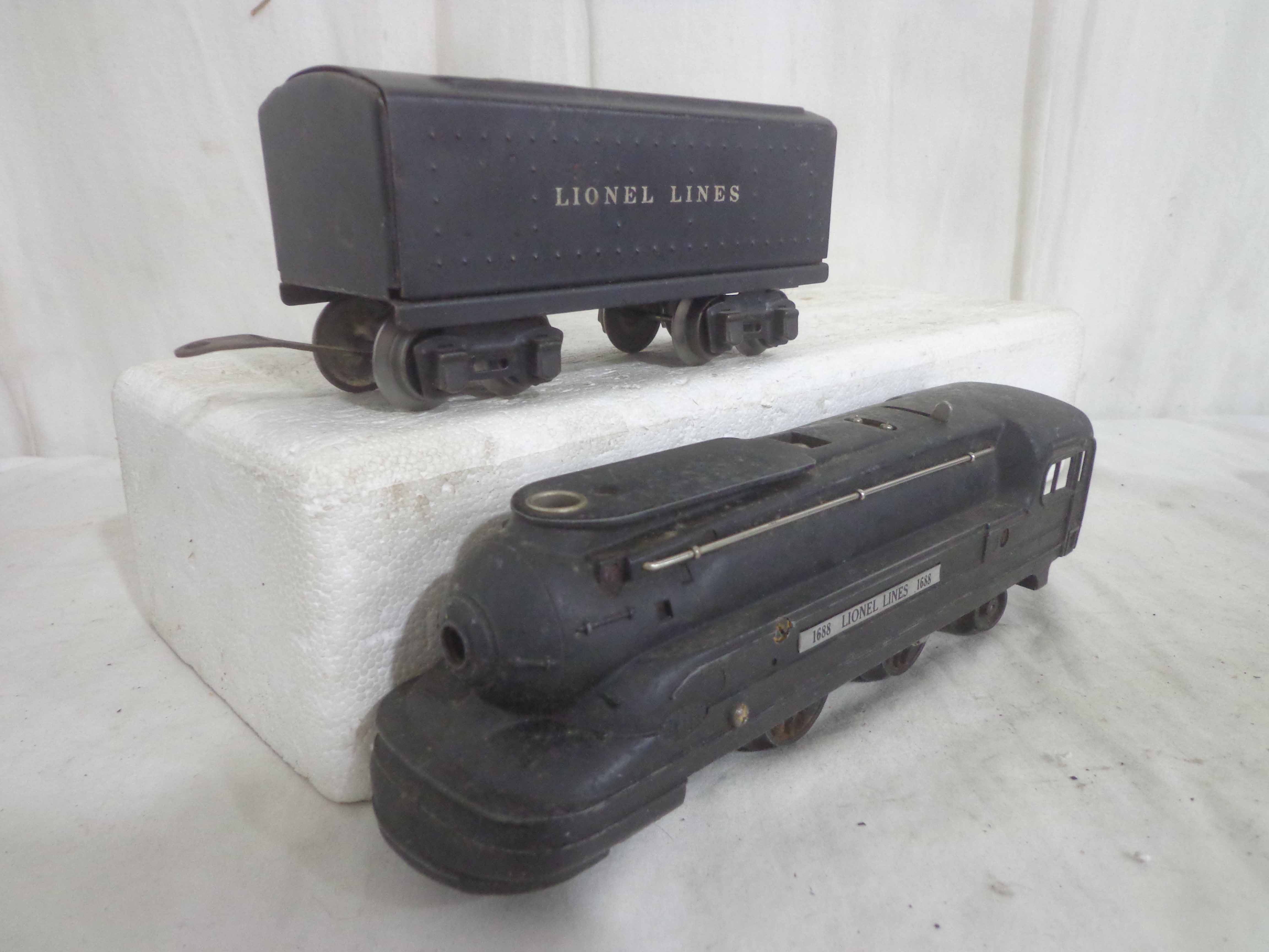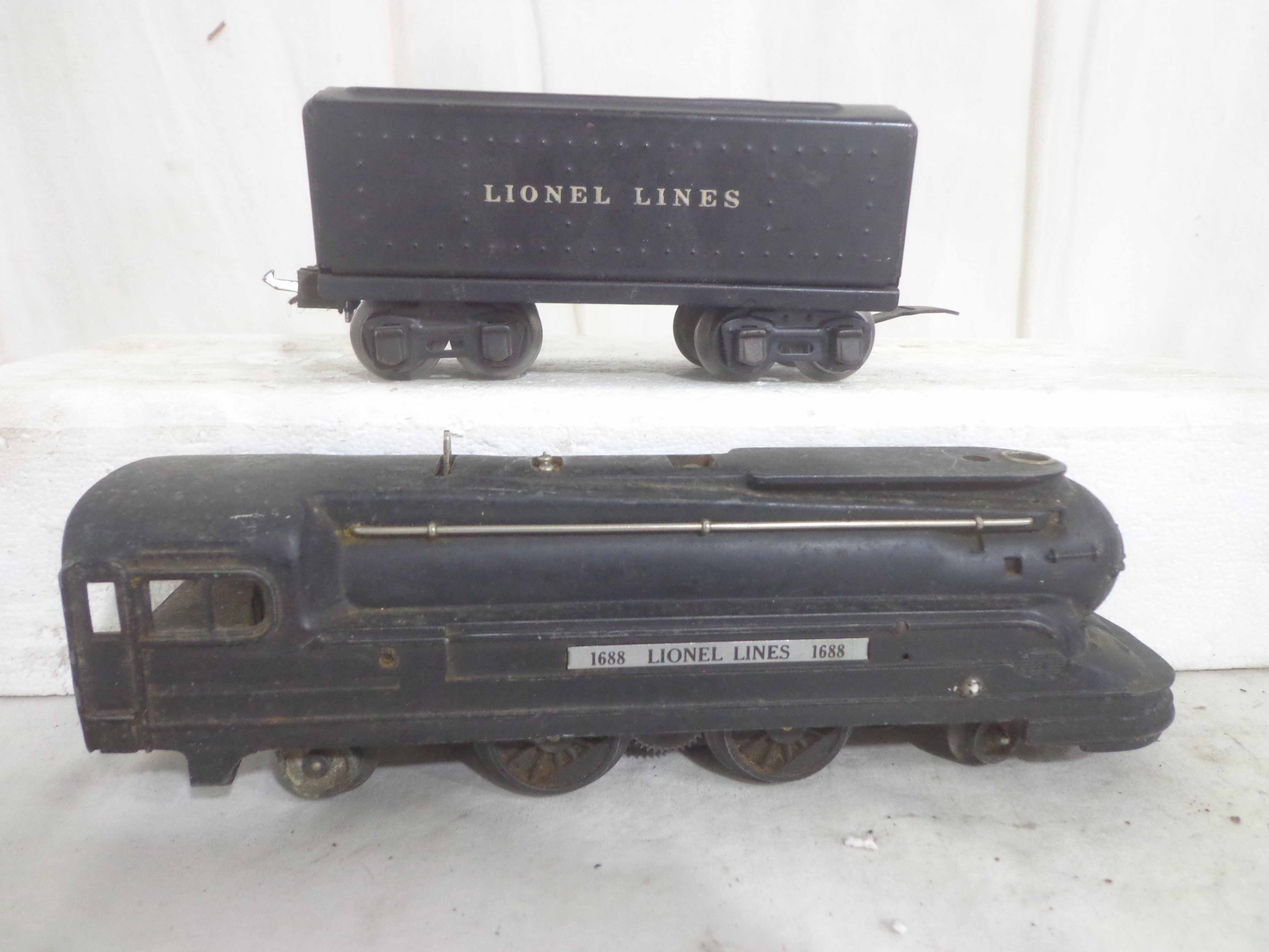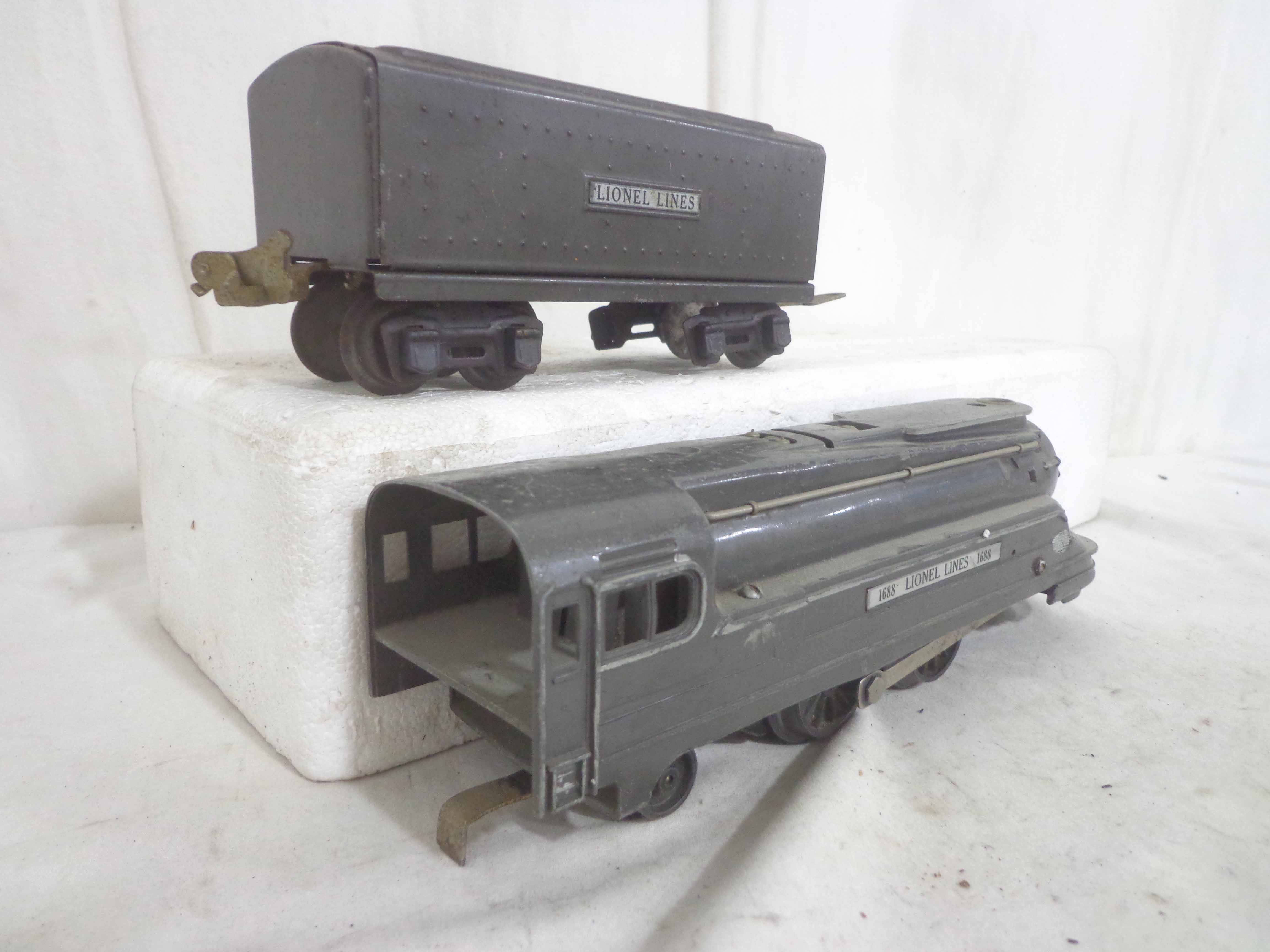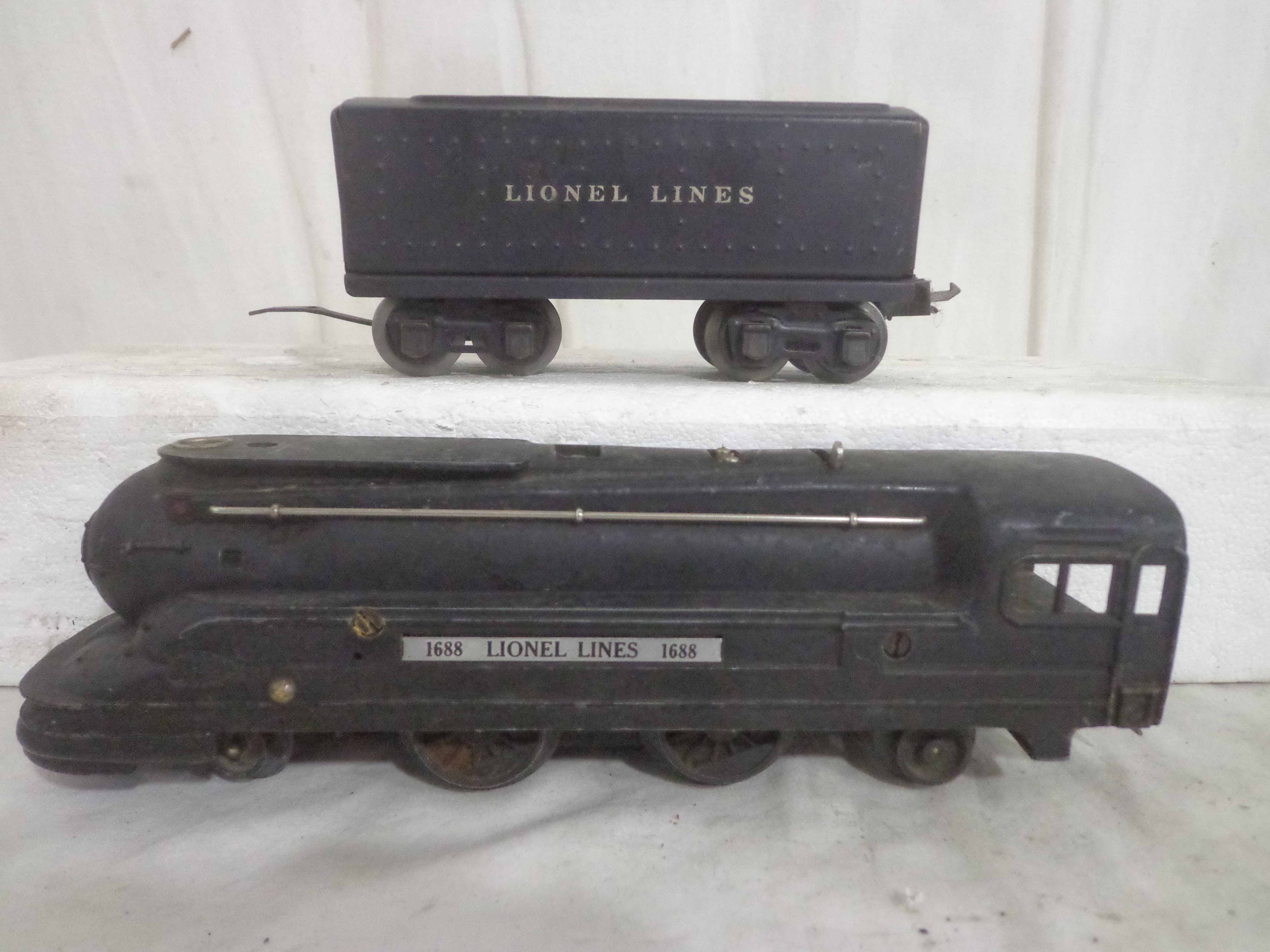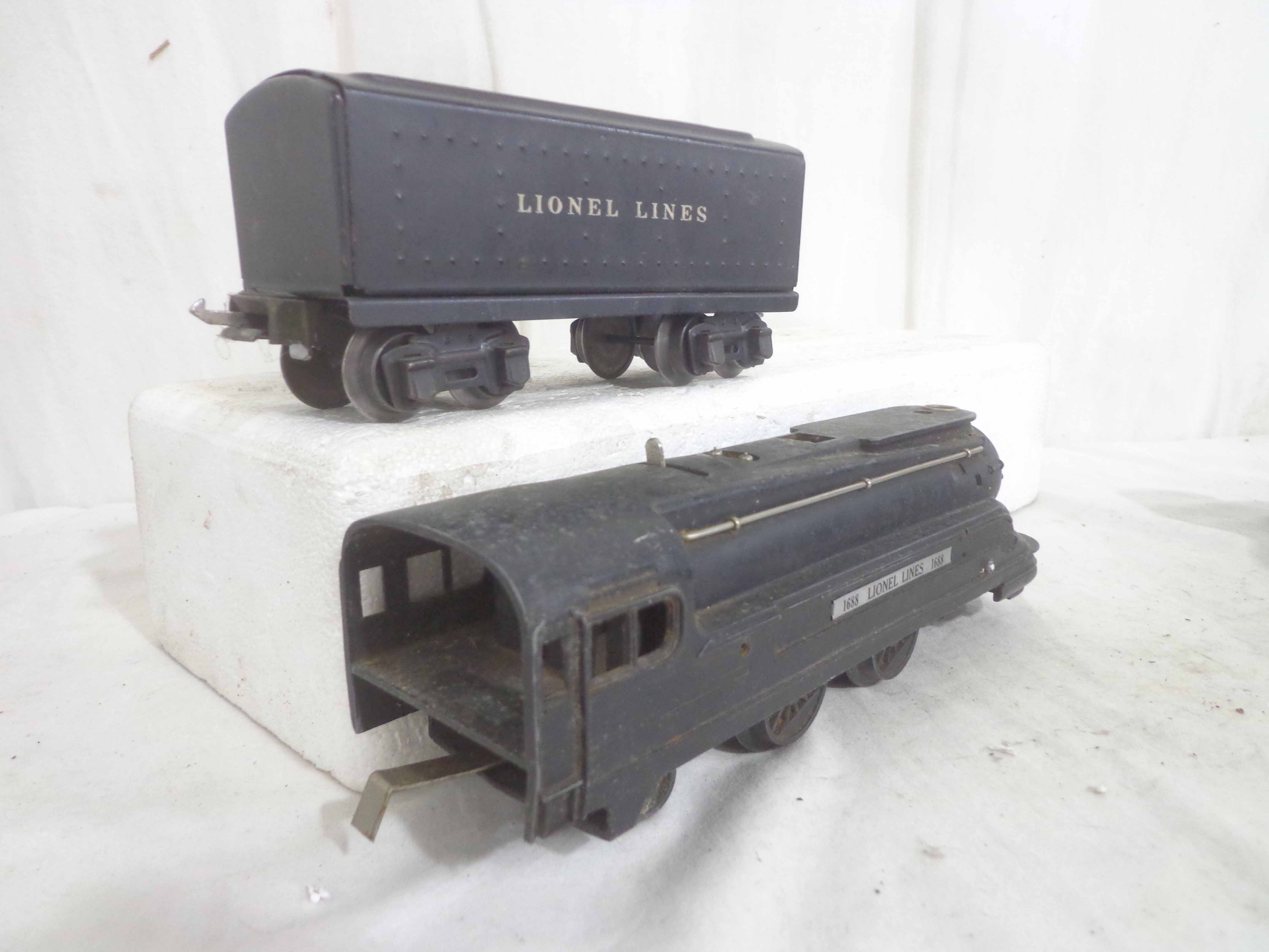 These are the #1668E/2689WX 2-6-2 Engine and Tender, #1668/1689T 2-6-2 Engine and Tender, #1688/1689T 2-4-2 Engine and Tender and #1688/1688E 2-4-2 Engines and Tenders (missing trucks) that Lionel made in the past. No Boxes. Examine closely; what is pictured is what you will receive. Please add $60.00 for US-48 Shipping and Insurance (more west of the Mississippi).