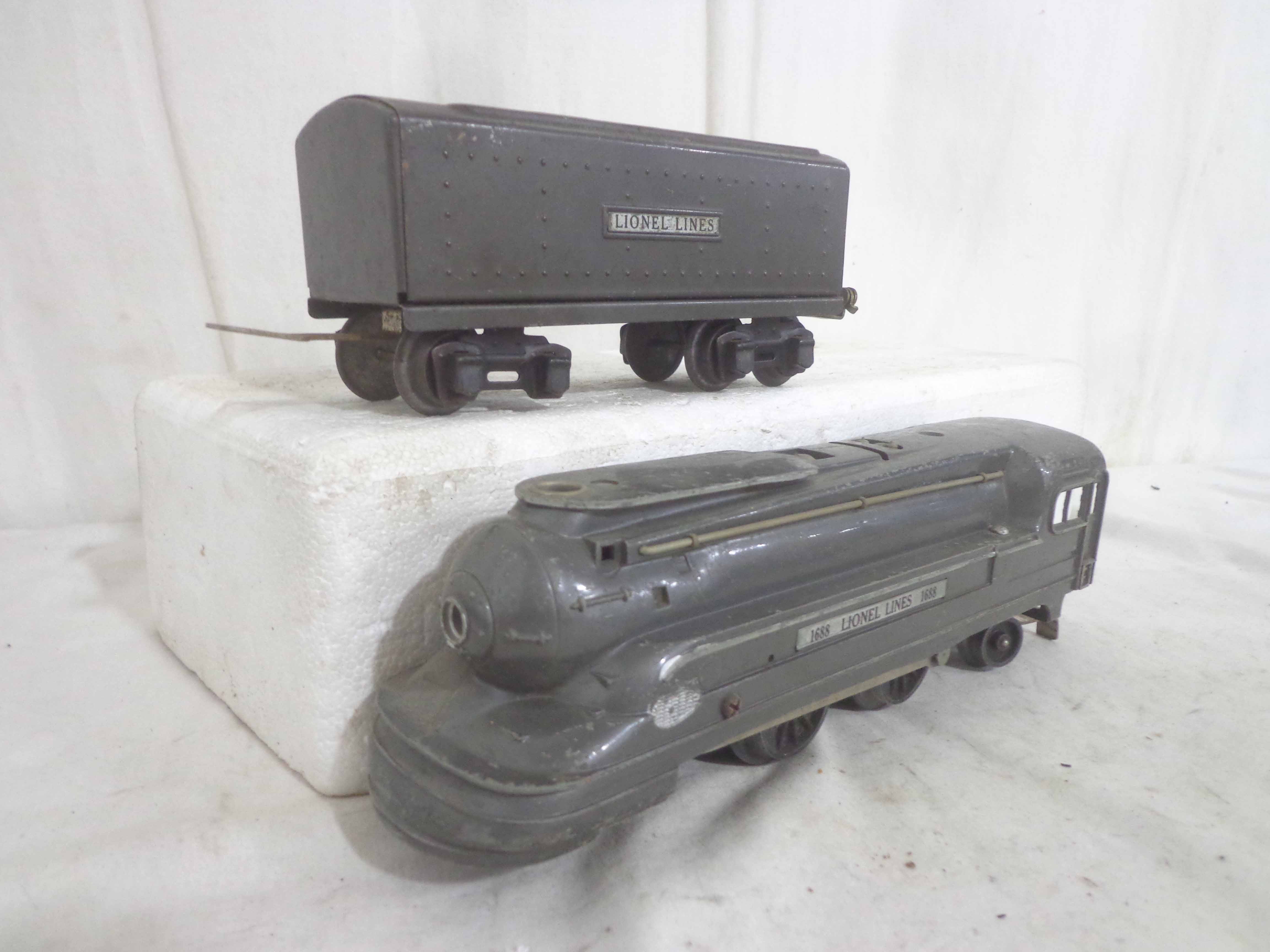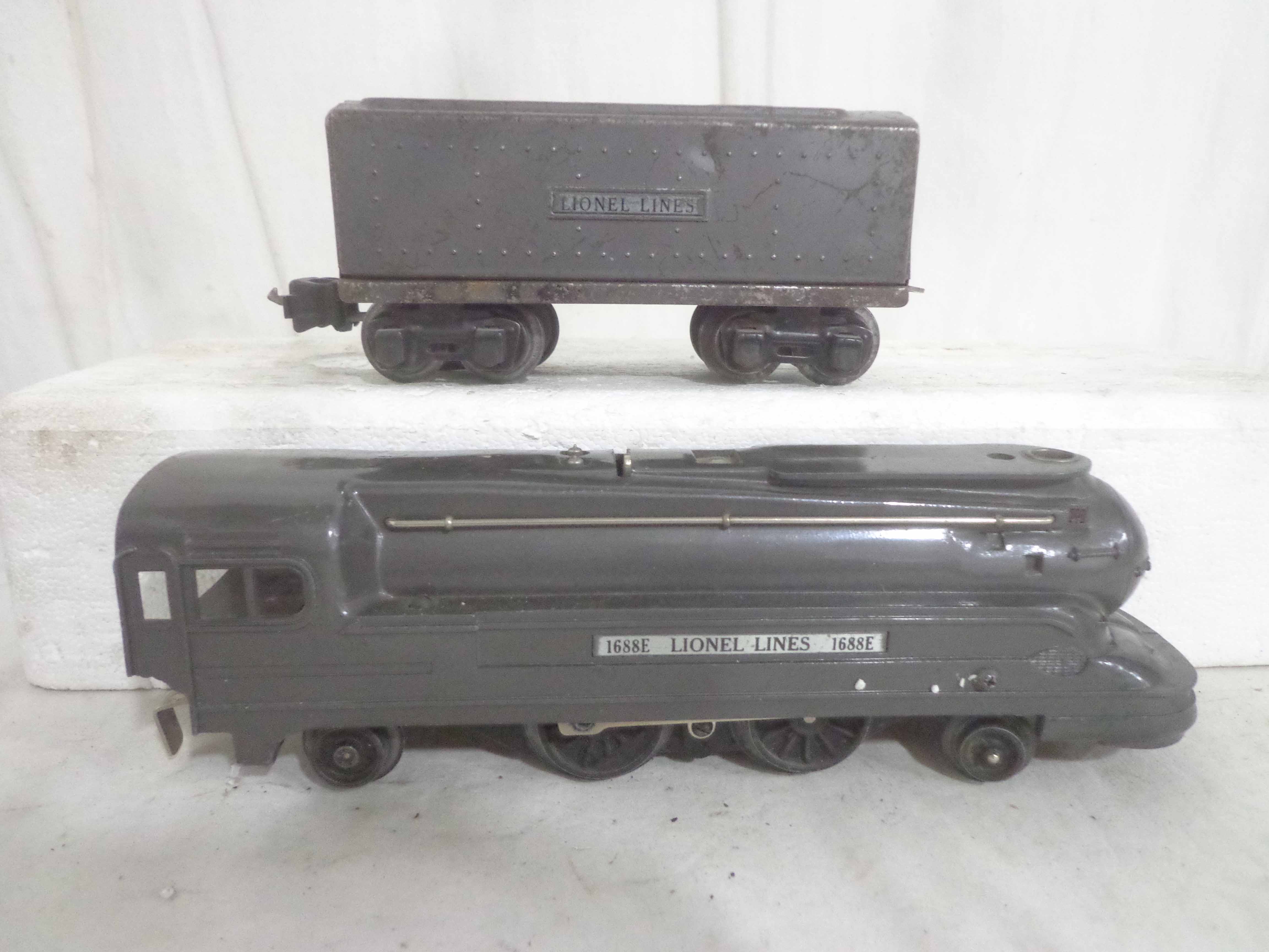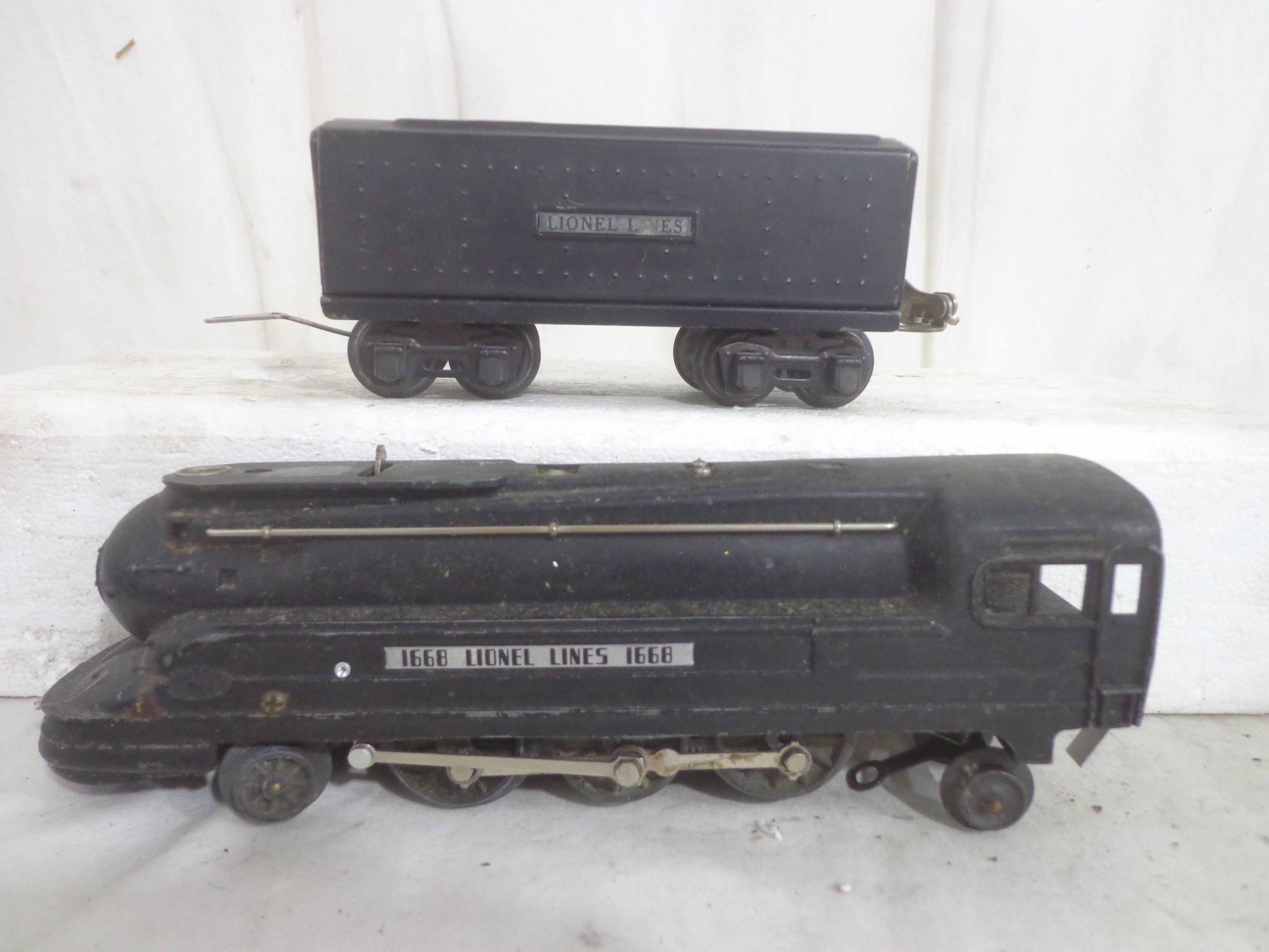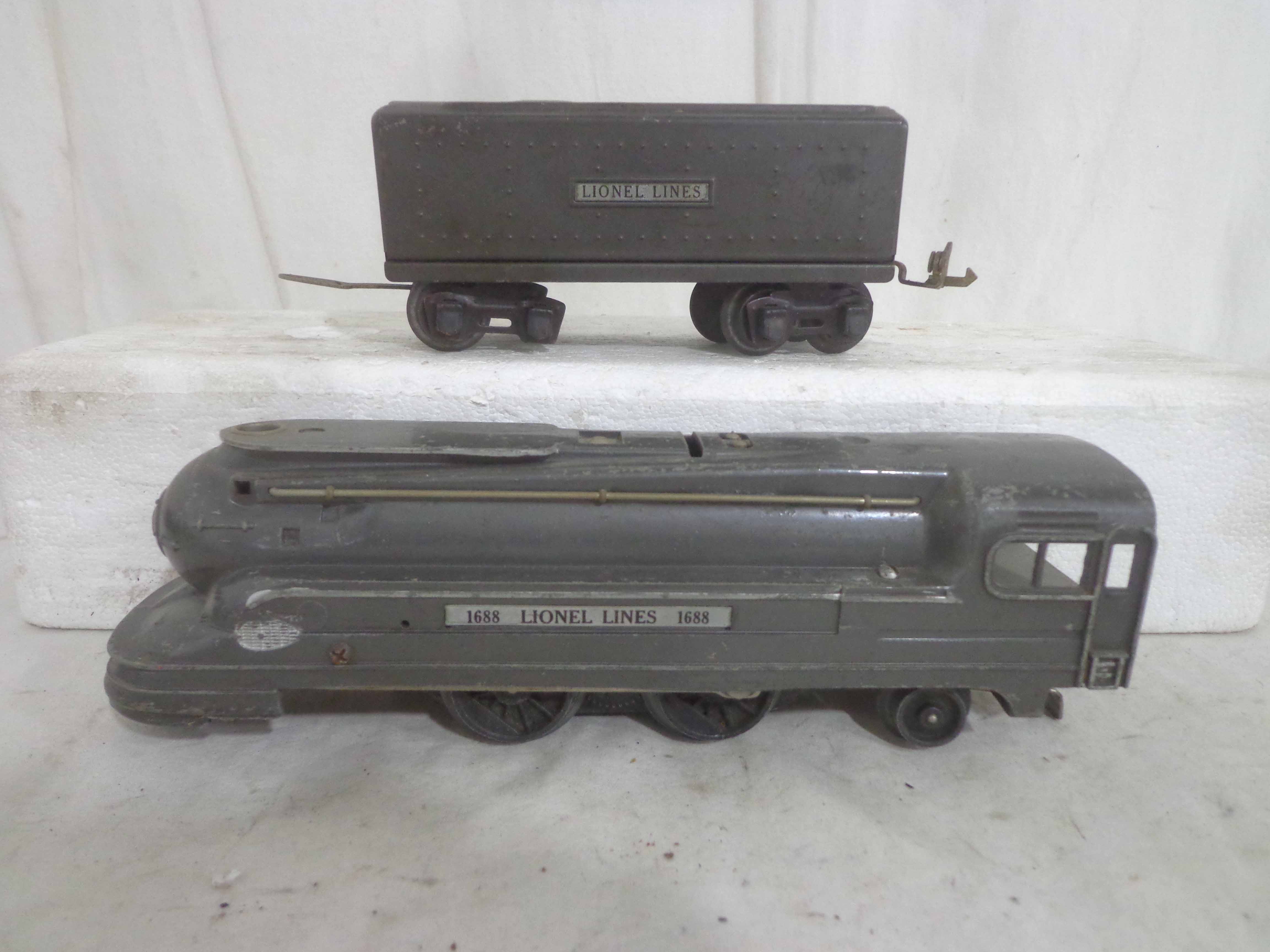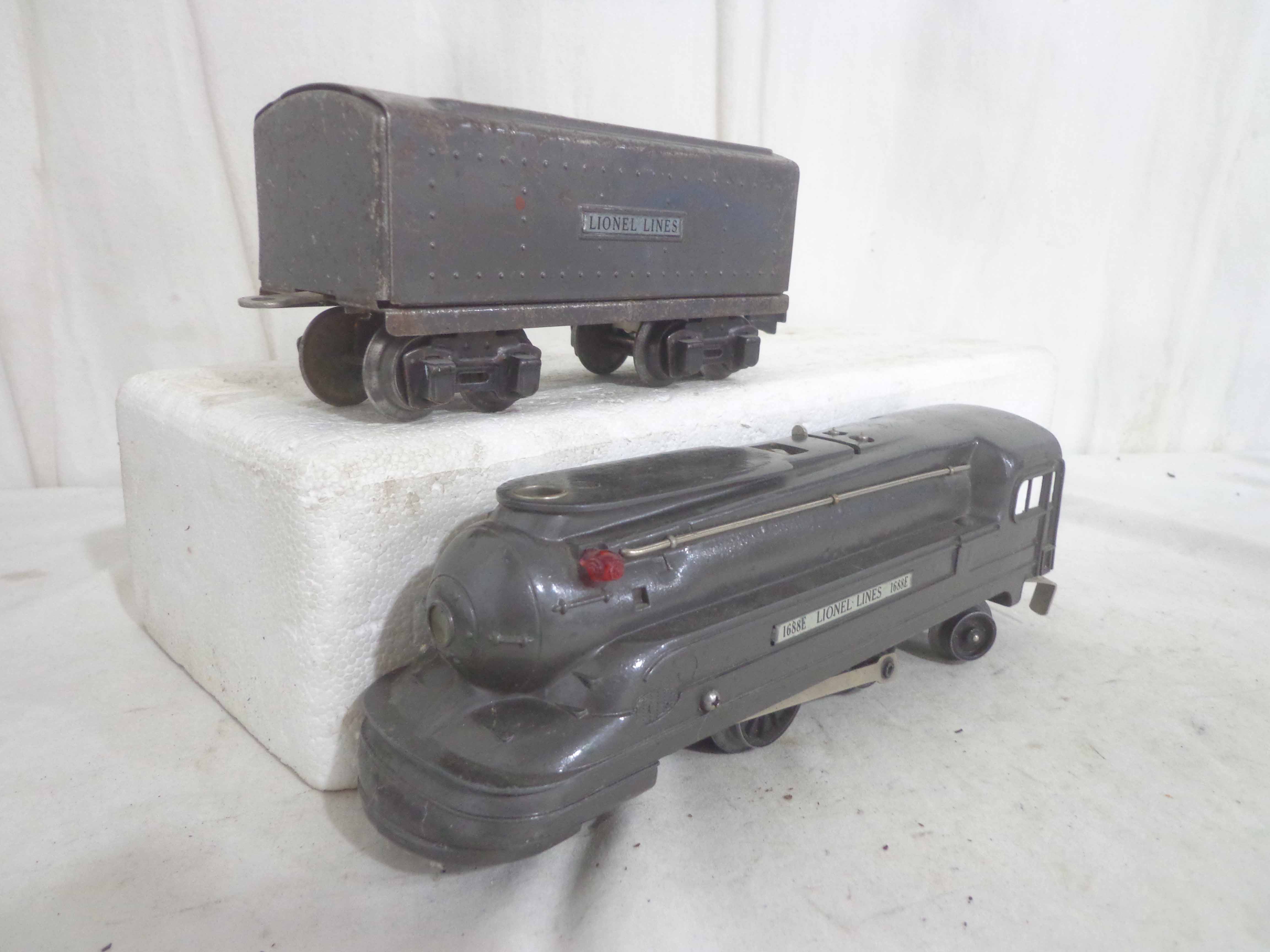 These are the #1668E/2689WX 2-6-2 Engine and Tender, #1668/1689T 2-6-2 Engine and Tender, #1688/1689T 2-4-2 Engine and Tender and #1688/1688E 2-4-2 Engines and Tenders (missing trucks) that Lionel made in the past. No Boxes. Examine closely; what is pictured is what you will receive. Please add $60.00 for US-48 Shipping and Insurance (more west of the Mississippi).