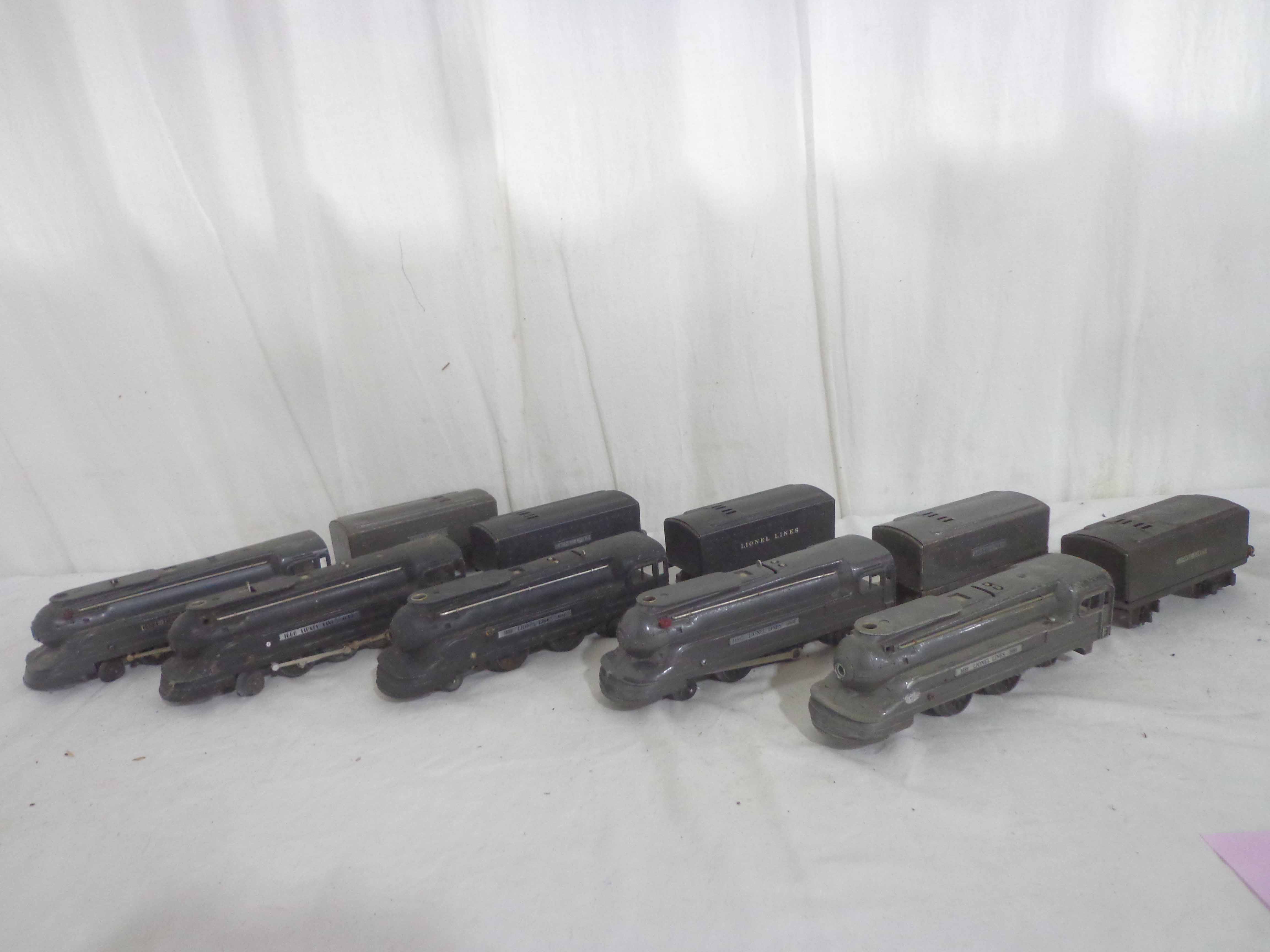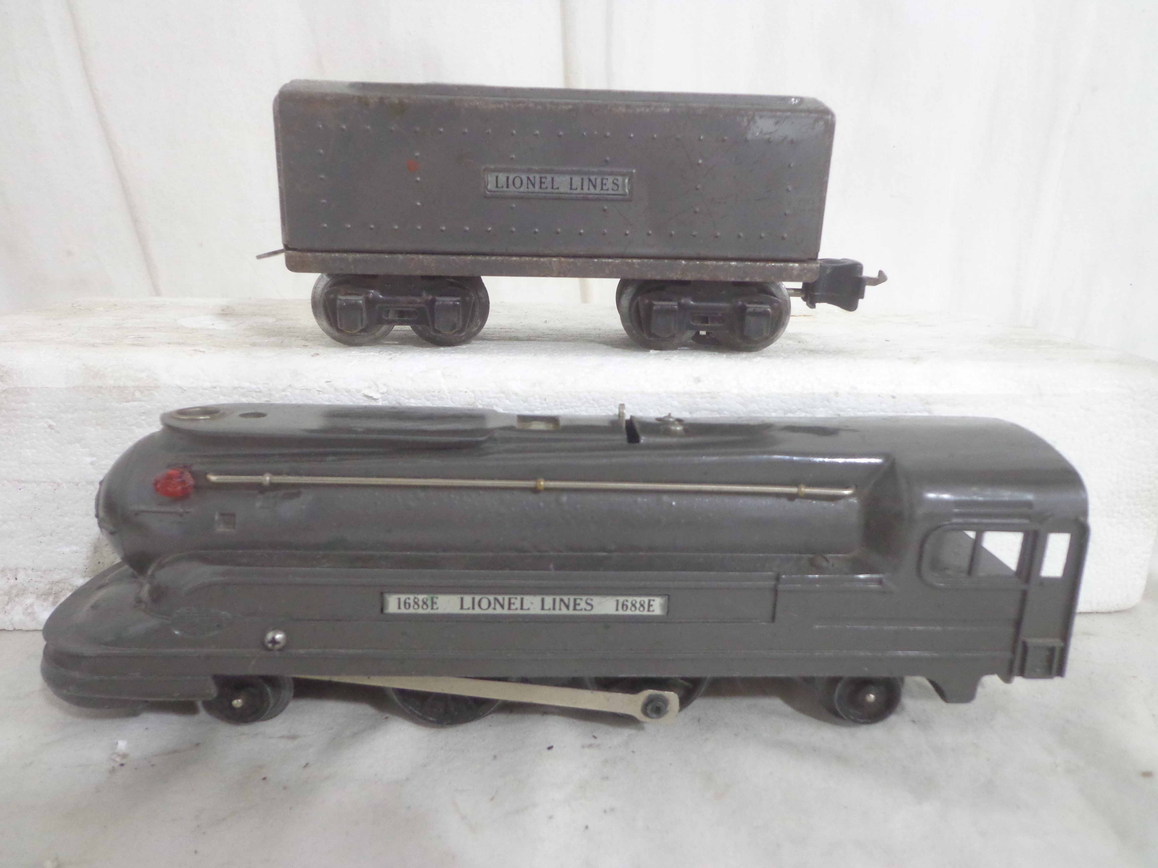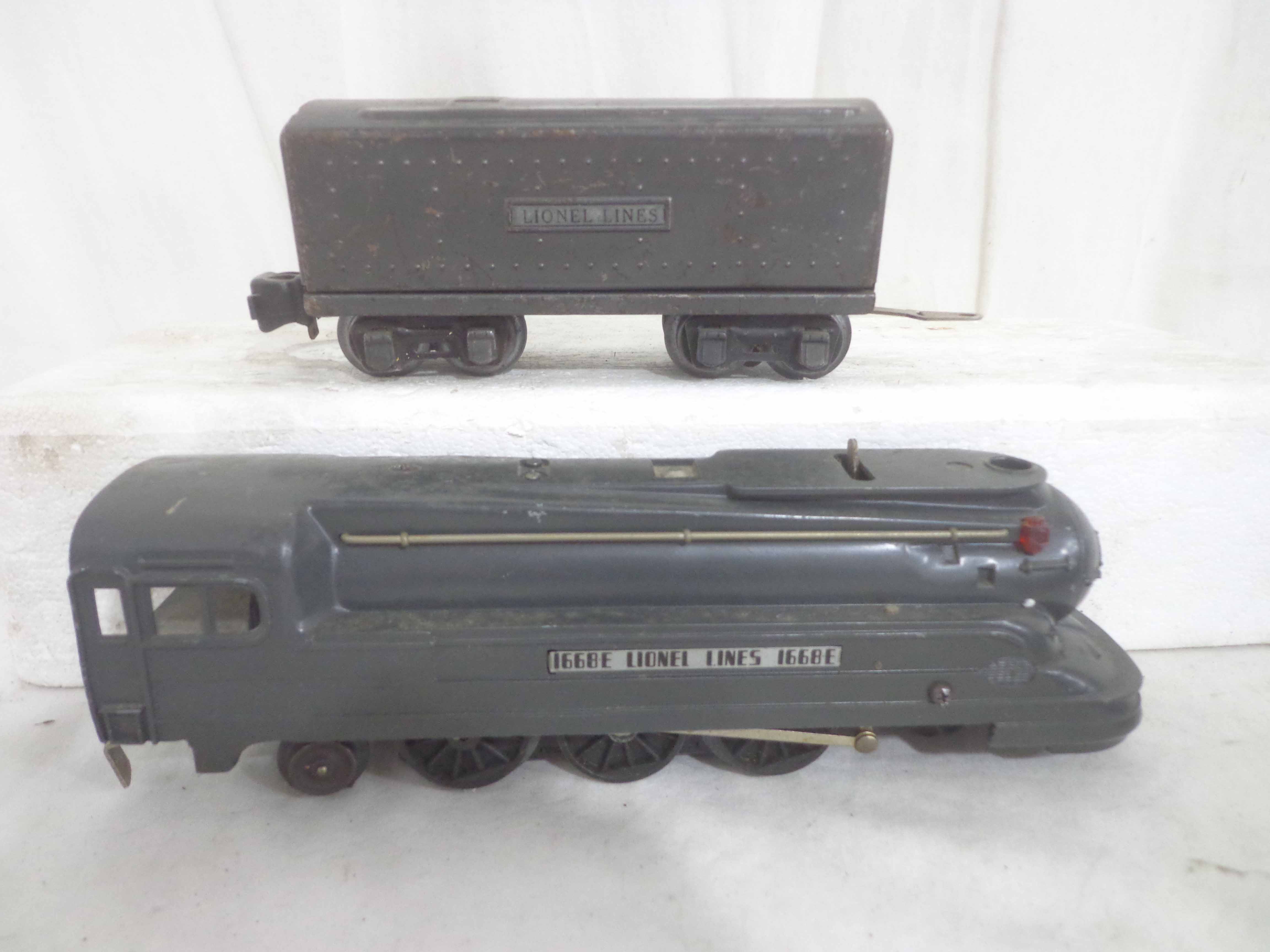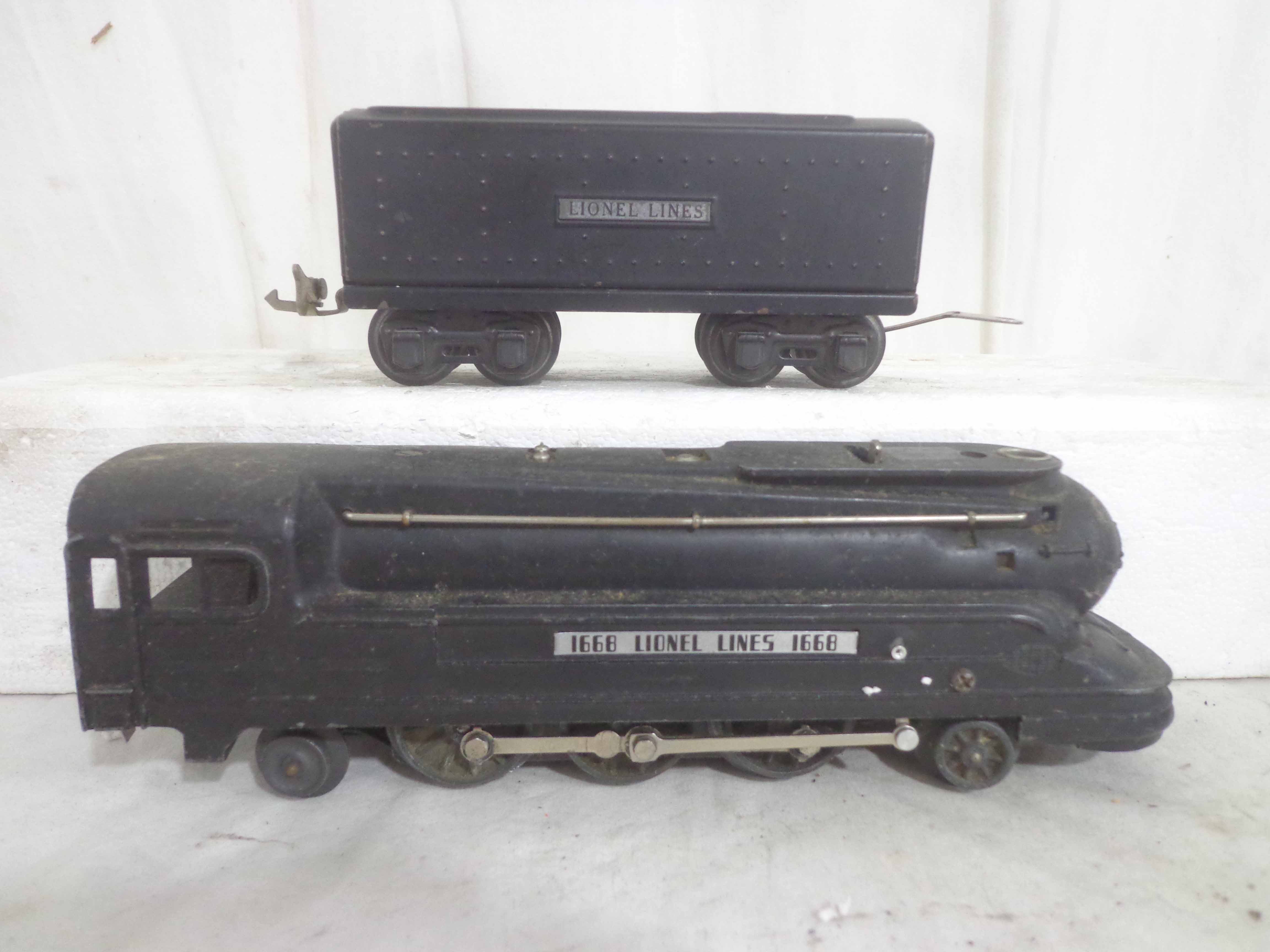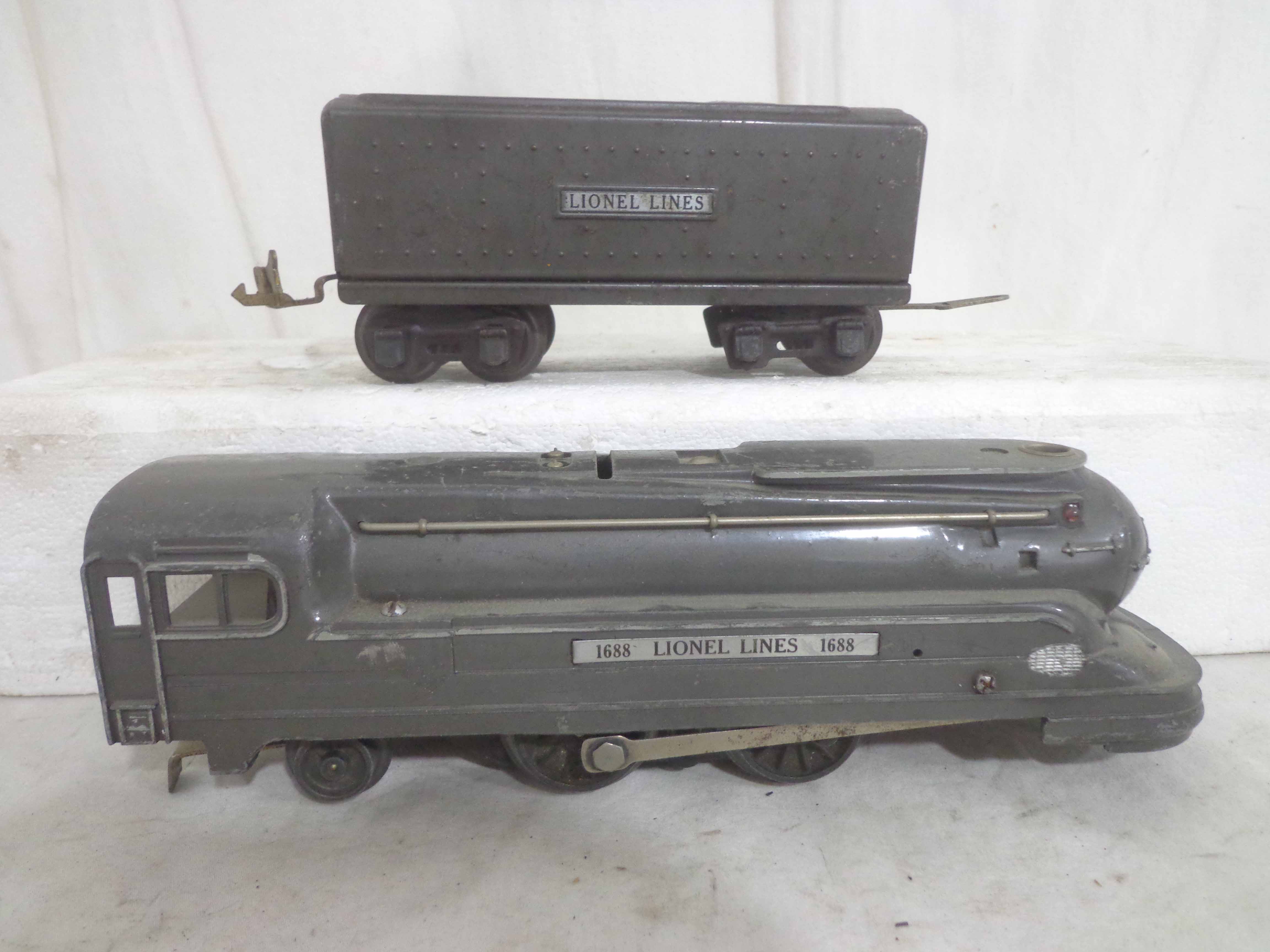 These are the #1668E/2689WX 2-6-2 Engine and Tender, #1668/1689T 2-6-2 Engine and Tender, #1688/1689T 2-4-2 Engine and Tender and #1688/1688E 2-4-2 Engines and Tenders (missing trucks) that Lionel made in the past. No Boxes. Examine closely; what is pictured is what you will receive. Please add $60.00 for US-48 Shipping and Insurance (more west of the Mississippi).