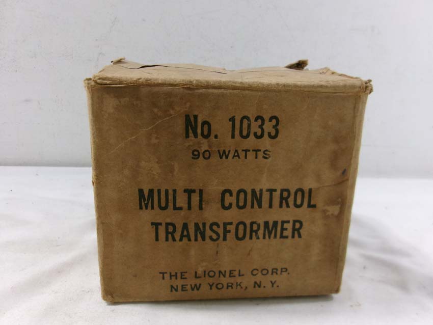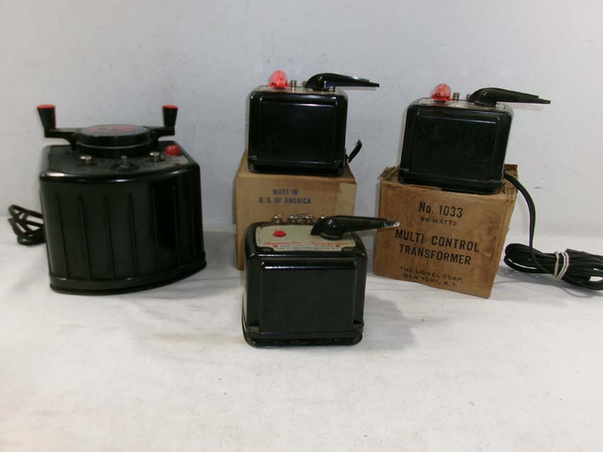 These are two Lionel #1033 Transformers (90 watts), #1034 Transformer (75 watts) and KW Transformer (190 watts). Two Original Boxes. Examine closely; what is pictured is what you will receive. Please add $50.00 for US-48 Shipping and Insurance (more west of the Mississippi).