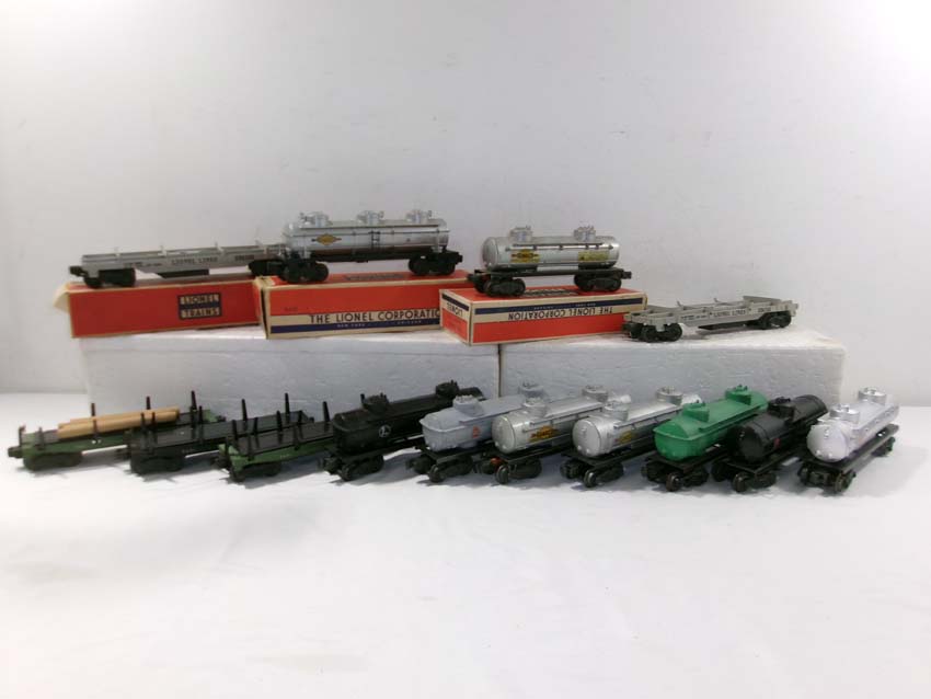 These are fourteen Assorted Freight Cars (five operating) that Lionel made in the past. Three Original Boxes. Examine closely; what is pictured is what you will receive. Please add $50.00 for US-48 Shipping and Insurance (more west of the Mississippi). |