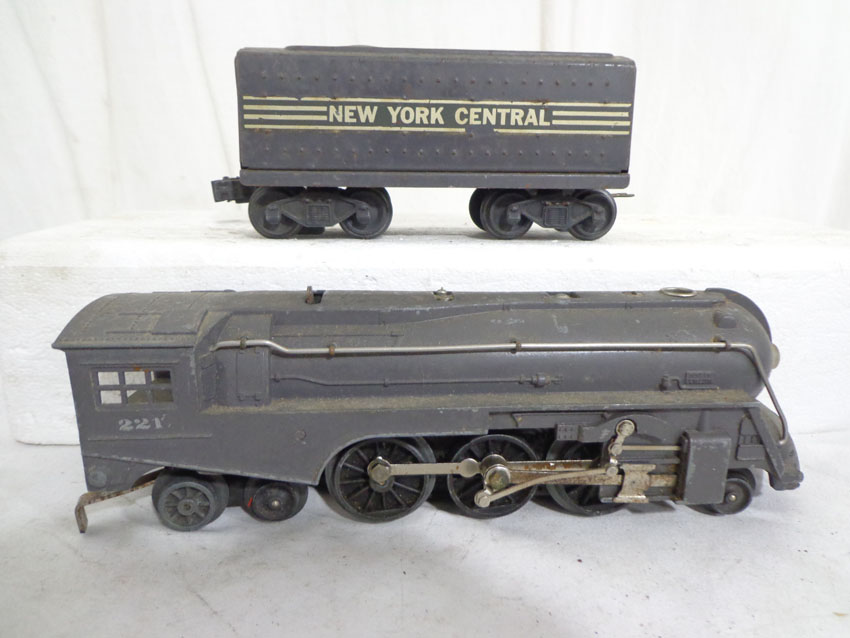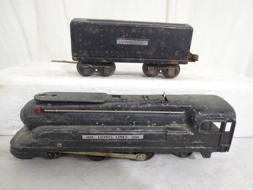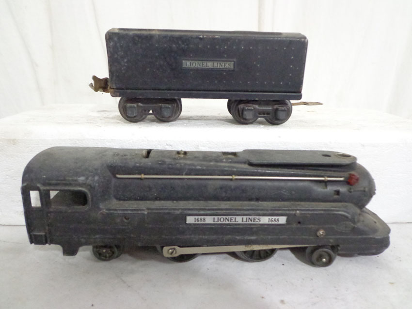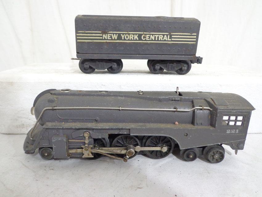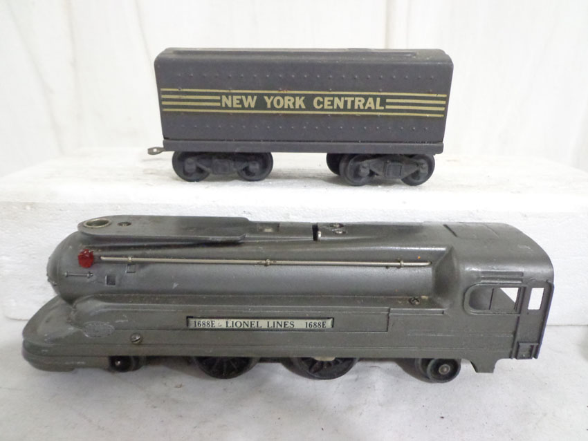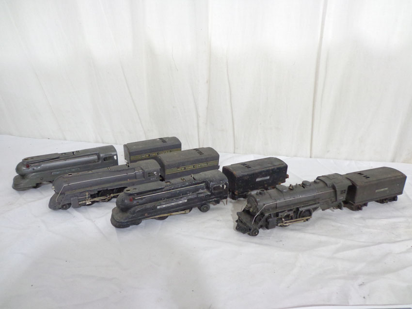 These are the #229/2689TX 2-4 Engine and Tender, #1688/1689T 2-4-2 Engine and Tender, #1688/221T New York Central 2-4-2 Engine and Tender and #221/221T New York Central 2-4-2 Engine and Tender (missing wheels) that Lionel made Pre War. No Boxes. Examine very closely; what is pictured is what you will receive. Please add $60.00 for US-48 Shipping and Insurance (more west of the Mississippi). |