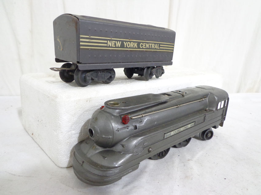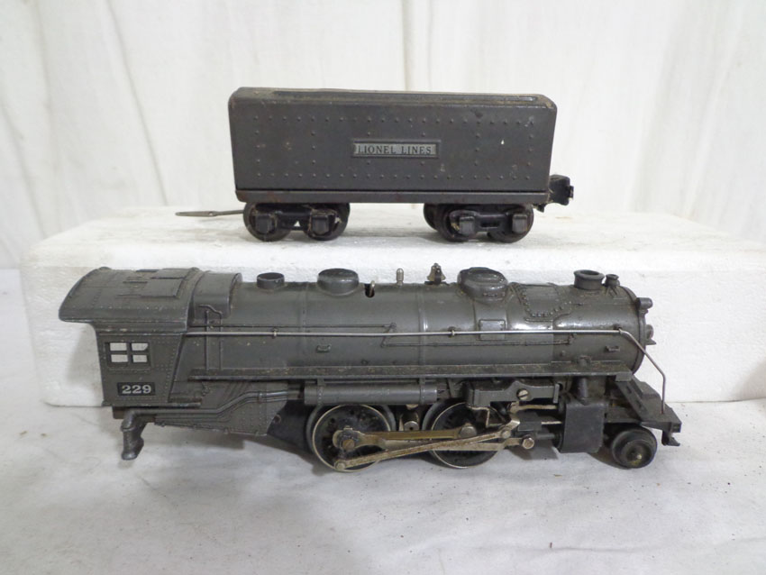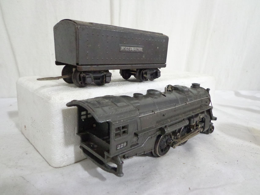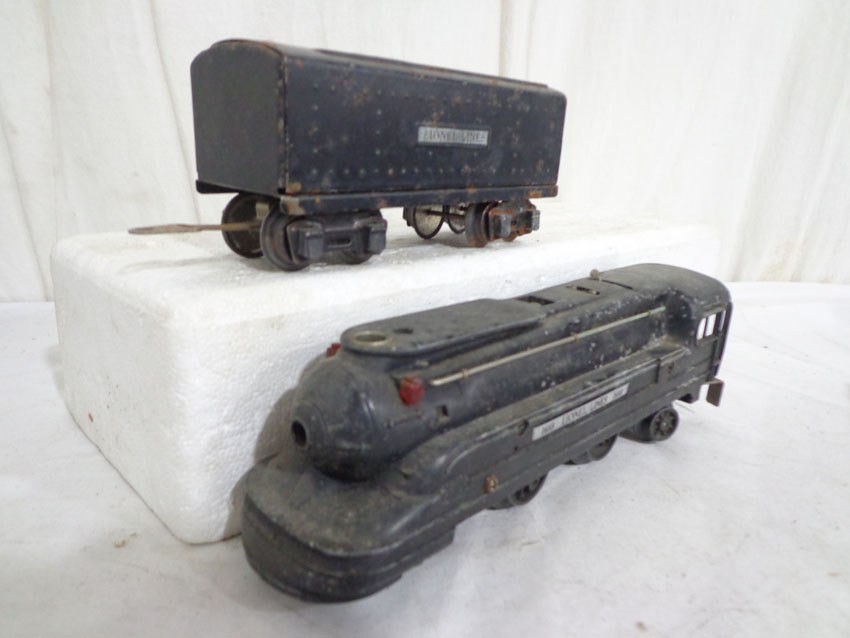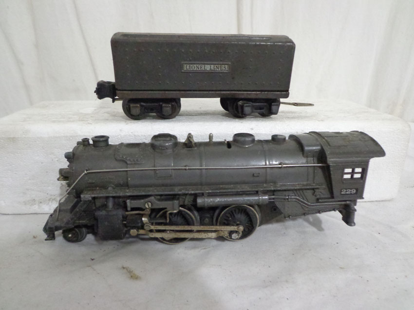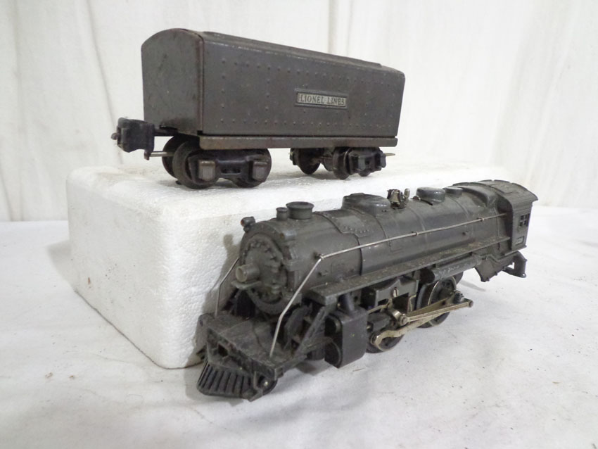 These are the #229/2689TX 2-4 Engine and Tender, #1688/1689T 2-4-2 Engine and Tender, #1688/221T New York Central 2-4-2 Engine and Tender and #221/221T New York Central 2-4-2 Engine and Tender (missing wheels) that Lionel made Pre War. No Boxes. Examine very closely; what is pictured is what you will receive. Please add $60.00 for US-48 Shipping and Insurance (more west of the Mississippi). |