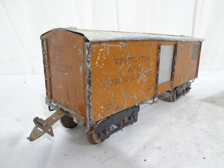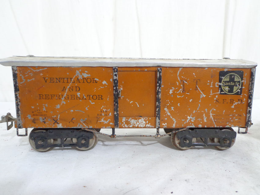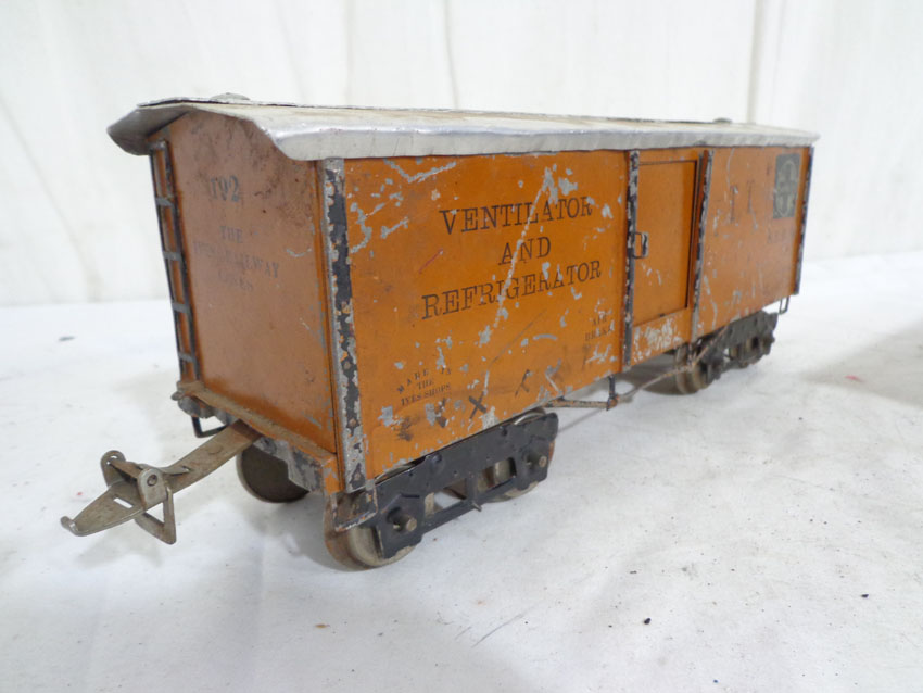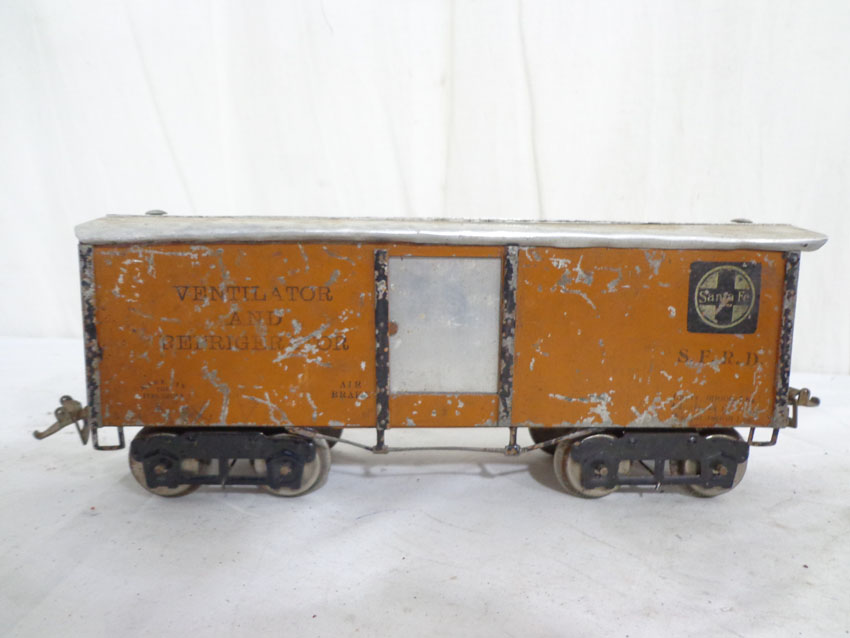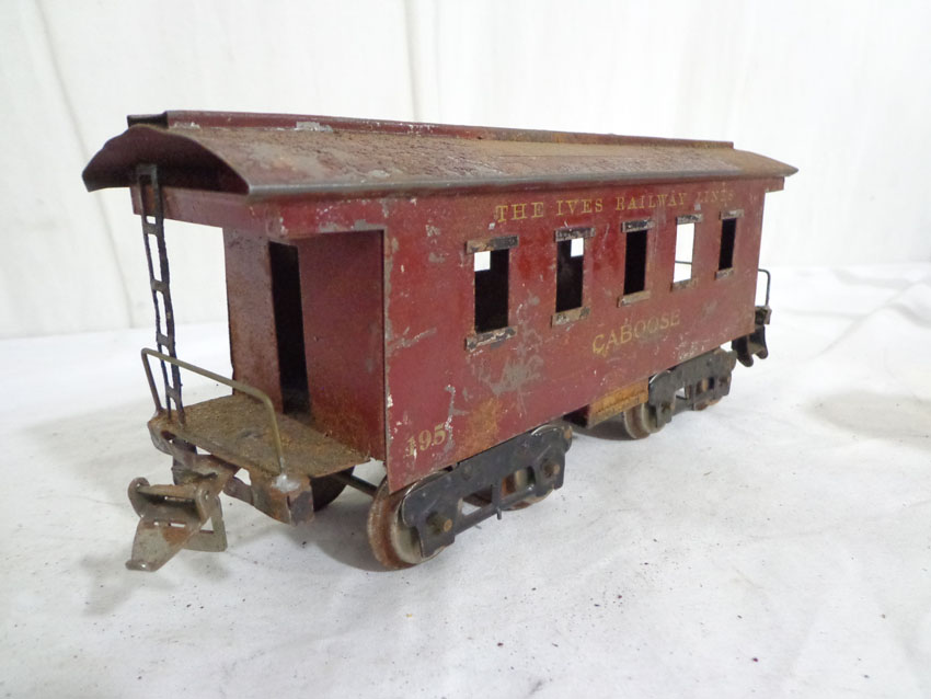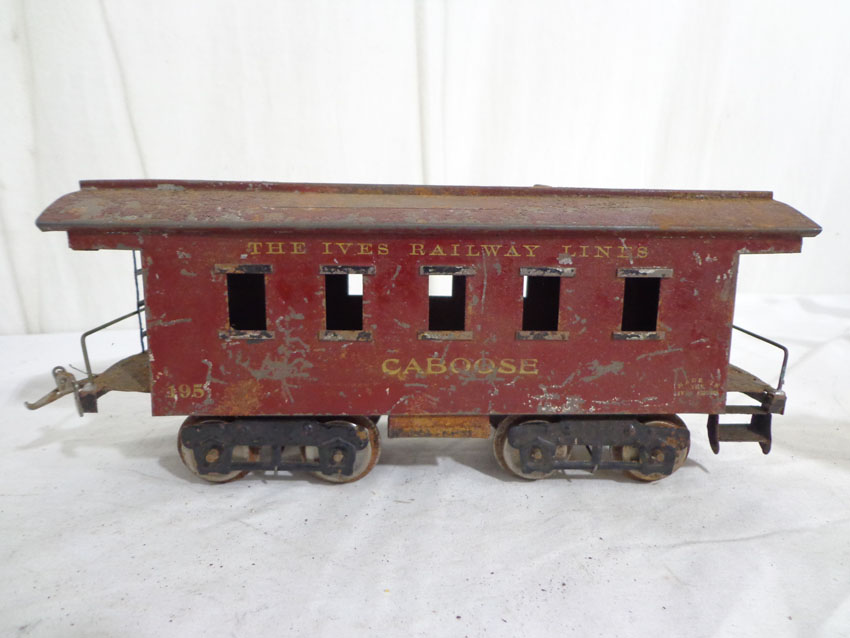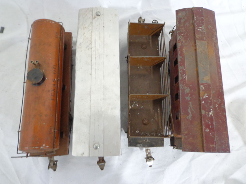 These are the Standard Gauge #190 Texas Oil Tank Car, #191 Pennsylvania Coke Car, #192 Santa Fe Box Car and #495 Ives Caboose that Ives made in the 1920s. Missing Pieces. No Boxes. Examine closely; what is pictured is what you will receive. Please add $50.00 for US-48 Shipping and Insurance (more west of the Mississippi). |