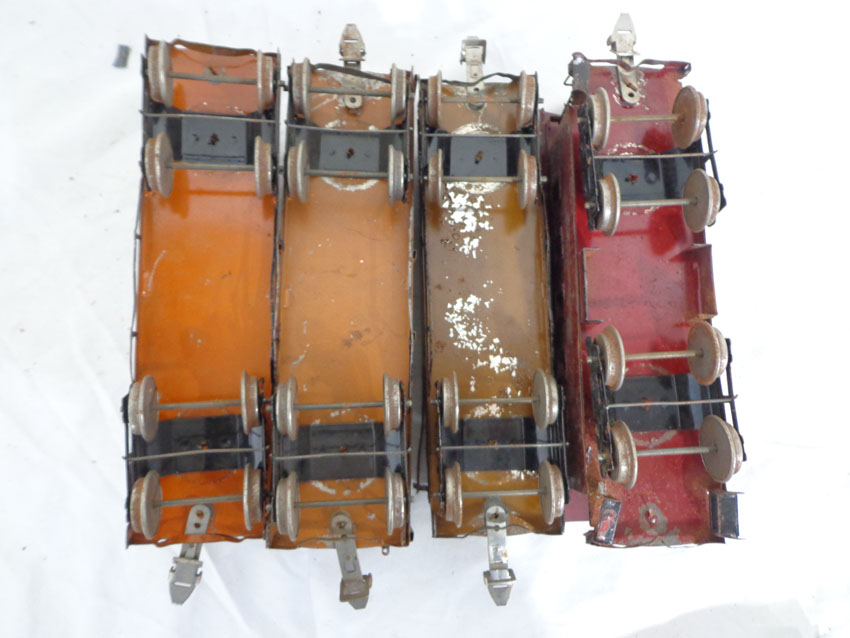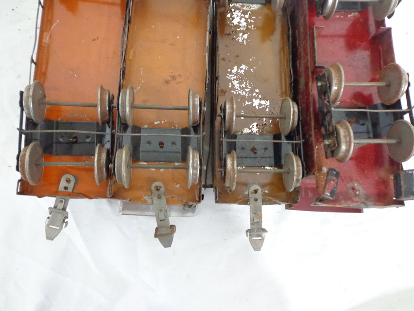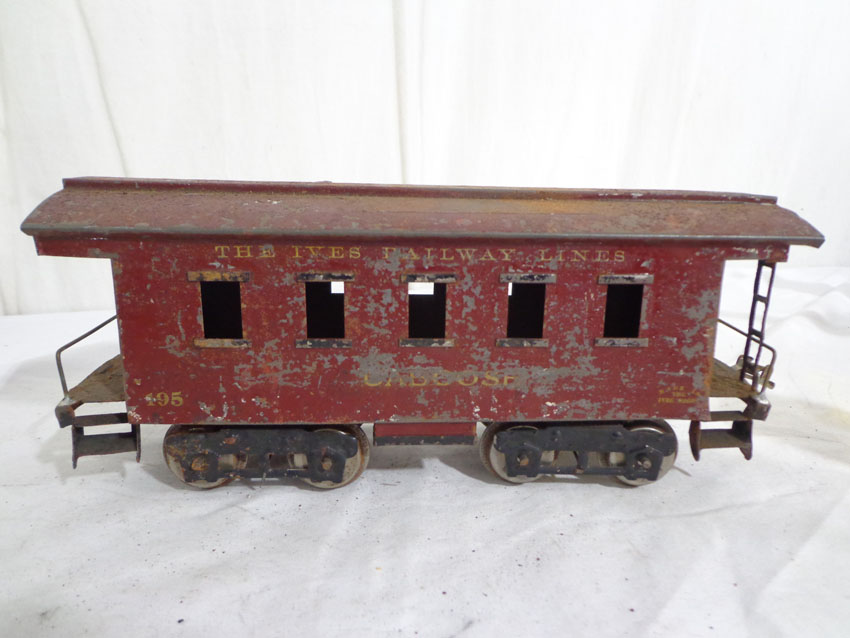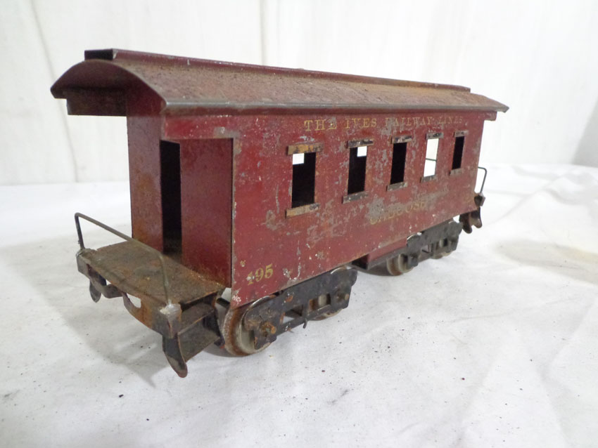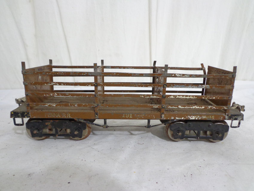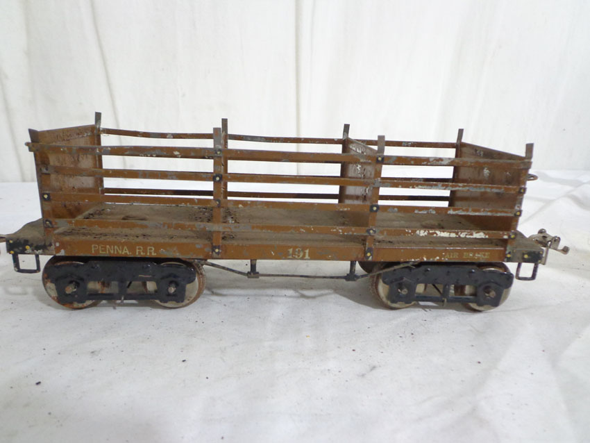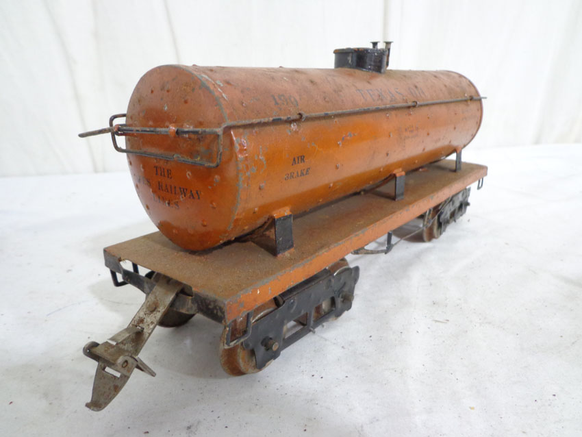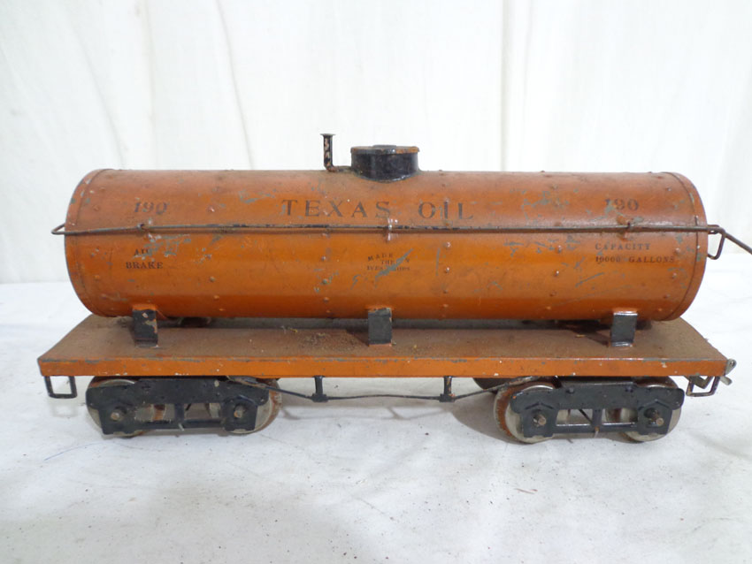 These are the Standard Gauge #190 Texas Oil Tank Car, #191 Pennsylvania Coke Car, #192 Santa Fe Box Car and #495 Ives Caboose that Ives made in the 1920s. Missing Pieces. No Boxes. Examine closely; what is pictured is what you will receive. Please add $50.00 for US-48 Shipping and Insurance (more west of the Mississippi). |