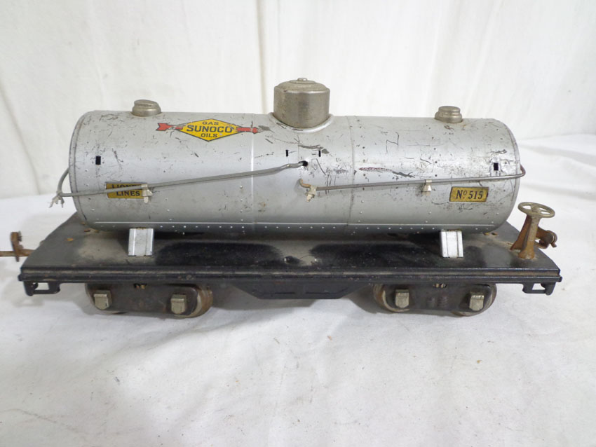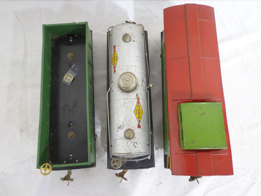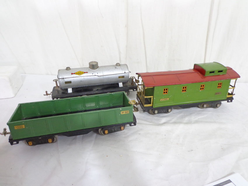Lionel Standard Gauge #512 Gondola, #515 Sunoco Tank Car and #517 Caboose