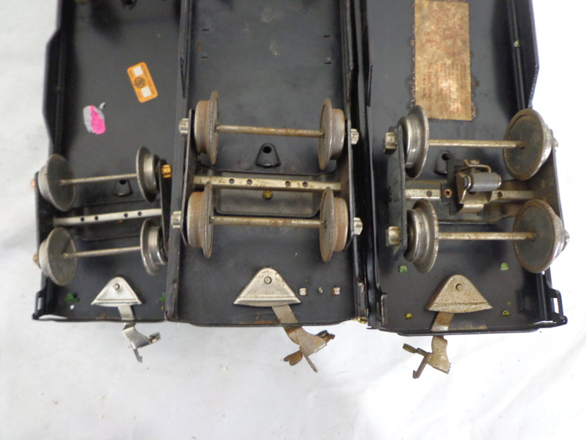 These are the Lionel Standard Gauge #512 Gondola, #515 Sunoco Tank Car and #517 Caboose made Pre War. No Boxes. Examine closely; what is pictured is what you will receive. Please add $40.00 for US-48 Shipping and Insurance (more west of the Mississippi). |