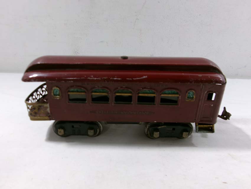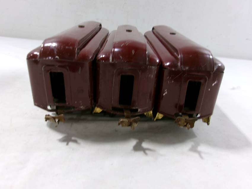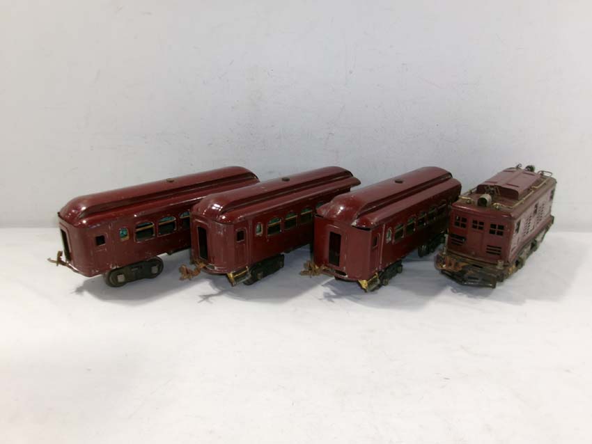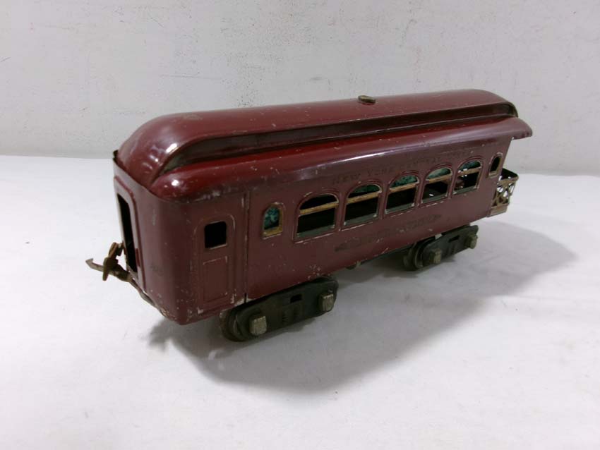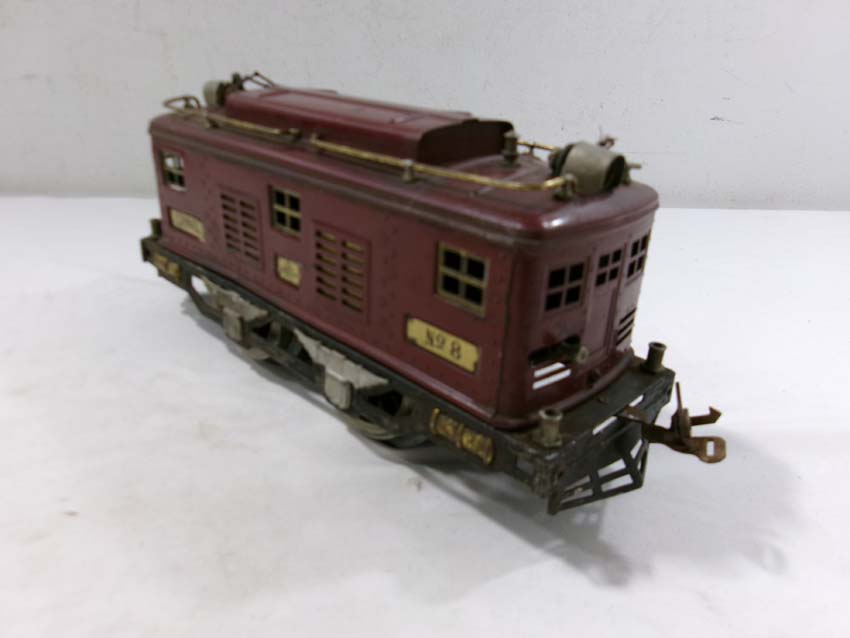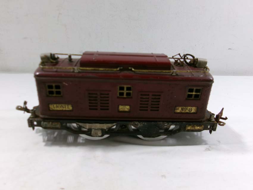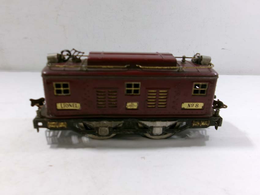 These are the Lionel Standard Gauge #8 Electric Engine (maroon), #35 NYC Coach (maroon) and 2 #36 NYC Observations (maroon) from the 1920s. No Boxes. Examine very closely; what is pictured is what you will receive. Please add $50.00 for US-48 Shipping and Insurance (more west of the Mississippi)
