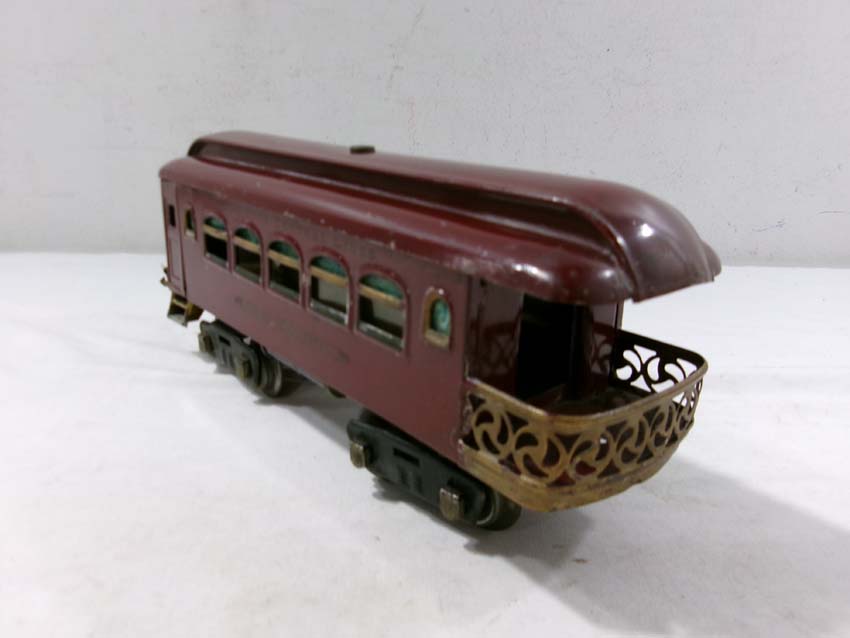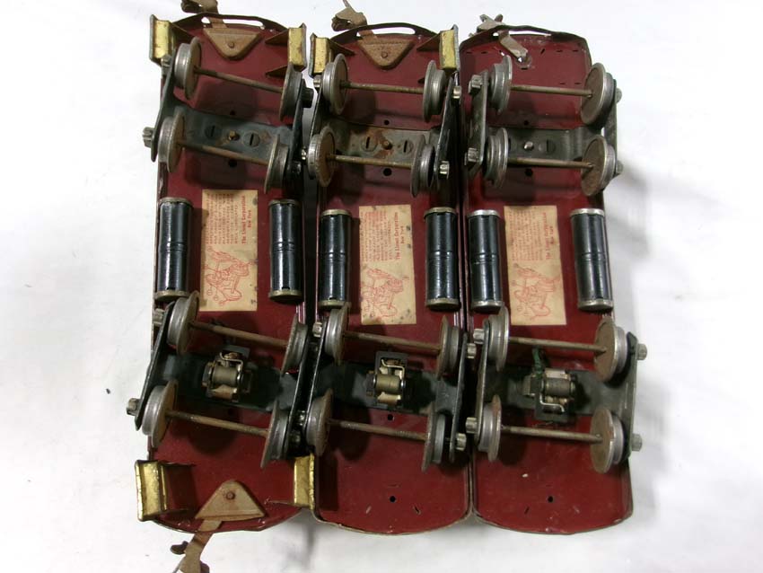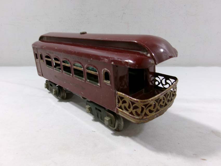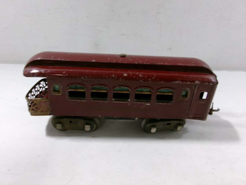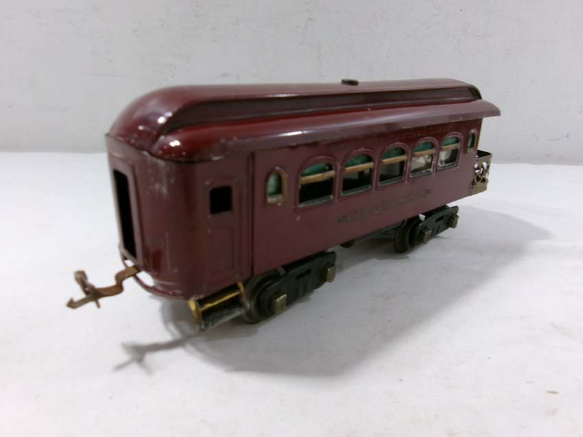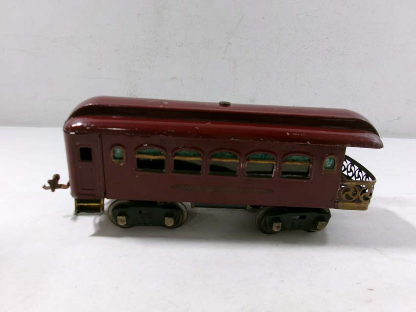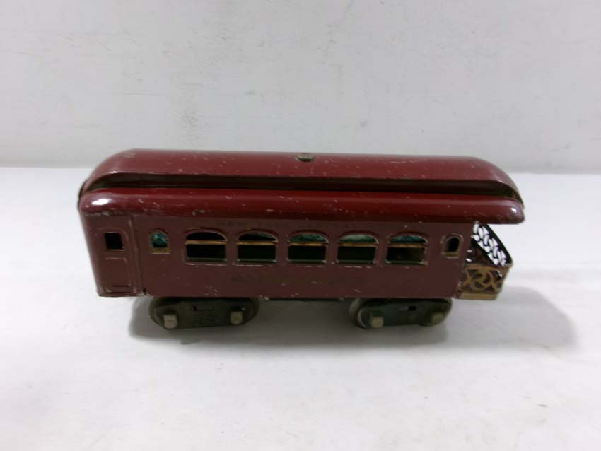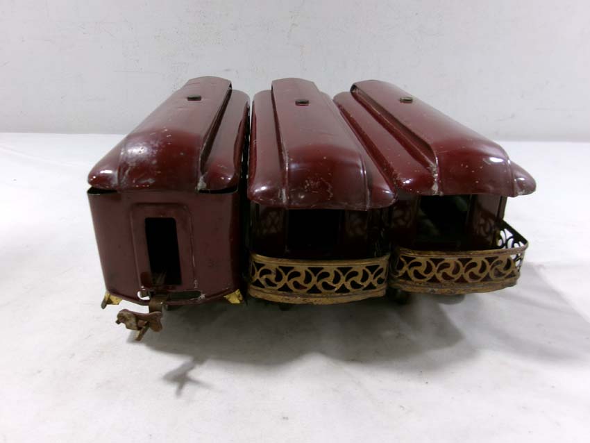 These are the Lionel Standard Gauge #8 Electric Engine (maroon), #35 NYC Coach (maroon) and 2 #36 NYC Observations (maroon) from the 1920s. No Boxes. Examine very closely; what is pictured is what you will receive. Please add $50.00 for US-48 Shipping and Insurance (more west of the Mississippi)